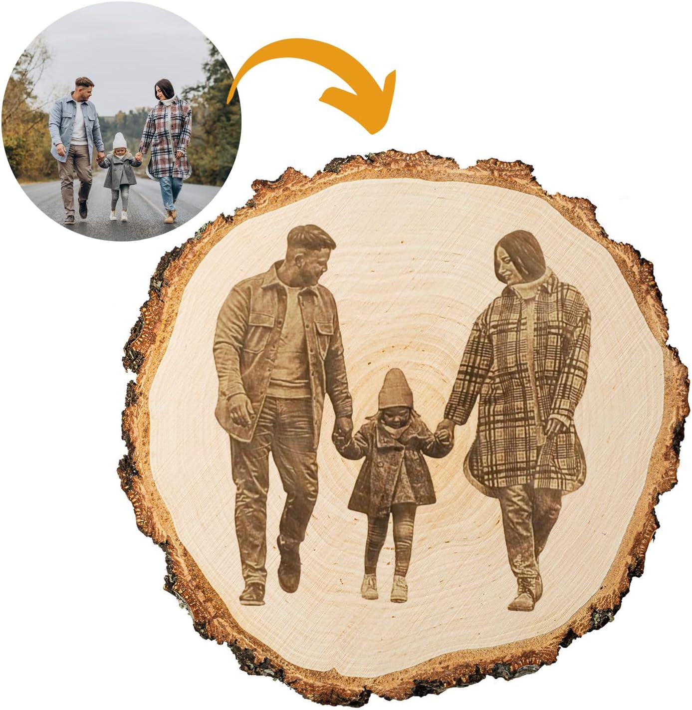 ✅ LA TUA FOTO INCISA AL LASER SU LEGNO – Incisione fotografica personalizzata con tecnologia laser moderna su fetta di legno naturale. Ogni pezzo è unico, con venature visibili e fascino rustico. 🎁 REGALO PERFETTO PER OGNI OCCASIONE – San Valentino, compleanno, anniversario o matrimonio – un ricordo affettuoso e una decorazione elegante per parete o tavolo. 📐 DIMENSIONI NATURALI E SUPPORTO IN LEGNO INCLUSO – Diametro ca. 26 cm, spessore ca. 2 cm (possibile tolleranza ±5 cm). Include supporto in legno per una presentazione stabile. 🖼️ NOTA IMPORTANTE SULL’INVIO DELLA FOTO – Carica la foto desiderata su “Personalizza ora”. È ideale un’immagine che si possa ritagliare in formato circolare. Foto troppo larghe o inadatte possono compromettere il risultato dell’incisione. 🌲 FATTO A MANO IN EUROPA – Realizzato con amore per i dettagli e rispetto per la natura. Ogni articolo è selezionato a mano e lavorato singolarmente.