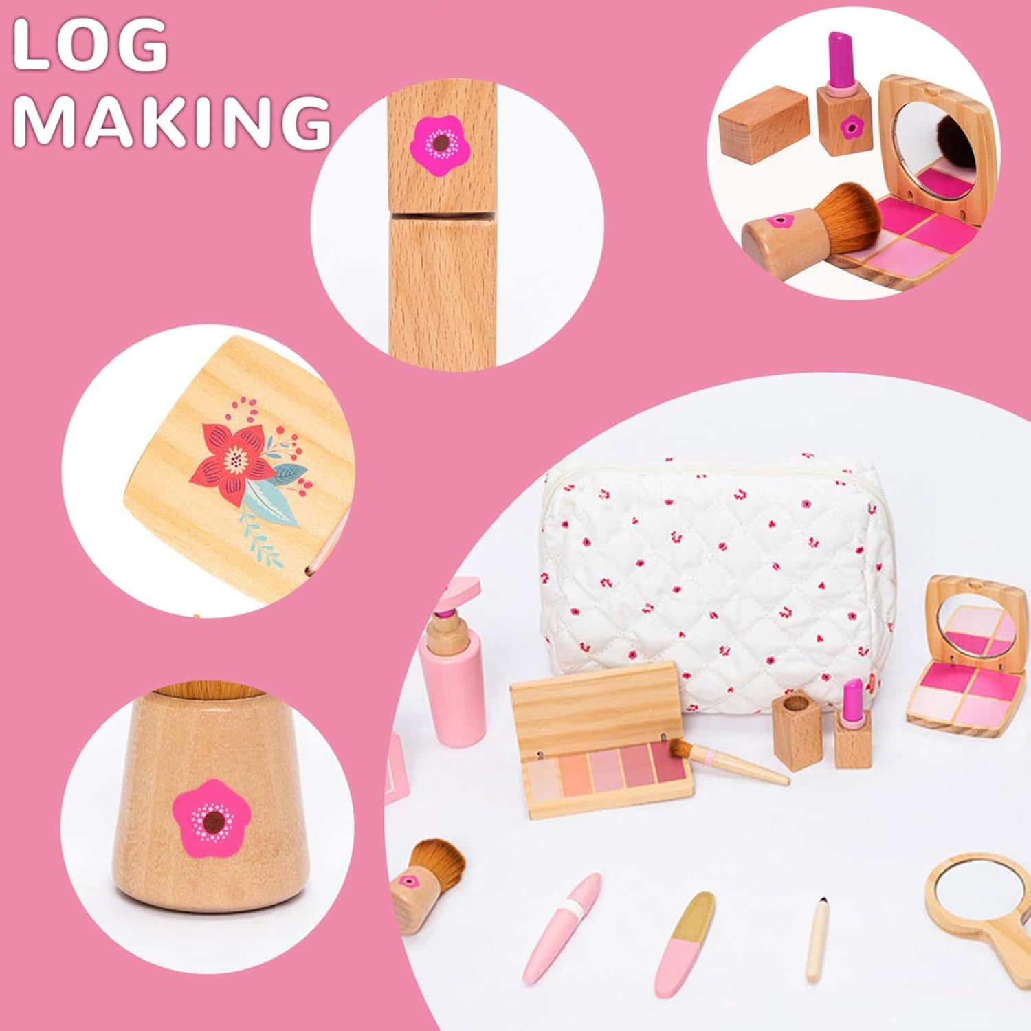 Promuove il gioco fantasioso: questo set di giocattoli in legno in legno offre al tuo bambino un modo sicuro e divertente per lasciare che la sua creatività venga rilasciata ed espressa senza danni o rischi di lesioni. Con il suo design amichevole con tuo figlio, tuo figlio può vivere un'esperienza divertente ed emozionante mentre gioca con questo set carino e morbido Divertimento completo: contiene pennelli, specchi, profumo, rossetto, ombretto, bottiglia di lozione e un archivio che offre un'esperienza completa di trucco e offre al tuo bambino l'opportunità di divertirsi giocando Assicurati di più fiducia: lascia che l'immaginazione di tuo figlio venga rilasciata con il nostro set di giocattoli per il trucco in legno. Ogni pezzo è progettato in modo tale da promuovere la creatività e stimolare il gioco fantasioso in modo che il bambino possa sviluppare idee uniche e innovative e divertirsi con esso. Promuovi l'apprendimento precoce: promuovi la creatività e l'immaginazione di tuo figlio con questo set di giocattoli per il trucco in legno e garantisci l'educazione precoce e l'apprendimento precoce divertendosi allo stesso tempo. Questo attraente set di giocattoli promuove abilità motorie e coordinazione mano e incoraggia il tuo bambino a esplorare e sviluppare il suo lato fantasioso Ottimo regalo: celebrare festival come compleanno, Natale, Capodanno e Pasqua con questo pratico set di giocattoli per il trucco in legno, che è stato accuratamente progettato per ragazzi e ragazze. Il nostro set ha un design robusto e sicuro che promuove il gioco fantasioso e l'espressione artistica