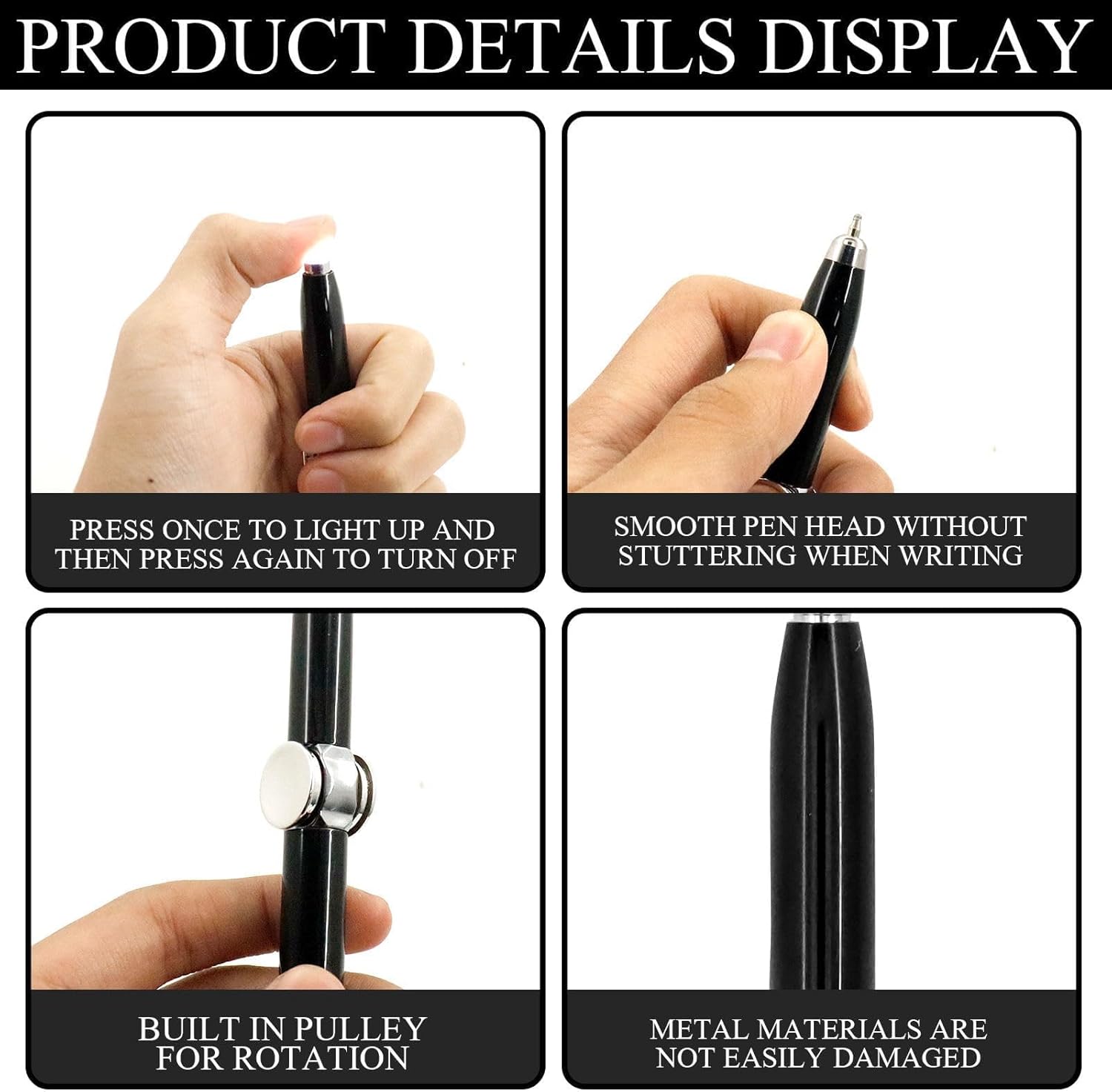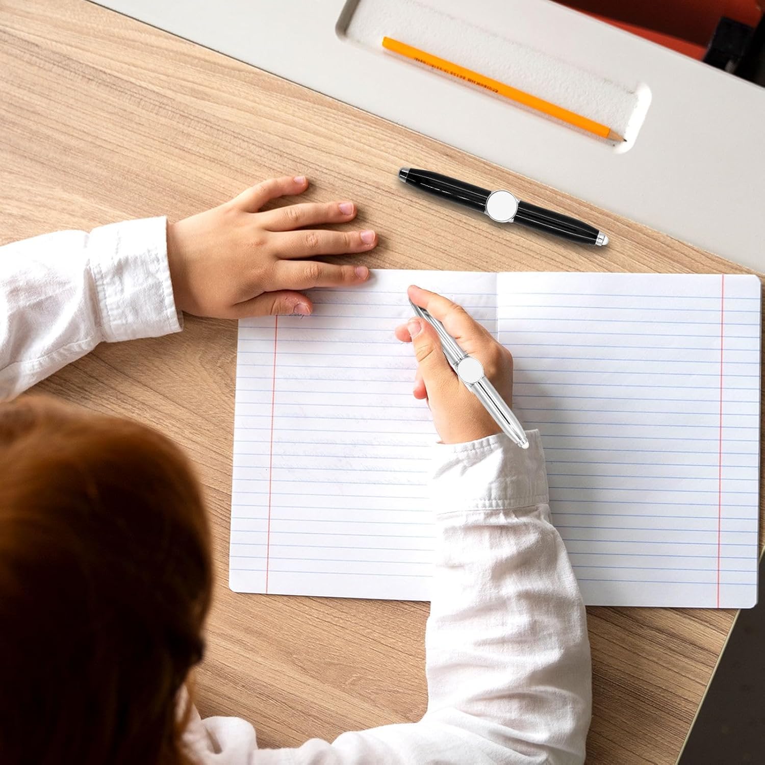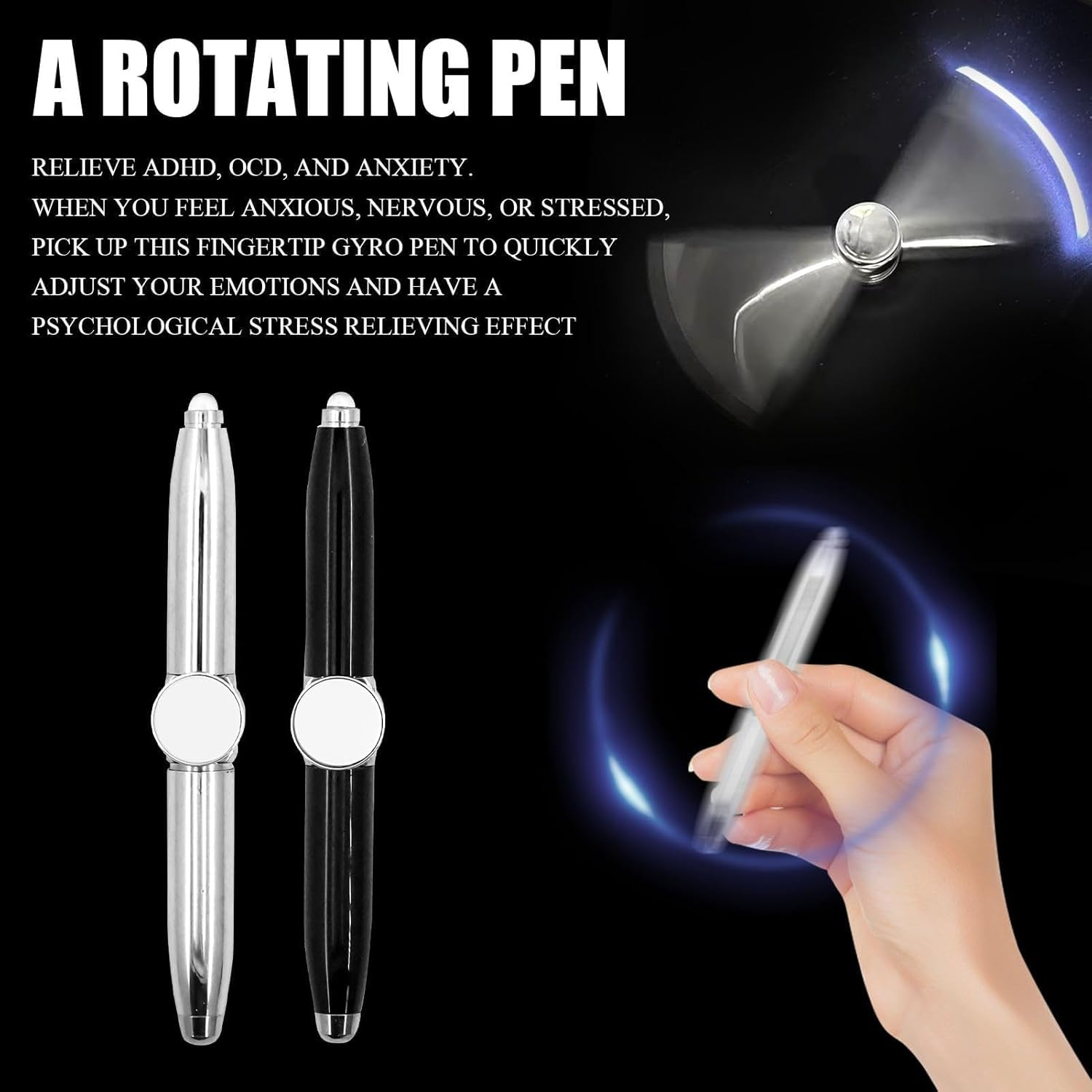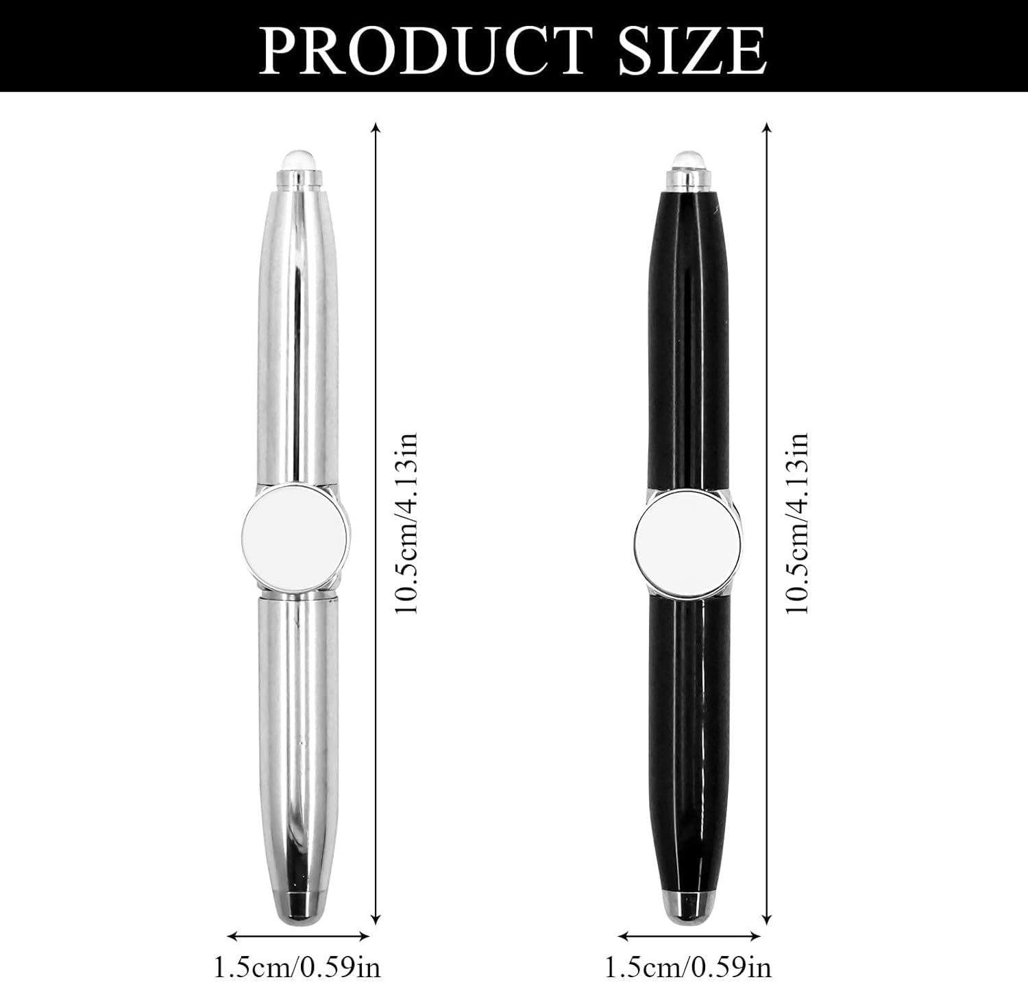 【DESIGN INNOVATIVO】 La penna combina le funzioni di uno strumento giroscopico, illuminazione a LED e scrittura, offrendo un'esperienza utente unica e diversificata. Il design innovativo del fidget pen spinner 3 in 1 non solo rende la scrittura più divertente, ma aumenta anche la flessibilità delle dita e offre all'utente un'esperienza di scrittura completamente nuova 【MATERIALI DI ALTA QUALITÀ】 Ogni set contiene 2 penne ADHD in diversi colori, con la combinazione di nero e argento che conferisce alla penna rotante un aspetto unico. I led della penna rotante sono realizzati in lega di rame e zinco di alta qualità, robusti e durevoli, non facili da rompere e resistenti all'abrasione. La penna rotante scrive senza intoppi, ha un aspetto raffinato, è maneggevole e offre un'esperienza di utilizzo piacevole 【DESIGN UNICO】 Un lato della penna fidget spinner è dotato di una mini lampada LED che emette luce quando viene premuta, creando affascinanti effetti di luce ideali come mini torcia. La penna fidget può essere utilizzata per scrivere e firmare in qualsiasi momento ruotando il corpo della penna ed estraendo la punta della penna, rendendo la scrittura fluida e confortevole. Grazie al design rotante, la punta della penna non scivola facilmente dal tavolo e non si danneggia 【SOLIEVO DELLO STRESS】 La penna fidget spinner può aiutare gli utenti ad alleviare lo stress, soprattutto per le persone con ADHD, disturbo ossessivo compulsivo e ansia, attraverso movimenti rotatori e movimenti rilassati delle dita. Il design rotante e gli effetti di illuminazione a LED consentono agli utenti di rilassarsi rapidame 【SCELTA REGALO】 Grazie al design unico e alle funzioni della penna Fidget Spinner, è perfetta come regalo per amici, familiari o colleghi. Che si tratti di un accessorio squisito per l'ufficio o di una collezione di cancelleria per studenti o come un regalo speciale per alleviare lo stress, la penna rotante sarà accolta e apprezzata dal destinatario