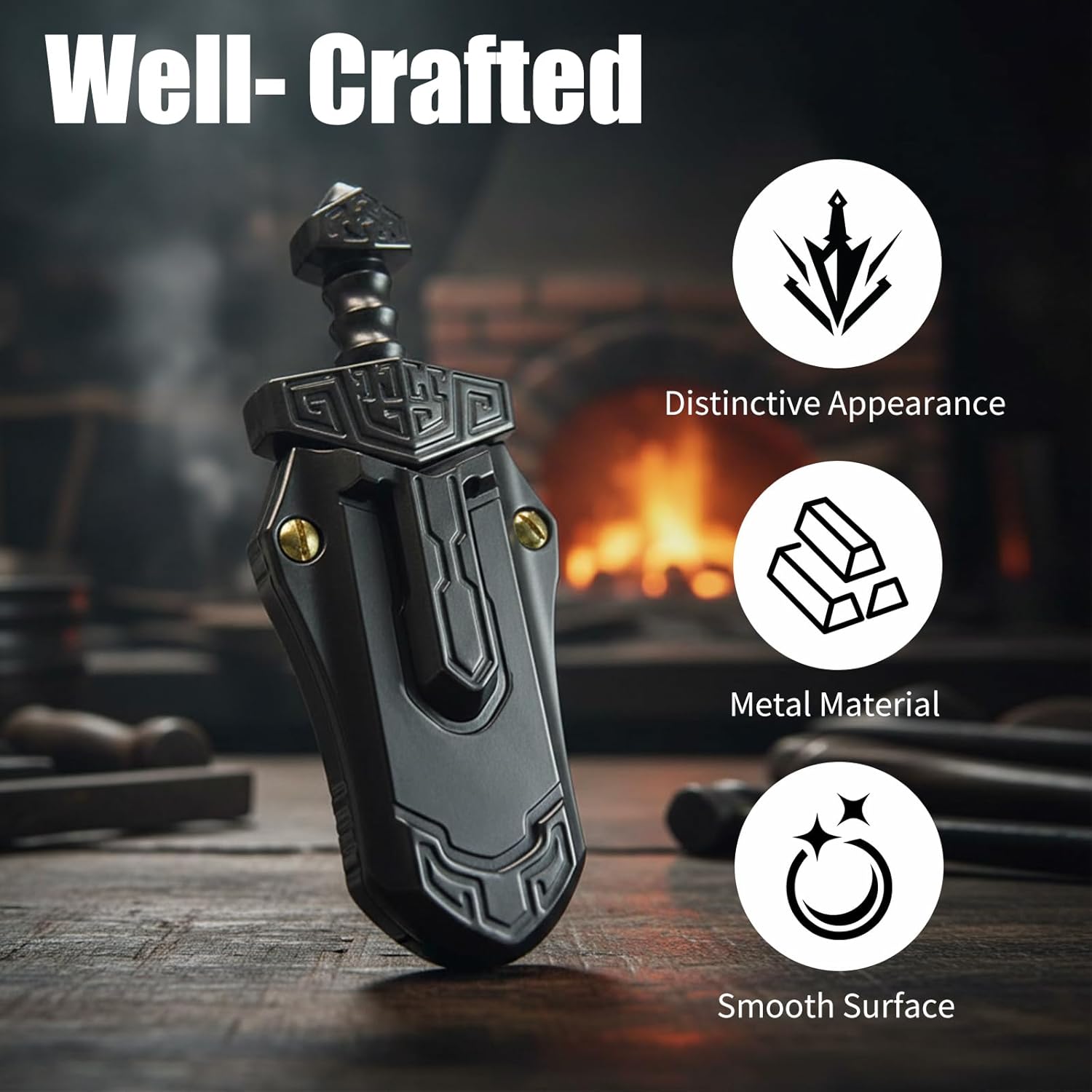 Stile spada cinese: questo giocattolo spada rilassante presenta un design a forma di spada e integra perfettamente l'estetica cinese. Il suo aspetto è lussuoso e dignitoso, e dà un'impressione imponente. Materiale di alta qualità: realizzato in acciaio inossidabile selezionato e lega di alluminio con bordi lisci, questo trasportino quotidiano è durevole. 【 Chiaro feedback acustico】emette un suono "click" durante l'apertura e la chiusura. Quando si utilizza il meccanismo caricato a molla, la lama è rivestita con una risonanza acuta simile a una forcella. Struttura meccanica: dotata di un preciso dispositivo meccanico: la lama della spada è dotata di una guida scorrevole a cinque canali e il fodero contiene due sfere in acciaio e una piastra a molla. Quando si spinge la lama, le sfere in acciaio vengono azionate dalla piastra a molla, scivolano lungo la guida e cadono nelle scanalature, creando sia il segnale sonoro che un feedback di vibrazione. Facile da trasportare: grazie alle sue dimensioni compatte, può essere facilmente riposto in tasca o in tasca. Il funzionamento silenzioso (inferiore a 15 decibel) lo rende un compagno ideale durante riunioni d'ufficio, lezioni in classe o in viaggio. Che tu sia un professionista di successo, uno studente o qualcuno che cerca la consapevolezza in una vita quotidiana frenetica, questo è un regalo estremamente creativo.