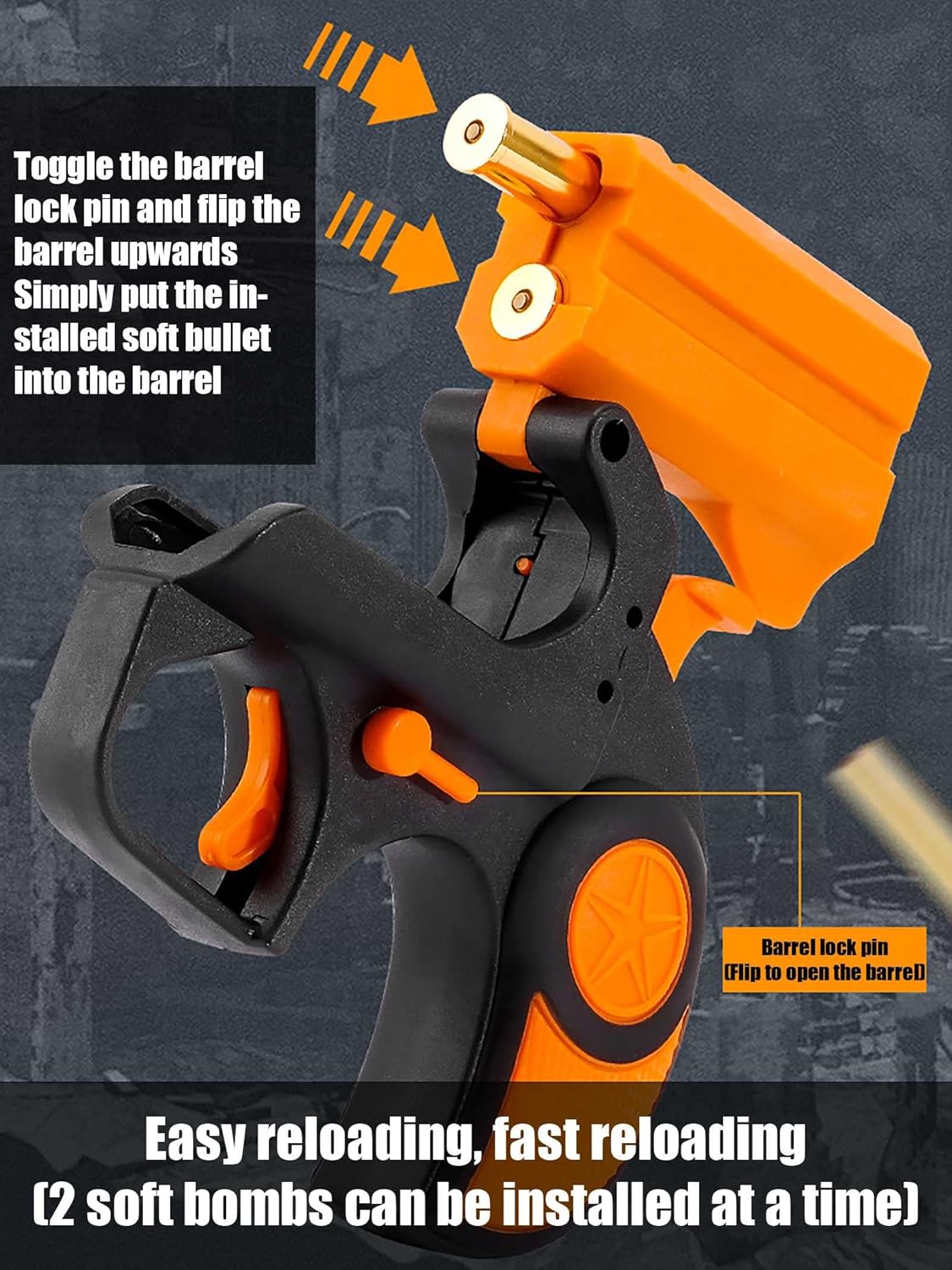 ★ Giocattolo antistress: design della forma unico, design della struttura meccanica, apertura fluida, avvio scorrevole, utilizzo più fluido, conservazione in qualsiasi momento, facile da usare ★ Facile da usare, gira la spilla di sicurezza della canna, gira la canna verso l'alto per installare facilmente i proiettili morbidi, inserisci i proiettili morbidi caricati nella canna per sparare. ★ Il lancio è stabile, la portata è ampia, la potenza è elevata e l'esperienza non è la stessa divertente, con una portata rettilinea di circa 8 metri e una portata parabolica di circa 10 metri. ★ Tiro a doppia canna, tiro regolare, doppia canna in metallo, è possibile sparare solo un proiettile morbido alla volta, il tubo superiore si accende per primo, il tubo inferiore si accende di nuovo. ★ La sensazione generale di peso è forte e il corpo della pistola è realizzato in materiale di nylon in molti punti, con una lavorazione squisita e un buon senso di sensazione/consistenza, che è un ottimo regalo per gli amici.