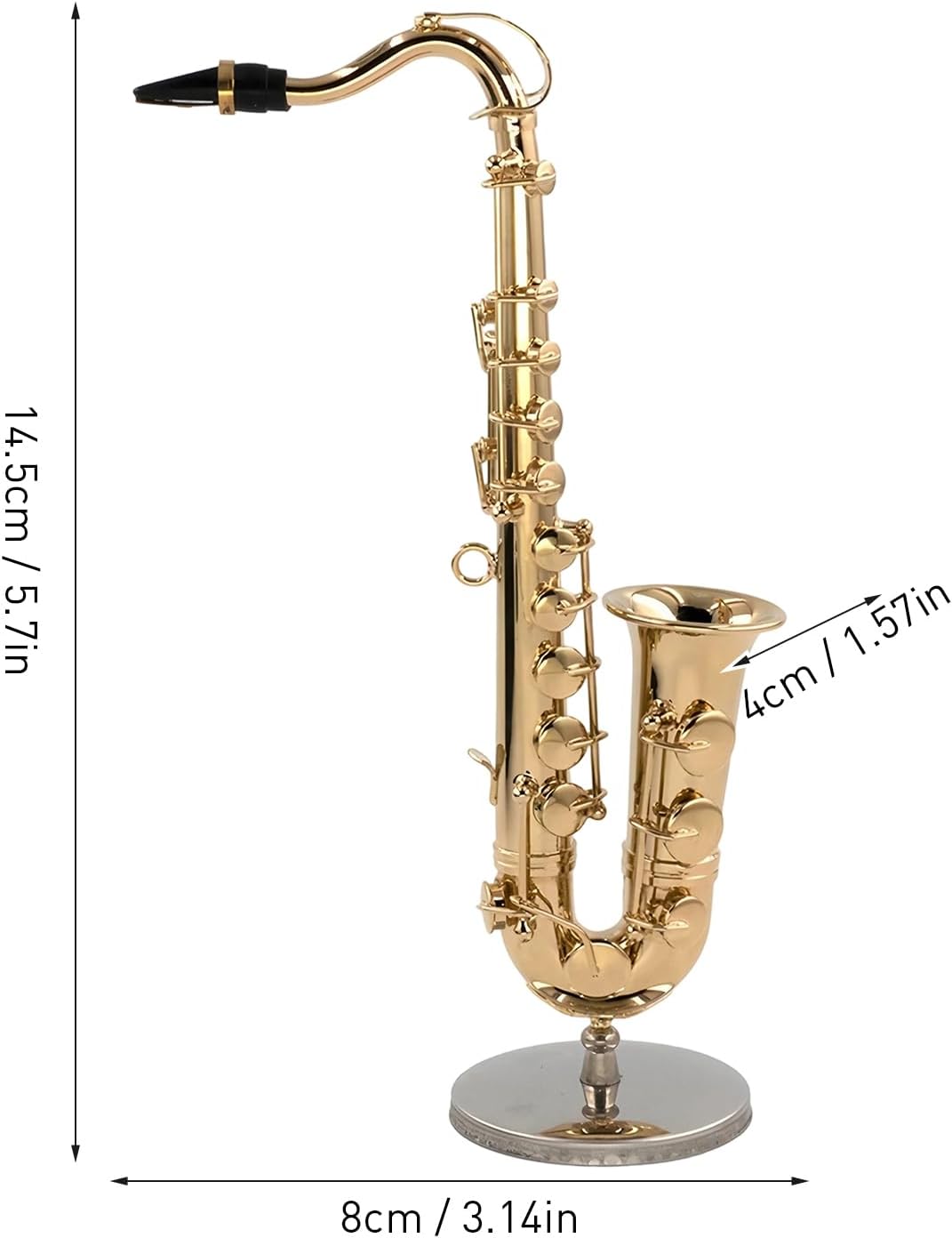 Design multifunzionale: migliora i tuoi accessori per la casa con questo sassofono in miniatura in ottone con elementi placcati in oro. Linee curve, dettagli delicati e una calda brillantezza creano una precisa decorazione per sassofono per uso artistico in ogni stanza. Evidenziazione decorativa: questo sassofono in miniatura aggiunge fascino artistico a qualsiasi stanza grazie al suo design elegante e alle proporzioni dinamiche, ideale per la scrivania o. Miglioramento del fascino naturale come accessorio di stile Superficie resistente al colore: Realizzato in ottone, il sassofono preserva in modo affidabile la sua vivace lucentezza e il suo fascino decorativo dall'usura o dallo scolorimento Regalo significativo: combina valore artistico e fascino da collezione come regalo significativo per celebrazioni, anniversari o occasioni speciali con espressione estetica Facile da usare: molteplici processi di lucidatura conferiscono alle superfici prive di sbavature del sassofono una struttura calda e fine che dimostra chiaramente l'attrattiva visiva e l'aumento del comfort tattile.