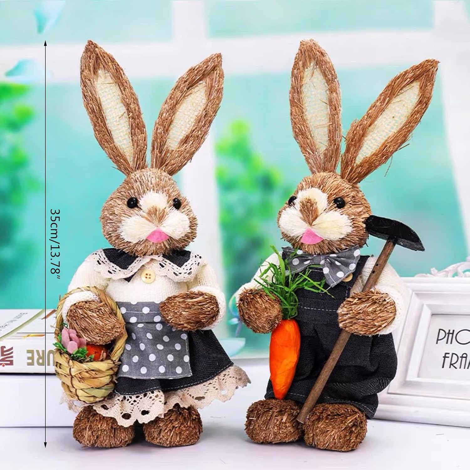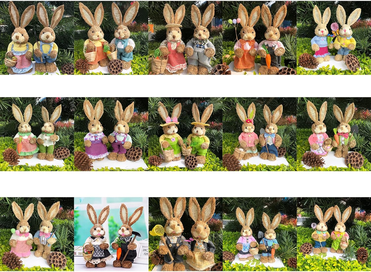 Paglia intrecciata e tessuto di alta qualità, forma unica, resistente all'usura, con Cosa ottieni: la statuina in paglia viene fornita con 1 paio e 15 stili opzionali tra cui scegliere, soddisfa le diverse esigenze di decorare la tua casa, puoi metterla sul tavolo, sulla scrivania, sul comodino o come decorazione da giardino all'aperto. 【Decorazione ad ampia applicazione】 Il felice design pasquale per la decorazione, il giardiniere vestito in piedi è per la primavera e porta felicità nel nuovo anno. Porta pace e belle festività pasquali a casa tua, festa, Pasqua, giardino con patio e varie decorazioni. Crea un sottile fascino primaverile alla tua festa di Pasqua, facile da costruire, interessante per decorazioni interne ed esterne. Decorazioni in paglia fatte a mano: l'ornamento in paglia intrecciata può decorare bene il tuo cortile, giardino, patio, casa delle piante o festa a tema. Conigli e ravanelli sono essenziali per Pasqua e costituiscono fantastiche decorazioni pasquali. Combinali con altre decorazioni o oggetti di scena per rendere la decorazione esterna come preferisci, una grande aggiunta alle tue celebrazioni e attività pasquali. Ornamenti per le vacanze di buona Pasqua: una fantastica decorazione per le vacanze di Pasqua offre la specialità per la decorazione del giorno di Pasqua, la bellissima statuina con tecnologia intrecciata in paglia fatta a mano, che può essere utilizzata non solo come decorazione della stanza, ma anche come vari giardini, cortili, decorazioni per alberi e decorazioni.