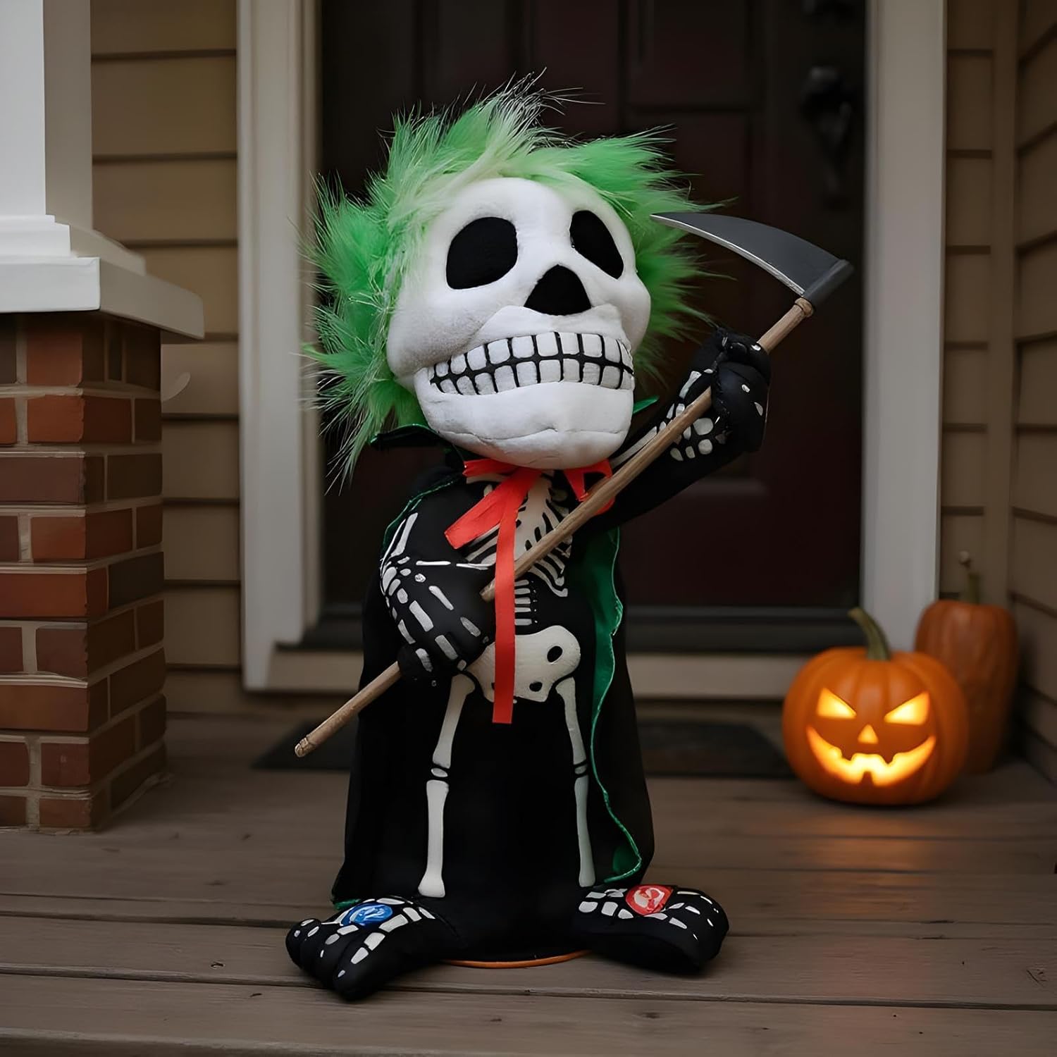 Effetti di luce ipnotici: gli occhi luminosi rosso-verdi dello scheletro di Halloween creano effetti tremolanti dinamici e sono chiaramente visibili da oltre 10 metri di distanza per un effetto affascinante nelle decorazioni notturne. Utilizzo flessibile: perfetto per ambienti interni ed esterni grazie al sistema di batterie integrato. Non sono necessari collegamenti elettrici: posiziona spontaneamente la decorazione spaventosa dove vuoi. Decorazione sensibile al movimento: il sistema intelligente consente un rilevamento affidabile con oltre 48 ore di funzionamento continuo, genera reazioni casuali per un'autentica atmosfera spettrale di Halloween in qualsiasi momento. Suoni horror attivati dal movimento: urla e scricchiolii attivati dal movimento, migliorati da giunti flessibili: ideali per sorprese di Halloween ed esposizioni a tema Assemblaggio flessibile: la costruzione articolata consente allo scheletro di Halloween di adattarsi a qualsiasi ambiente per una decorazione semplice su scale, grondaie e confini di proprietà