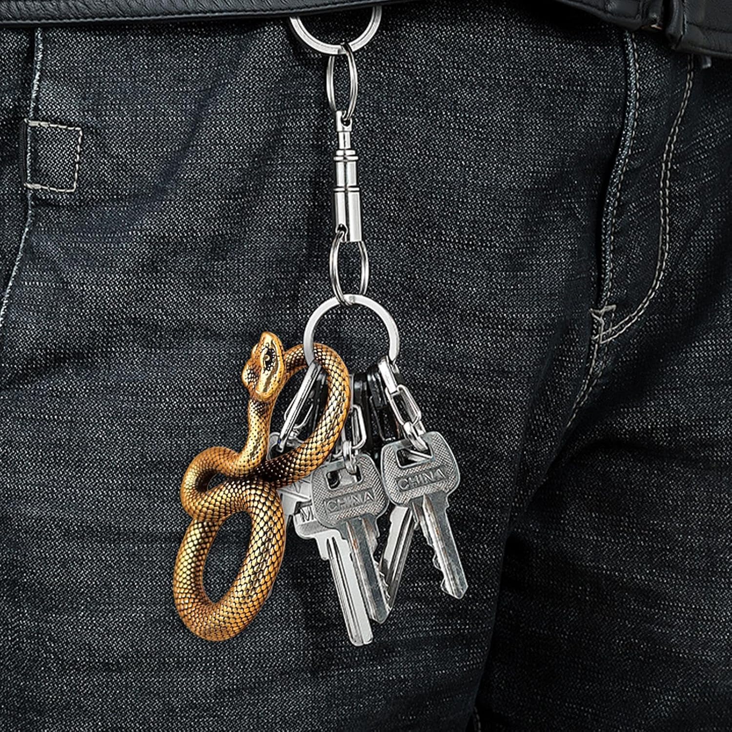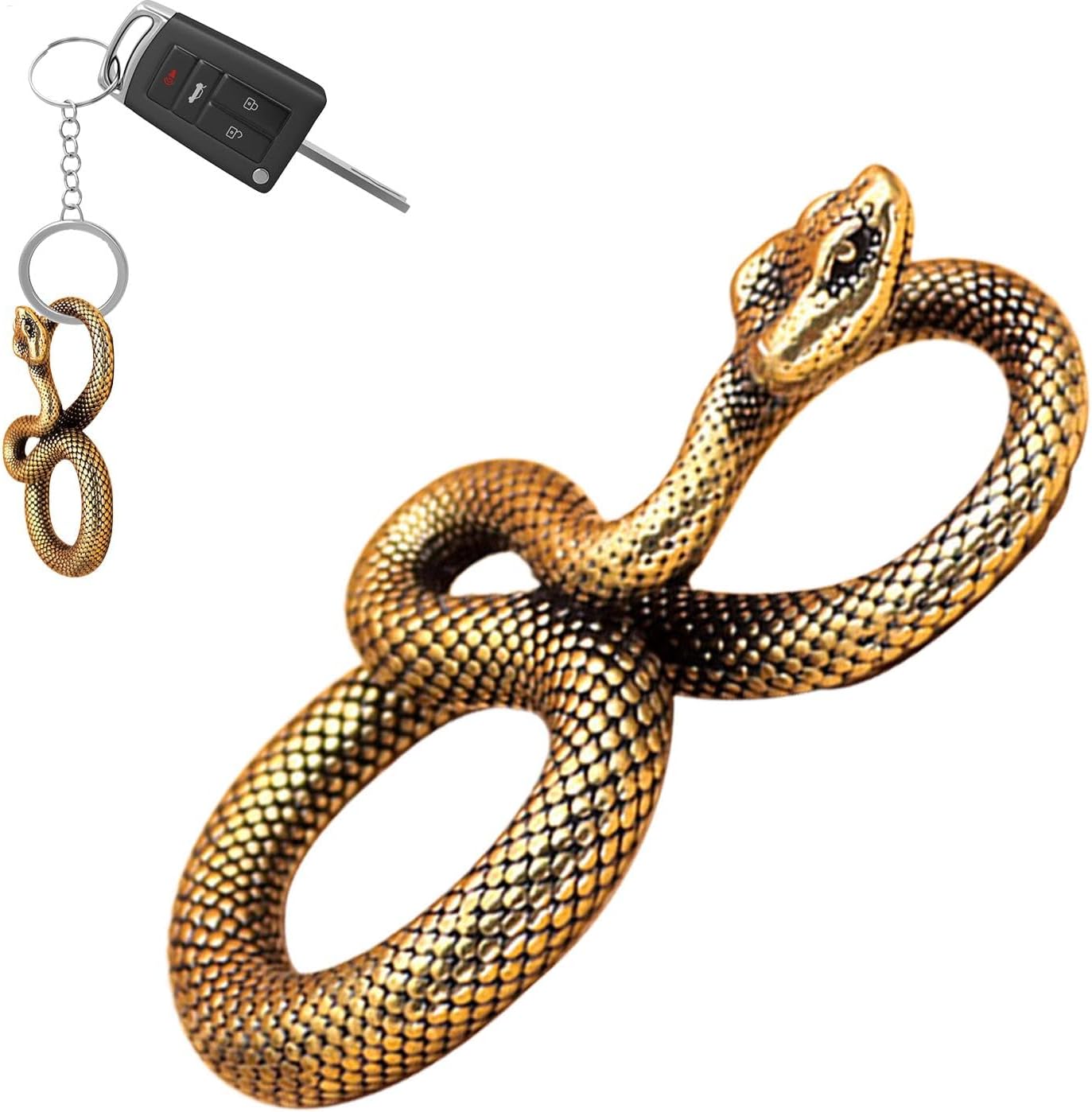 Design elaborato: con dettagli intricati e un design unico, la nostra statuetta di serpente è accuratamente realizzata a mano per fornire un eccezionale livello di autenticità. Il portachiavi con testa di serpente altamente dettagliato e realistico impressionerà qualsiasi collezionista. Eccellente manifattura: realizzata in ottone resistente all'usura, questa delicata statuetta di serpente promette durata ed eleganza, abbellindo la tua stanza per lungo tempo. Comodo da trasportare: mantenere le chiavi organizzate non è mai stato così facile con questo creativo portachiavi con testa di serpente realizzato in robusto rame. Leggero e portatile, è facile da portare con te senza occupare spazio inutile nelle borse Ampia gamma di applicazioni: Con il suo design intricato e dettagli squisiti, questa statuetta di serpente ha un valore culturale unico, che la rende un perfetto accessorio personale da collezione o decorativo per qualsiasi portachiavi Sorpresa di Natale: Questa statuetta di serpente squisitamente realizzata è un regalo ideale con profonde associazioni culturali, perfetta per la famiglia, gli amici o i partner commerciali, simboleggia gli auguri e una connessione significativa e unica