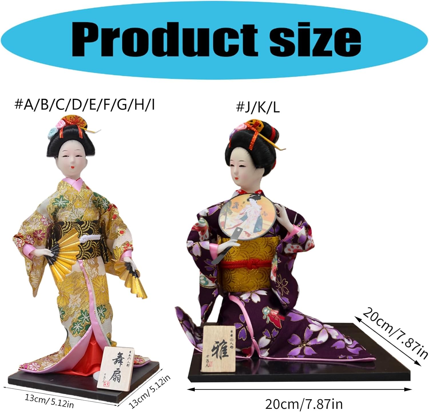 Questo ornamento decorativo funge da centrotavola che incarna il fascino e la tradizione dell'arte giapponese. Da esporre nei ristoranti di cucina giapponese, come parte della decorazione giapponese o come regalo. Illumina il tuo spazio con questo squisito giocattolo kimono da 12 pollici per portare un tocco di elegante decorazione giapponese a qualsiasi ambiente. Una varietà di materiali tra cui resina per mani e piedi e una base in legno. Questo giocattolo presenta dettagli intricati e un design unico ed elegante. Perfetto per gli appassionati di cultura giapponese, proprietari di ristoranti e collezionisti, decorazioni distintive.