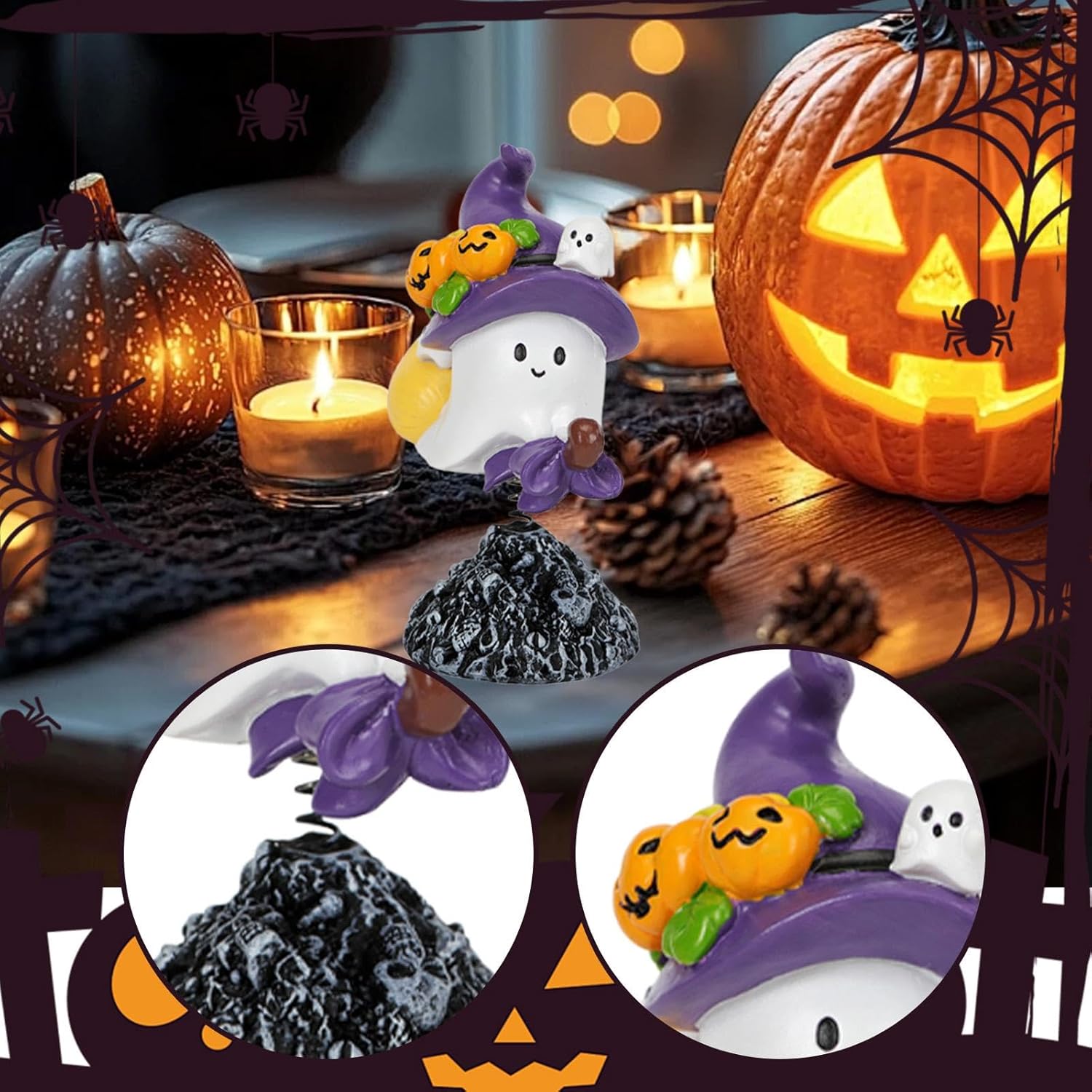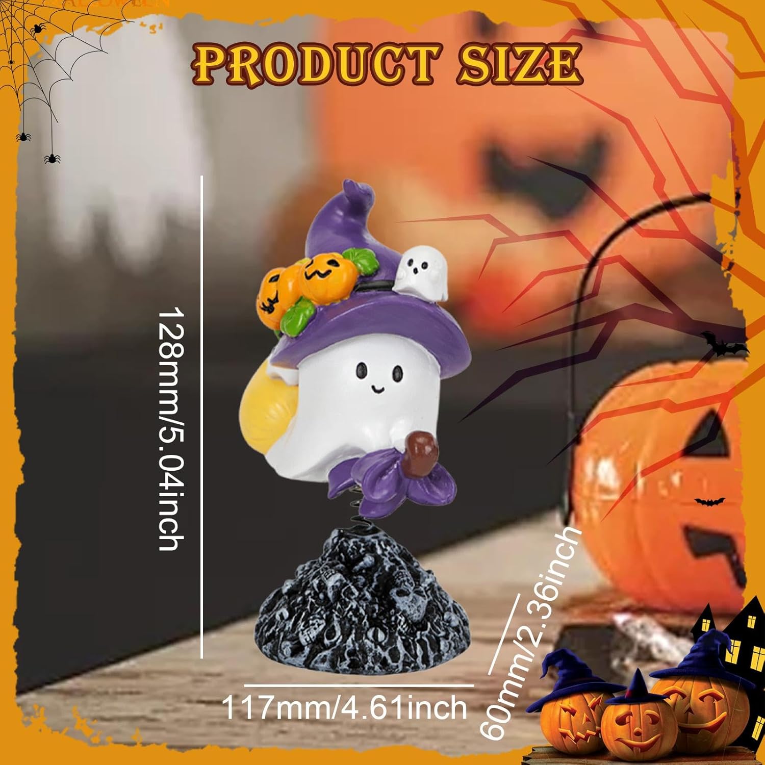 【Movimento oscillante giocoso】 Presenta un design a molla che crea un divertente effetto oscillante che aggiunge movimento dinamico e fascino umoristico ai tuoi display di Halloween Costruzione in resina: realizzata in resina durevole che resiste all'usura e mantiene il suo aspetto attraverso più stagioni di uso festivo Opzioni di visualizzazione versatili: dimensioni compatte di 4,7" x 2,5" x 5" si adattano perfettamente a scrivanie, scaffali, piani di tavoli o come punto focale per feste e riunioni di Halloween 【Decorazione multi-room】: adatta per migliorare l'atmosfera di Halloween in salotti, camere da letto, uffici domestici o qualsiasi stanza che necessiti di accenti festivi stagionali.,Pacchetto a figura singola: include una figura di Halloween completa, pronta per l'esposizione immediata, senza bisogno di assemblaggio.