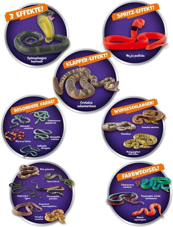 Figure da collezione Blue Ocean Snakes Planet Wow 2024 Riceverai: 5 sacchetti di raccolta. Grazie ai diversi colori e modelli del corpo, ai sofisticati dipinti dettagliati e agli impressionanti effetti speciali, ciascuno dei 20 serpenti è unico e realistico allo stesso tempo! Effetti speciali: - Effetto tintinnio - Cambio di colore con vernici termiche - Colori e motivi della vernice particolarmente accattivanti - Effetto spray