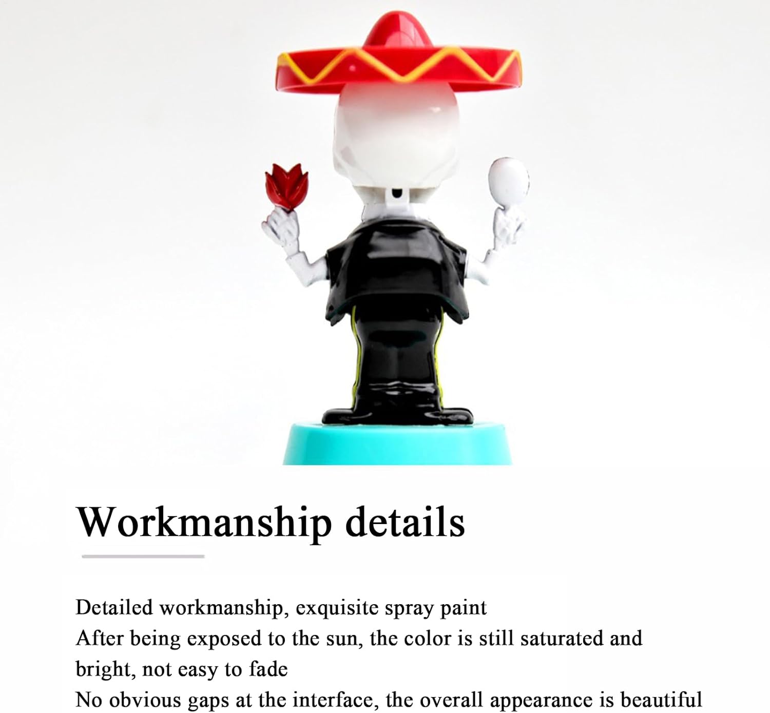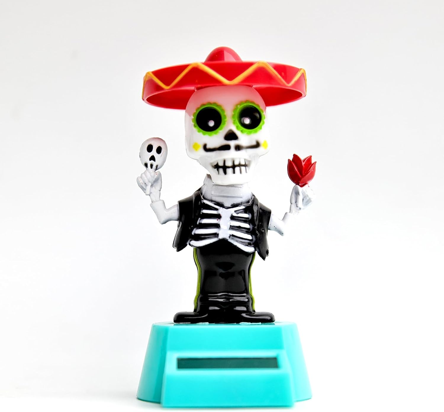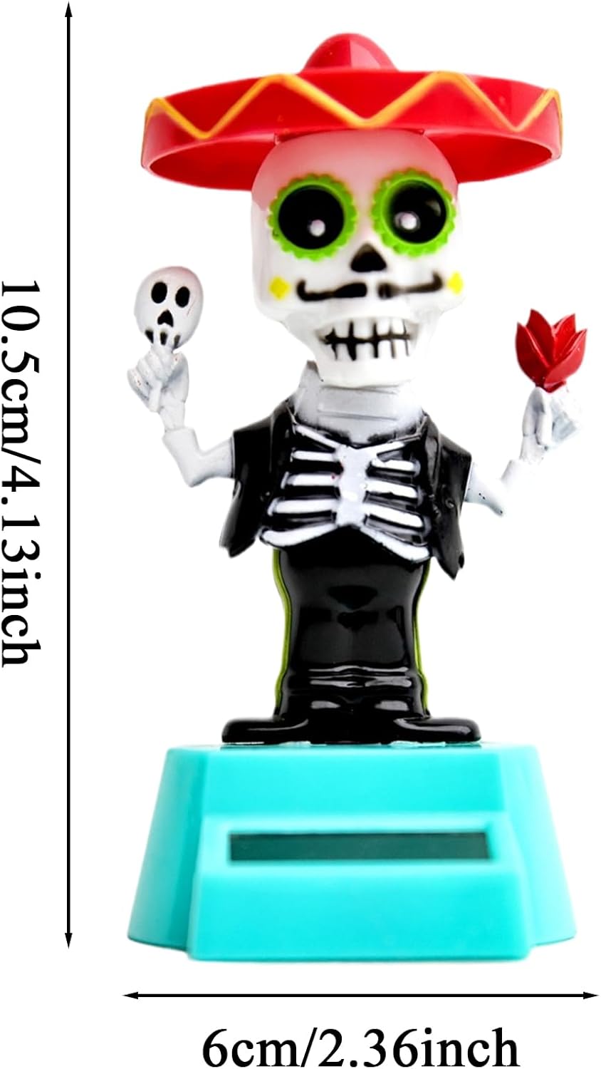 Movimento ad energia solare: sfrutta la luce del sole attraverso un piccolo pannello per creare un movimento di danza divertente e continuo senza bisogno di batterie ed è perfetto per spazi ben illuminati come cruscotti o finestre Divertente design a scheletro: presenta decorazioni divertenti ovunque: la struttura compatta e leggera lo rende ideale da posizionare sulle scrivanie o sugli scaffali del cruscotto dell'auto Eccellente su materiale ABS premium: realizzato in plastica ABS sicura e robusta progettata per la massima resistenza allo sbiadimento o all'usura per mantenerlo vibrante e colorato attraverso l'esposizione quotidiana alla luce solare e al movimento Idea regalo perfetta: Una novità allegra che può essere ben regalata a colleghi o familiari di amici o familiari che amano i giocattoli da scrivania umoristici o le figurine da collezione uniche, soprattutto in occasioni festive o a tema