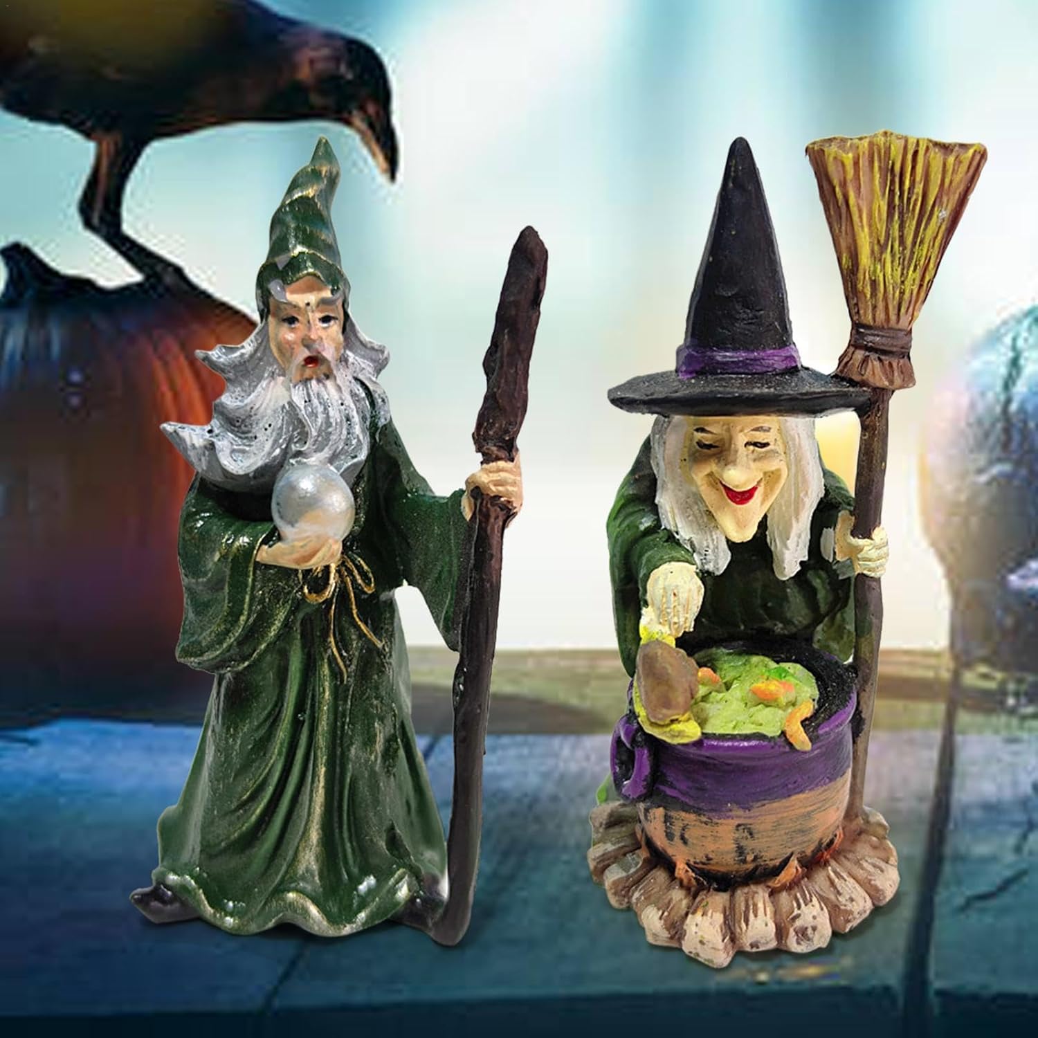 Decorazione di Halloween: piena di temi di Halloween, che creano un'atmosfera nuova e divertente. È un ottimo ornamento per Halloween e decorazioni quotidiane. Applicazione: adatto per Halloween, feste a tema, carnevali, sagre, celebrazioni e qualsiasi altra cosa. Materiali di qualità: realizzati in resina, resistenti e affidabili per un uso prolungato. Caratteristiche: La combinazione della bambola della strega offre tre effetti: la forma realistica, la pregevole fattura e i colori vivaci aggiungono bellezza alla tua casa o alla tua casa. Regalo: perfetto per regali di casa e di inaugurazione della casa, un regalo attraente per e famiglie.