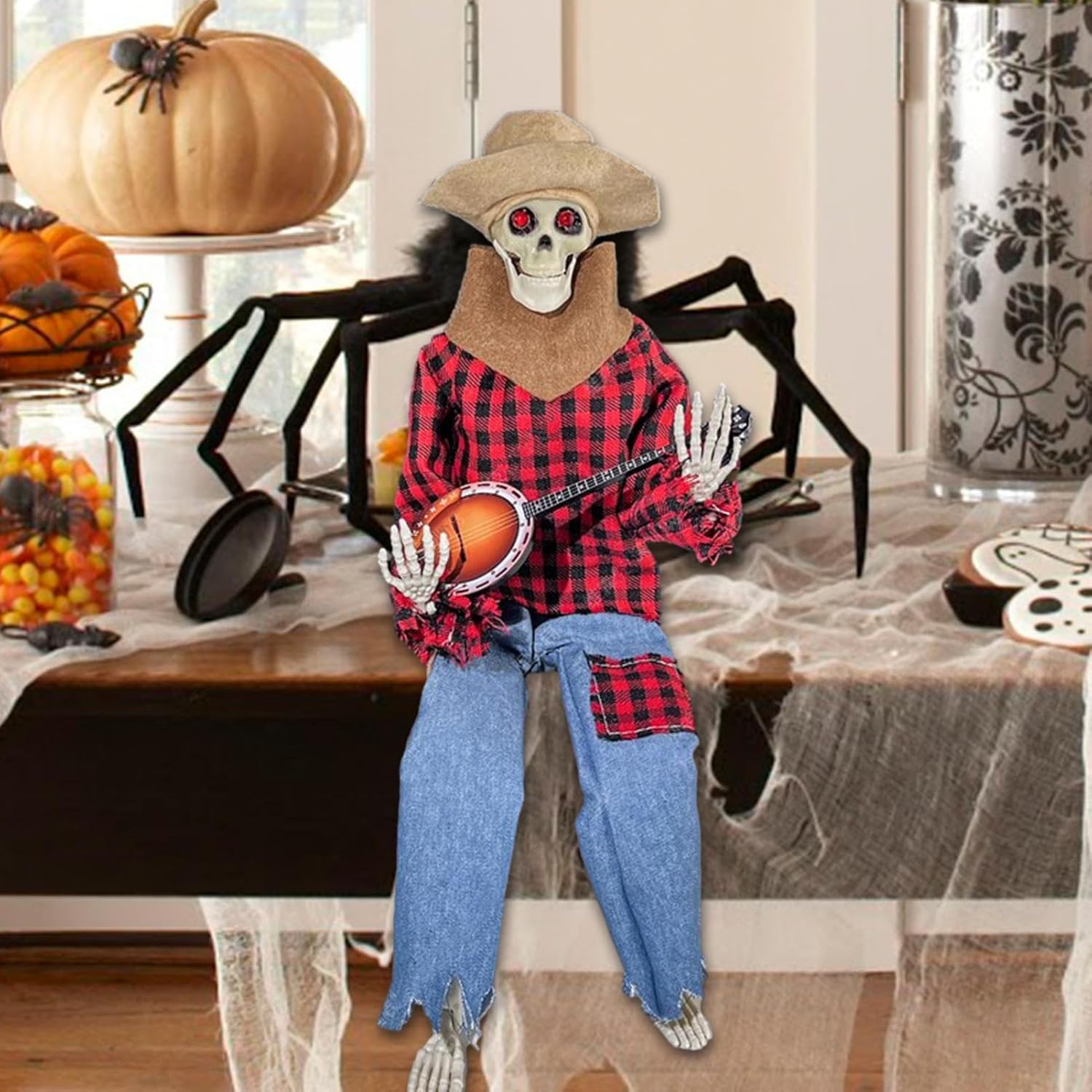 Bontà spettrale aggiunta: cantare giocattolo scheletro porta le tue decorazioni di Halloween al livello successivo con il nostro scheletro di banjo. Questo pezzo di arredamento Spooktacular aggiunge un tocco di stravagante al tuo tema e migliora l'aura inquietante. Facile da usare: lo scheletro delle dimensioni della vita gioca lo scheletro banjo senza sforzo e con facilità, ovunque tu voglia. Il suo design rapido e conveniente lo rende per giocare nel soggiorno o in altre località. Materiale affidabile: Halloween Banjo Prop Questo scheletro di banjo è realizzato in materiale in tessuto PP+robusto e durevole, che è leggero e non facile da sbiadire. Può essere usato a lungo per aggiungere un po 'di divertimento inquietante alla tua festa di Halloween. Regalo meraviglioso: scheletro con banjo celebra la musica e Halloween con questo scheletro di banjo: un'aggiunta eccentrica e irresistibile al tuo arredamento. Prendilo per i tuoi cari come un'ottima idea regalo. Ampiabile: decorazione di scheletri spettrali lo scheletro del banjo è un vero maiale, per Halloween, bar, compleanni o qualsiasi evento in cui sono necessarie atmosfere spettrali.