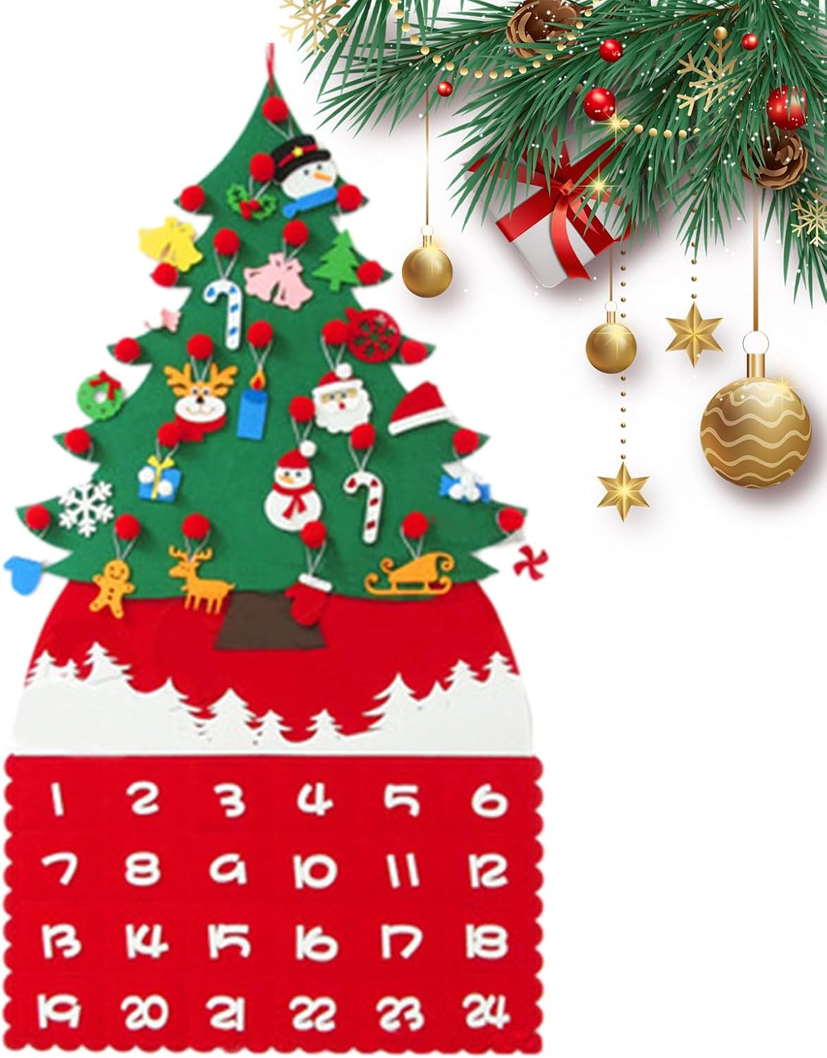Facile da assemblare: questo albero di incefuto, fatto a mano da materiali eccellenti, ha bambini decorati con una varietà di piccoli ornamenti e sentire l'atmosfera natalizia, tutto è assemblato a mano Giocando in sicurezza: con il suo materiale in tessuto facile da negozio, l'albero di per bambini è un integratore per la tua decorazione natalizia. Con una dimensione di 52 x 95 cm, può essere facilmente installato su tavoli e scaffali, mentre il suo design riutilizzabile garantisce feste indimenticabili anno dopo anno. Partecipa ai tuoi figli: usa la tua decorazione per la casa con questo albero di in feltro interattivo. I bambini adoreranno decorare e modellare questa brillante aggiunta a ogni stanza e dare alla tua casa una decorazione unica e divertente Aumenta l' festivo: le 24 borse con piccoli tesori che i bambini possono svelare ogni giorno al conto alla rovescia fino a . Il nostro albero di per bambini porta divertimento e interattività a e garantisce un'atmosfera felice e esperienze felici Per la maggior parte delle occasioni: con il nostro albero di in feltro, crea un'incantevole esperienza del festival invernale a casa, in classe o in qualsiasi occasione. Raccogli familiari e amici per condividere bellezza e calore e lascia che le celebrazioni festive inizino, grazie a semplici arredi e opzioni di presentazione versatili