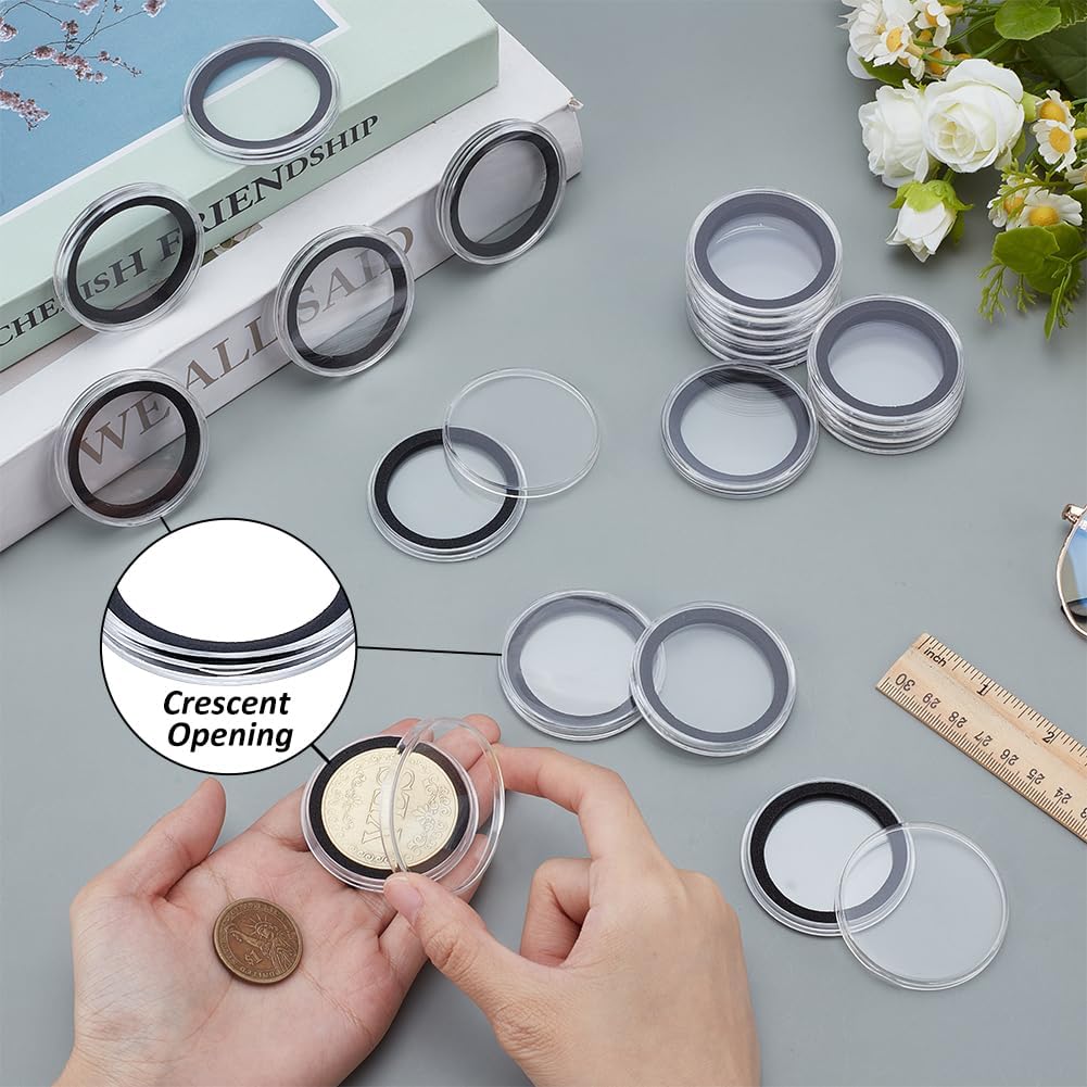 Informazioni sulle dimensioni: questo set include 20 capsula per monete in plastica trasparente con anelli di supporto in schiuma nera abbinati. Ogni capsula ha dimensioni di 51.5mm di diametro esterno con 6.5mm di spessore, e diametro interno di 38mm progettato per contenere lingotti comuni e monete commemorative, garantendo al contempo una protezione essenziale contro i danni ambientali Design protettivo efficace: realizzato in materiale plastico di qualità, queste capsule sono dotate di una superficie antigraffio che mantiene l'integrità delle monete. la chiusura ermetica a scatto crea una barriera protettiva che previene le impronte digitali e protegge le monete da polvere e umidità., preservando le loro condizioni originali perfette per una conservazione a lungo termine Minimalista e funzionale: il design aerodinamico combina un corpo della capsula trasparente con un elegante anello in schiuma nera, offrendo sia protezione che presentazione elegante. la guarnizione in schiuma ammortizzante impedisce il contatto metallo-plastica, riducendo le potenziali abrasioni superficiali durante la manipolazione Visione chiara: il materiale trasparente garantisce una visione senza distorsioni di entrambi i lati della moneta, mentre l'anello interno nero crea un contrasto ideale per evidenziare i dettagli intricati delle monete. Il design garantisce una chiara visibilità da qualsiasi angolazione Soluzione di archiviazione universale: ideale per i collezionisti che necessitano di una protezione affidabile per monete di dimensioni standard come monete d'argento e monete commemorative. per una vestibilità ottimale, si prega di verificare che il diametro della moneta corrisponda alla dimensione interna di 38mm. Le dimensioni uniformi li rendono perfetti per l'archiviazione organizzata di grandi quantità in album o vetrine