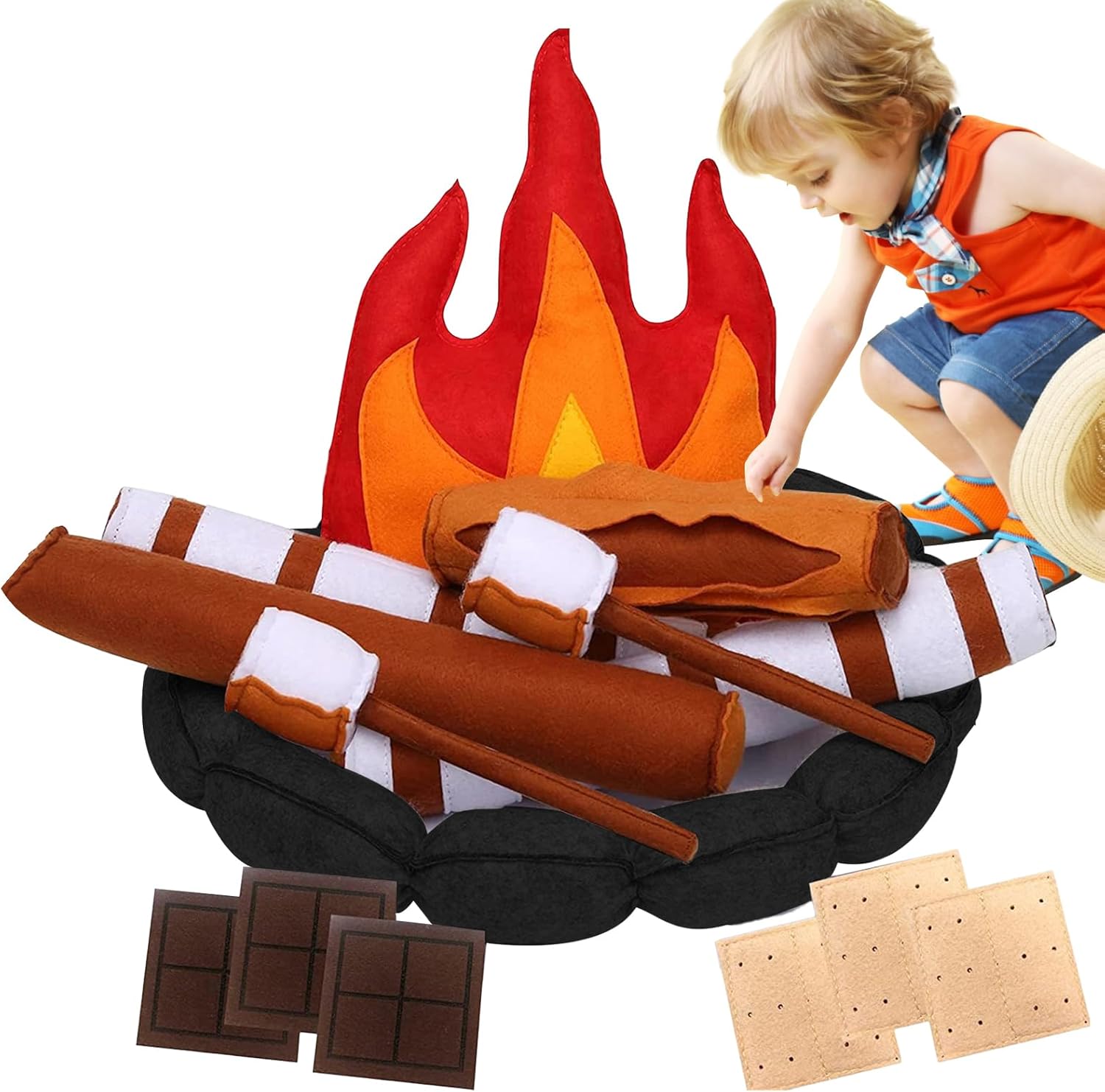 Regalo meraviglioso: tratta i tuoi bambini e i tuoi cari con il regalo questo Natale e Capodanno - Funzione di falò. Esplora qualsiasi superficie con facilità ed eccitazione con questo gioco. Materiale duraturo: con il suo materiale in feltro morbido ma robusto, questo finto fuoco da falò per bambini dà un gioco duraturo garantendo al contempo la sicurezza. La sua costruzione impedisce anche la deformazione. Design vivido: sviluppare la curiosità di tuo figlio e insegnare loro il campeggio e la natura con questo simpatico e colorato set da falò con stimolazione in pietra e cibo. Aumenta la relazione genitore-figlio: incoraggia l'immaginazione e la creatività di tuo figlio con il nostro finto falò set per i bambini. Questo giocattolo stimola l'apprendimento del pensiero logico. Boost logico: Find Fellfire Set for Kids è un modo per esercitare e migliorare le capacità cognitive. Aiuta a sviluppare il coordinamento occhio-mano e ispira la creatività.