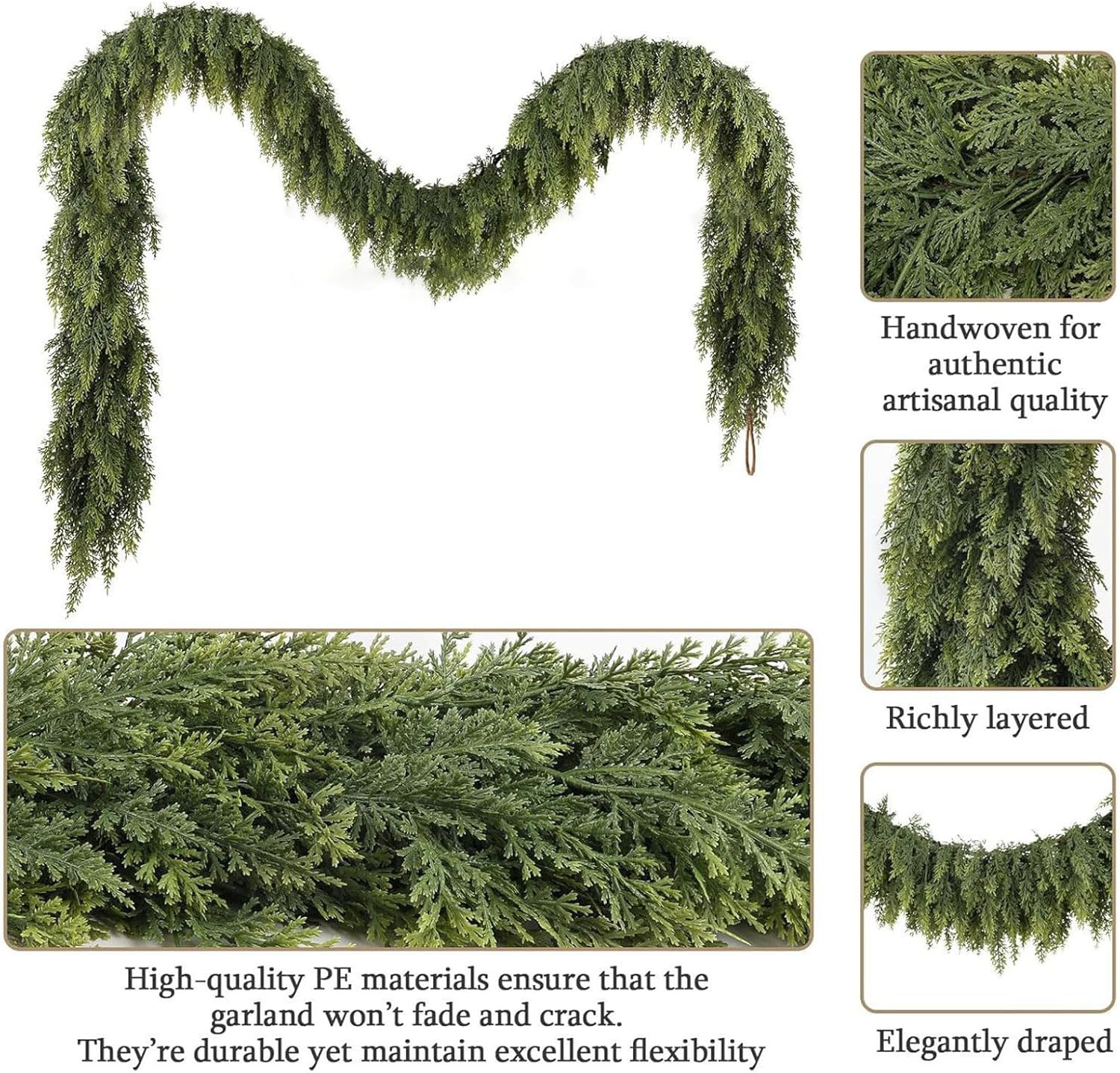 Greery dettagliata delle vacanze: migliorata da un fine di fabbricazione, i rami di verde e le foglie offrono gradienti verdi naturali, offrendo un aspetto vivace per arricchire il tuo umore e il tuo fascino natalizio Garland in cedro vivace: cattura la caratteristica del cedro reale utilizzando un materiale PVC flessibile, fornendo un tocco morbido e morbido mentre sicuro nell'arredamento della stanza senza rigidità o disagio Flessibilità decorativa creativa: realizzata con un telaio a vite pieghevole, questa ghirlanda offre durata e versatilità, adatta per telai di porte, centrotavola o composizioni da tavolo in vari ambienti decorativi Presentazione delle vacanze: Festeggia occasioni speciali come Natale, anno e compleanni dando questo cedro Garland; Trasmetti le migliori emozioni rafforzando i legami con famiglia, partner e amici attraverso regali creativi Accento rustico festivo: la ghirlanda di cedro natalizio completa vari stili di decorazione, adatti per camini e portici con il suo design rustico e il suo aspetto robusto naturale, adatto per uso interno ed esterno per migliorare l'atmosfera festosa