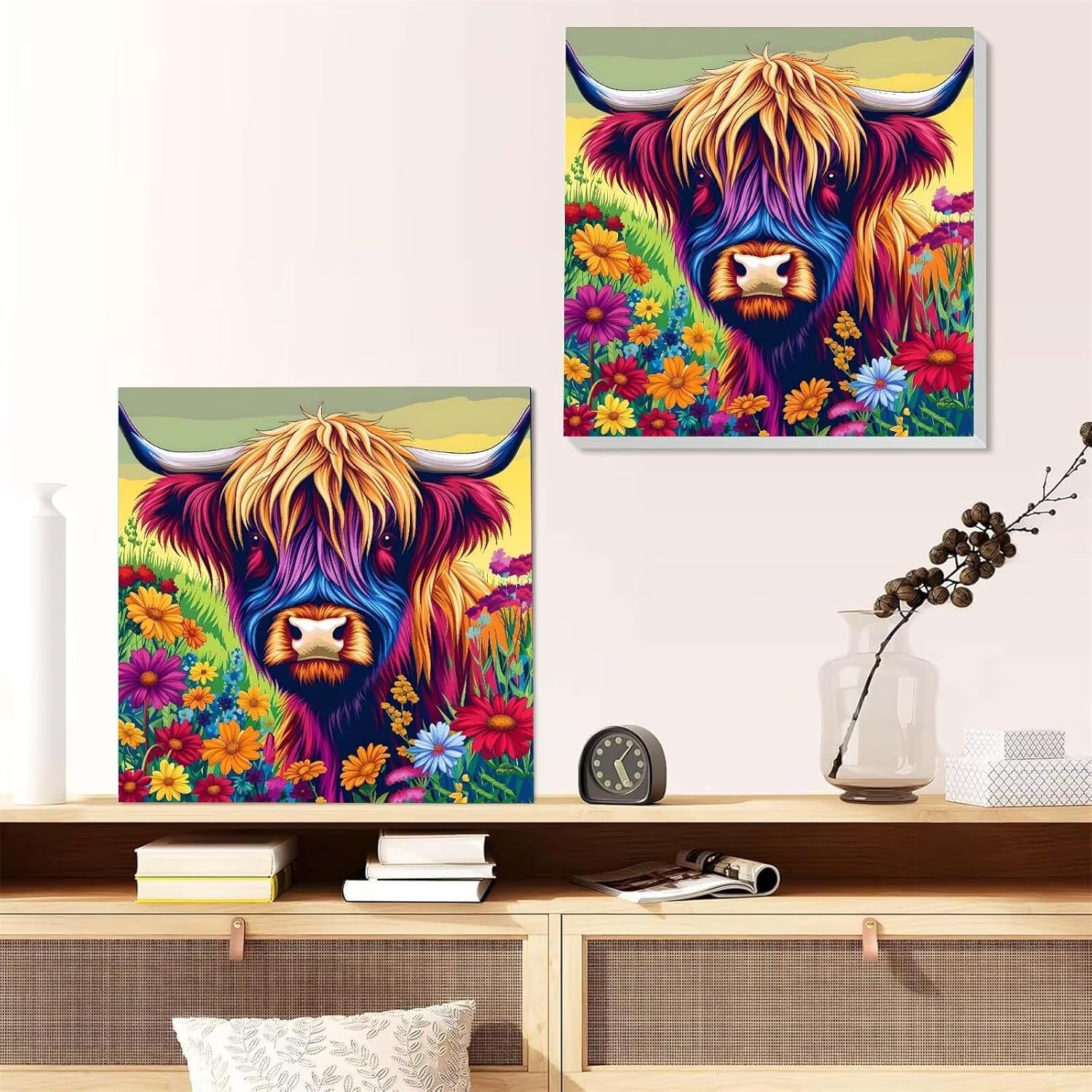 Fiore di mucca Highland Dipingere con i Numeri per Adulti, Quadri da Dipingere Numerati, Dipingere con i Numeri per Adulti, Kit di Pittura a Olio su Tela DIY per Decorazione della Casa 30x30cm U-3095
