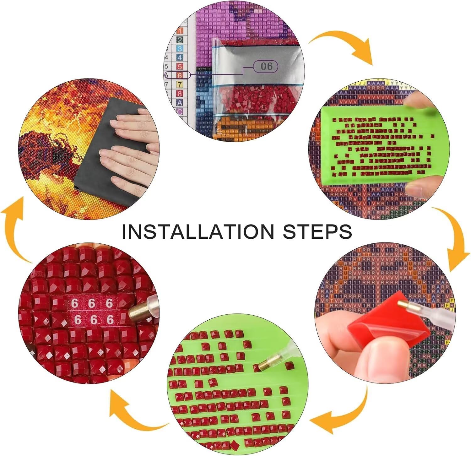 【Diamond Painting Kit】: Ogni kit include tutto il necessario per iniziare: tela prestampata, diamanti in resina confezionati singolarmente, penna, argilla adesiva e vassoio per diamanti 【Disegno Full Drill】: Scopri la massima brillantezza con i nostri kit di pittura a diamante 5D Full Drill, con diamanti in resina di alta qualità che ricoprono l'intera tela per un capolavoro vibrante e scintillante 【Tela Premium】: Le nostre tele sono realizzate in tela premium, impermeabile e antipiega. L'adesivo resistente assicura che i diamanti rimangano saldamente in posizione, garantendo che la tua opera d'arte rimanga intatta e vibrante per gli anni a venire 【Allevia lo Stress】: Rilassati e liberati dallo stress con questa coinvolgente forma d'arte. La pittura a diamante è nota per i suoi effetti calmanti, aiutando a ridurre l'ansia e a migliorare la concentrazione 【Decorazione Perfetta】: Trasforma qualsiasi stanza con la tua opera d'arte a diamante finita. Queste splendide e scintillanti creazioni sono una raffinata decorazione murale per soggiorni, camere da letto o uffici