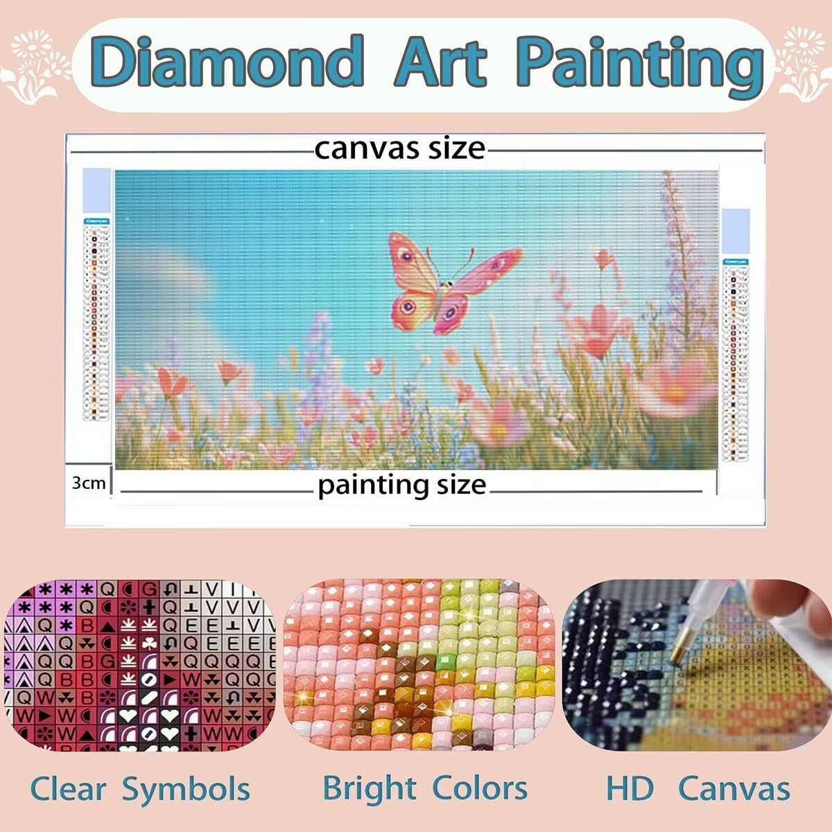 DIAMOND PAINTING SIZE AND PACK : Diamond painting fiore è size 70x140cm, include 1 tela ad alta definizione, 1 penna a diamante, 1 vassoio a diamante cubico, 1 argilla adesiva, 5 sacchetti sigillati, il set contiene abbastanza diamanti quadrati colorati (un extra del 30%) e tutti gli strumenti necessari per realizzare diamond painting TELA PER DIAMOND PAINTING HD : Diamond painting farfalla tela utilizza una stampa ad alta definizione, garantendo che ogni numero o lettera sia chiaramente identificabile, trovarli facilmente, tela impermeabile e dalla consistenza uniforme, con una copertura superiore in plastica autoadesiva per mantenere la pittura appiccicosa e i diamond al sicuro COLORATA FULL DIAMOND PAINTING : Diamanti nei nostri kit diamond painting con trapano completo sono riccamente colorati e comprendono l'intero spettro di tonalità necessarie per l'opera d'arte. Realizzati con materiali di alta qualità, questi diamanti mostrano brillantezza, lucentezza e resistenza allo sbiadimento. La luce brillante riflessa dalle loro superfici anima l'intero dipinto DIAMOND PAINTING FIORE : Diamond painting farfalla, qui est un kit de peinture au diamant adapté aux adultes, nos kits de diamond painting pour adultes sont disponibles dans une variété de styles, y compris des paysages, des animaux et plus encore, pour répondre à différents besoins personnalisés (vous pouvez rechercher des Lioauanh diamond painting) EXCELLENT SERVICE APRÈS-VENTE : Après réception du kit diamond painting, veuillez d'abord vérifier la diamond et les accessoires. Si un diamant est manquant ou endommagé, contactez-nous à temps et nous vous fournirons une solution sous 24 heures (L'image indique la taille maximale, veuillez acheter la taille souhaitée)