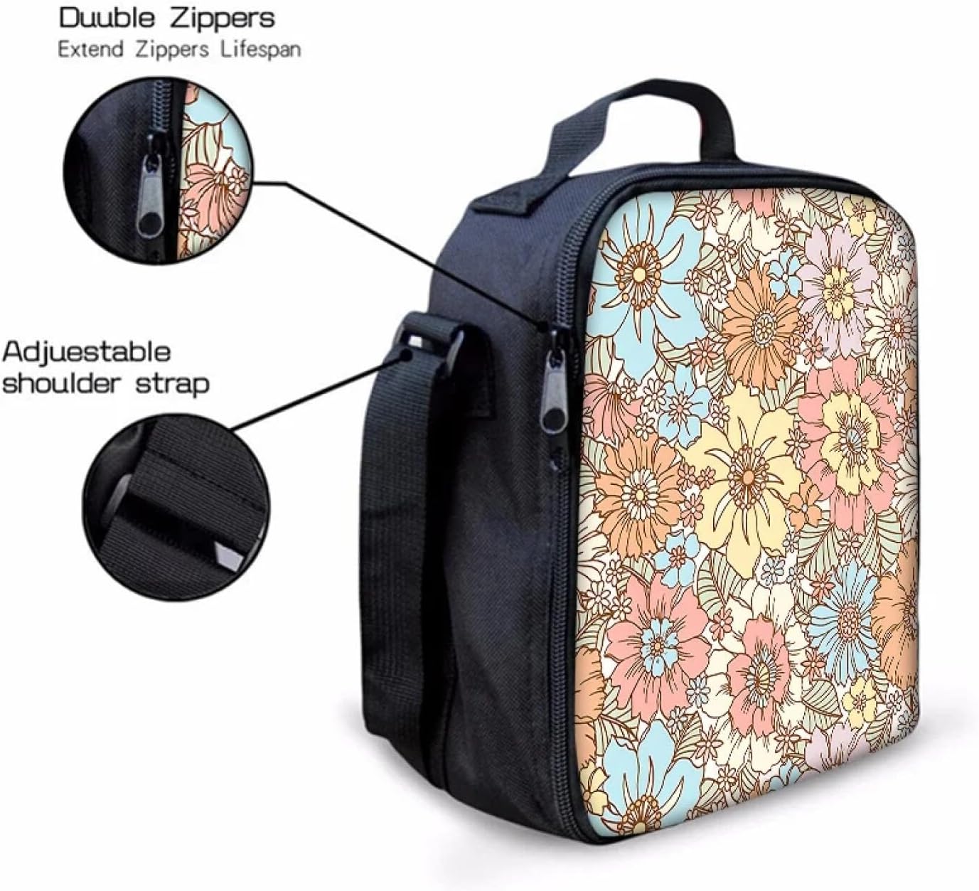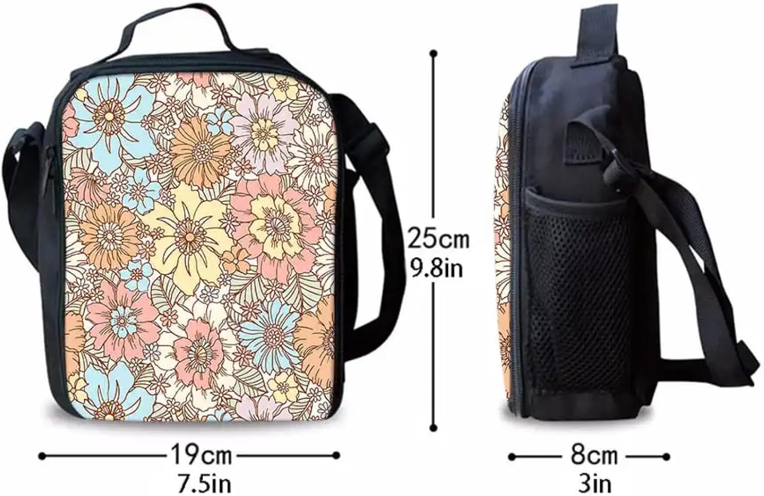 Fiore Pattern Tracolla Lunch Bag per Ragazzo e Ragazze Migliori Regali 3D Cartoon School Bento Lunch Box Bag per Bambini