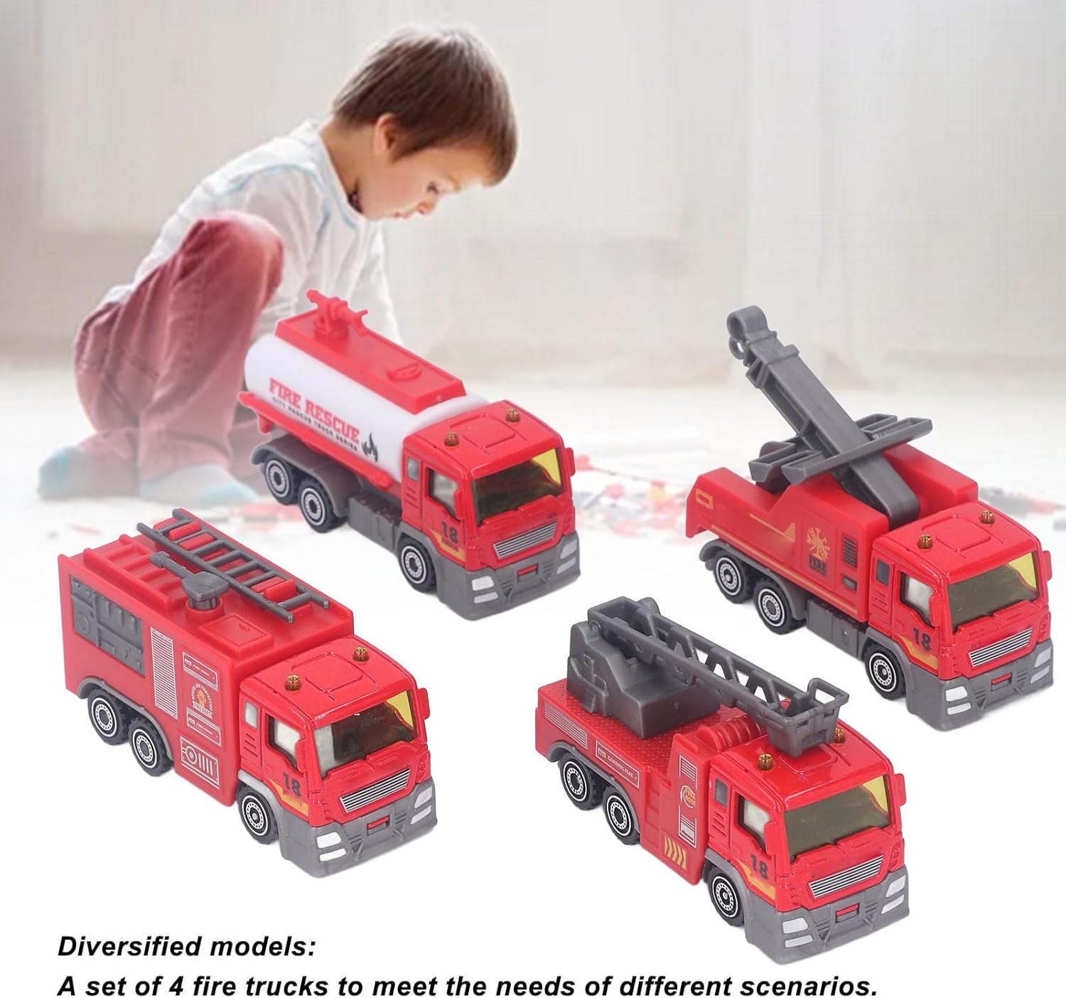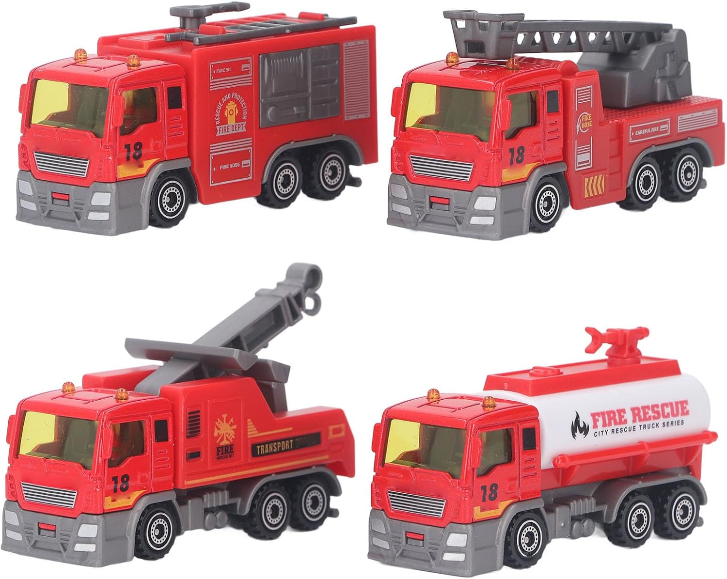 [REAListic 1:32 Scale Design] Esperienza di avventure antincendio realistiche con motori antincendio in scala 1:32 ingegnerizzati di precisione con dettagli autentici che rispecchiano veicoli di emergenza del mondo reale per scenari di gioco immersivo. [4 Modelli di camion dei pompieri di varietà] comprende quattro distinte variazioni di camion dei pompieri che offrono diverse missioni di salvataggio e simulazioni antincendio per innescare la creatività attraverso scenari dinamici di gioco di ruolo. [La costruzione in lega durevole] combina una solida componente di plastica e metallo maggiore integrità strutturale che resiste a un gioco rigoroso mantenendo la sicurezza per le mani giovani. [Educational Hands-On Play] sviluppa belle capacità motorie, consapevolezza spaziale e capacità di risoluzione dei problemi attraverso un gioco interattivo che rispecchia le operazioni di risposta alle emergenze della vita reale. [Materiali non tossici per bambini] realizzati con componenti non tossici privi di BPA che soddisfano gli standard di sicurezza internazionali per garantire il tempo di gioco senza preoccupazioni per i bambini di età compresa tra 3-6 anni.