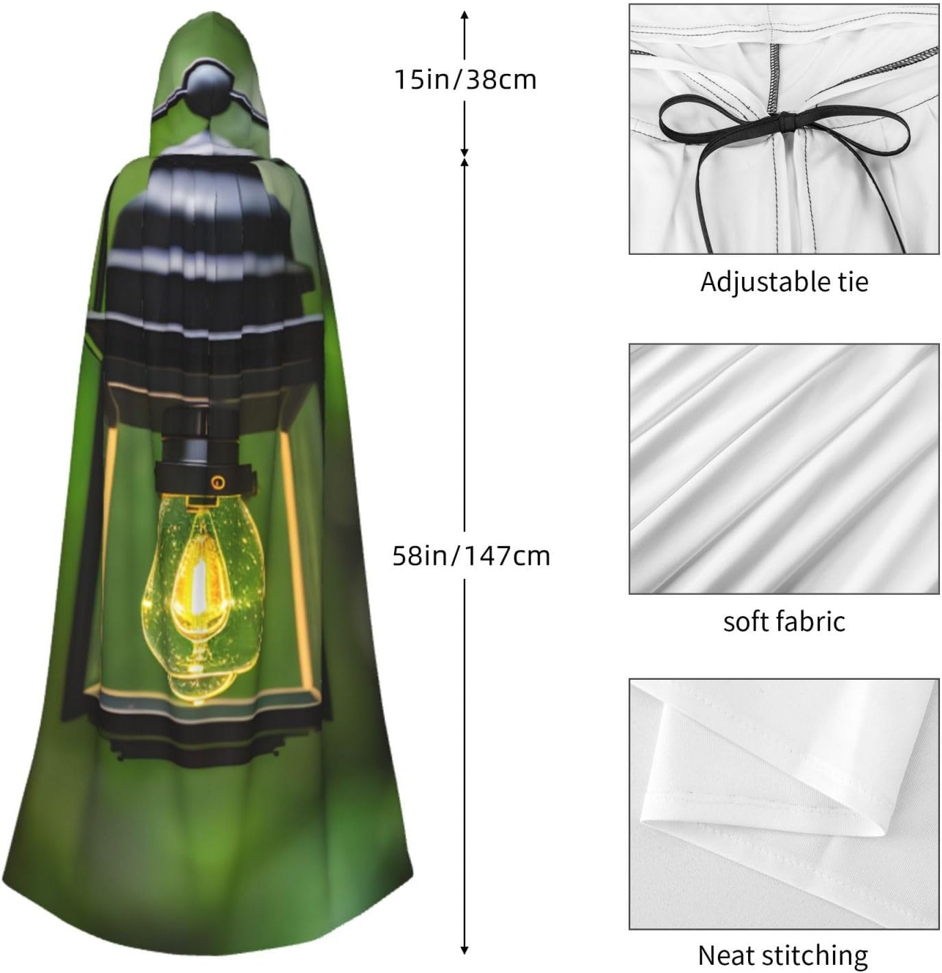 Ruba lo spettacolo a qualsiasi evento di Halloween o a tema con il nostro mantello con cappuccio. Realizzato con un tessuto confortevole, non pruriginoso, questo mantello con stampa Firefly e lanterna è progettato per assicurarti di distinguerti tra la folla. Il mantello è facile da indossare e togliere, grazie alla cravatta e all'assenza di una cerniera. Con un design facile da pulire, può essere lavato in lavatrice o a mano per garantire che sia sempre pronto per il tuo prossimo evento. Prova la perfetta miscela di comfort, stile e versatilità con il nostro mantello con cappuccio.