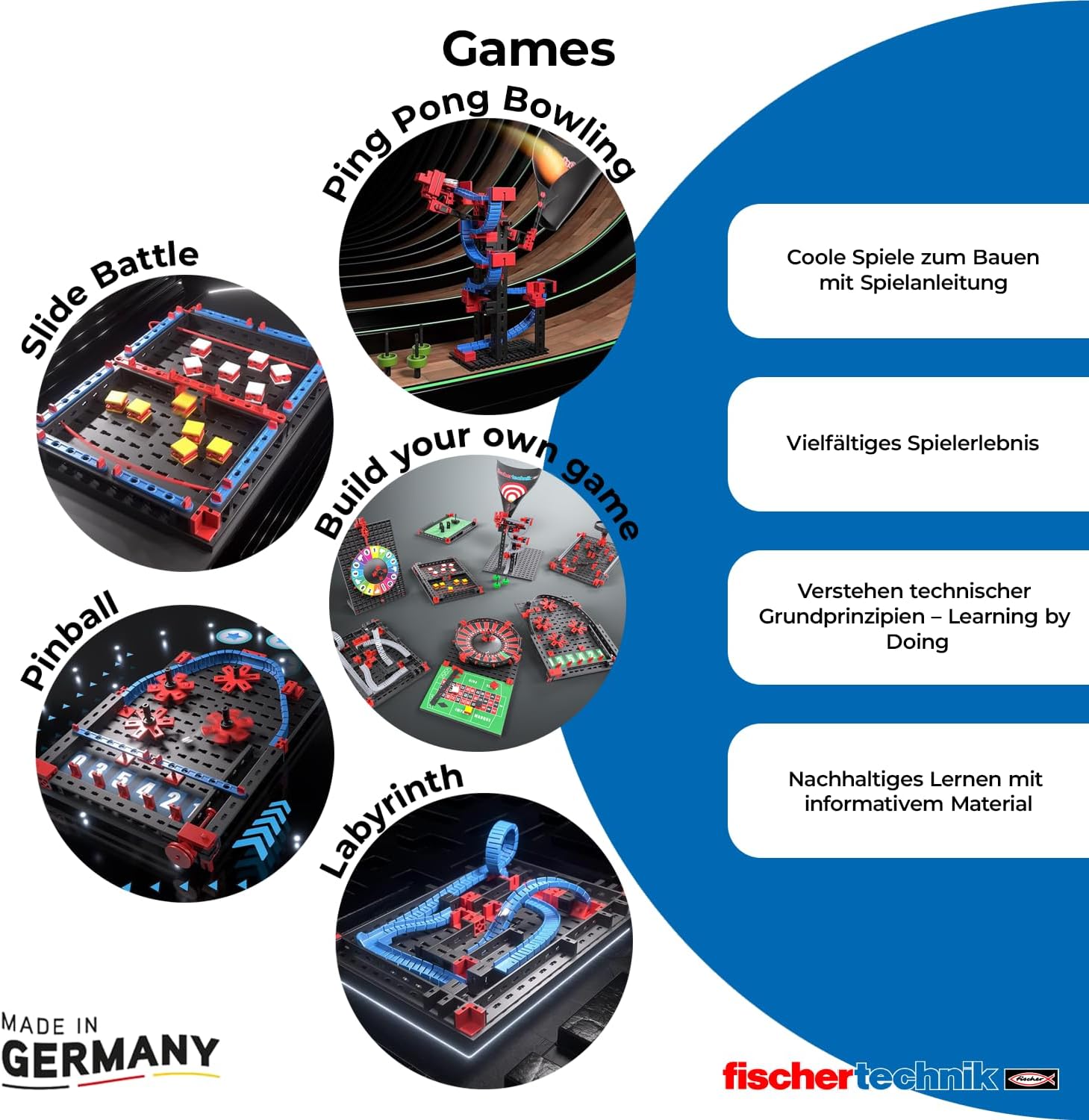 FANTASTICO GIOCO DI BOWLING: Riuscirai ad abbattere abilmente tutti i birilli sulla pista della biglia con l'imbuto? PING PONG: La pallina inizia a correre quando lanci correttamente la pallina da ping pong e si dirige verso il bersaglio! AZIONE BOWLING: Abilità e fortuna rendono il giocattolo da bowling un emozionante gioco per tutta la famiglia! CONTENUTO DELLA CONSEGNA: 1 x ADVANCED Ping Pong Bowling, giocattolo per bambini dai 7 anni in su, kit modello con 114 pezzi della fischertechnik - made in Germany