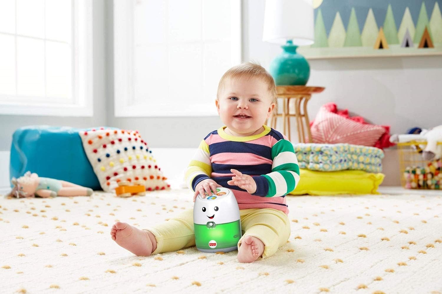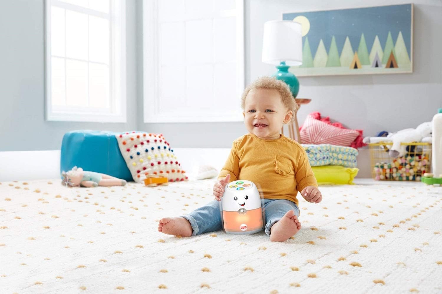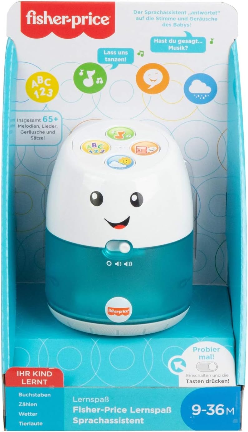Divertimento didattico Assistente vocale con luci, musica e frasi educative Il giocattolo risponde ai suoni del bambino come un vero assistente vocale (Attiva la modalità attiva.) 4 pulsanti per i versi degli animali, una playlist musicale e canzoni e frasi sull'alfabeto, i numeri, i colori e il tempo Il viso amichevole, le luci colorate e la base a dondolo per dare gomitate offrono tanto divertimento ai bambini. Ottimo regalo per neonati e bambini piccoli da 9 a 36 mesi