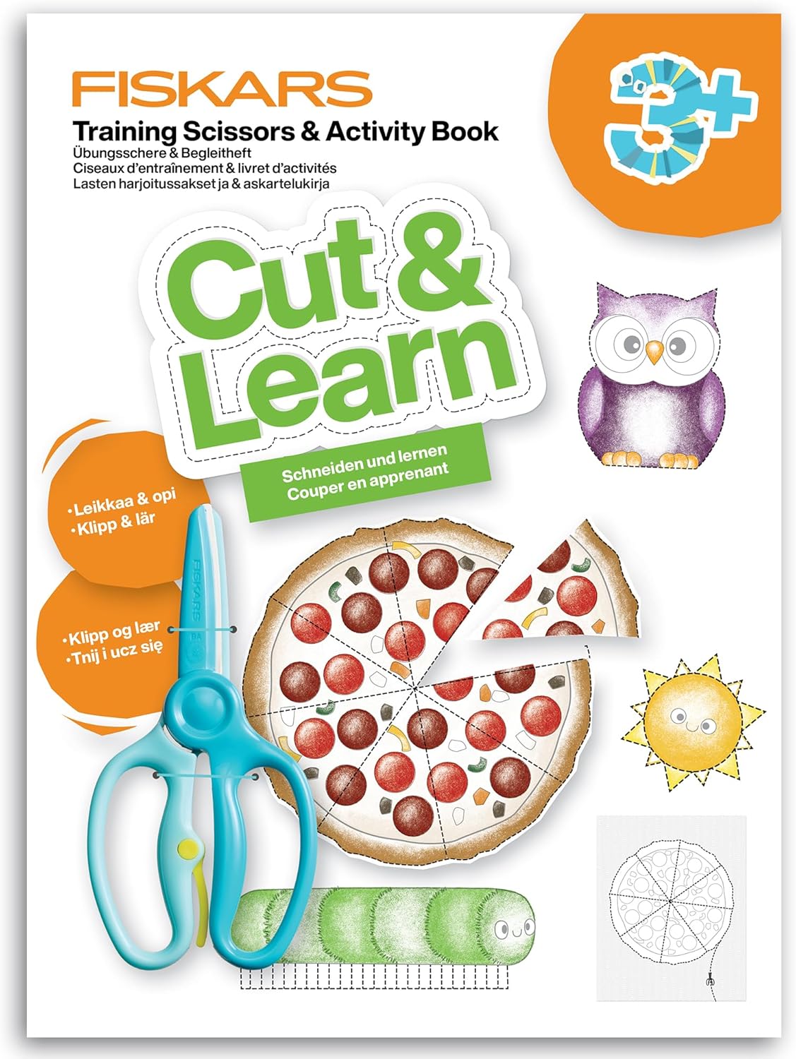 Forbici di prima età perfette per insegnare ai più giovani a tagliare. Le lame ricoperte di plastica garantiscono un taglio sicuro. Gli anelli sono progettati per dare alle piccole mani la massima precisione. Grazie all'apertura assistita, una semplice pressione sugli anelli permette di tagliare il supporto. Ambidestri.
