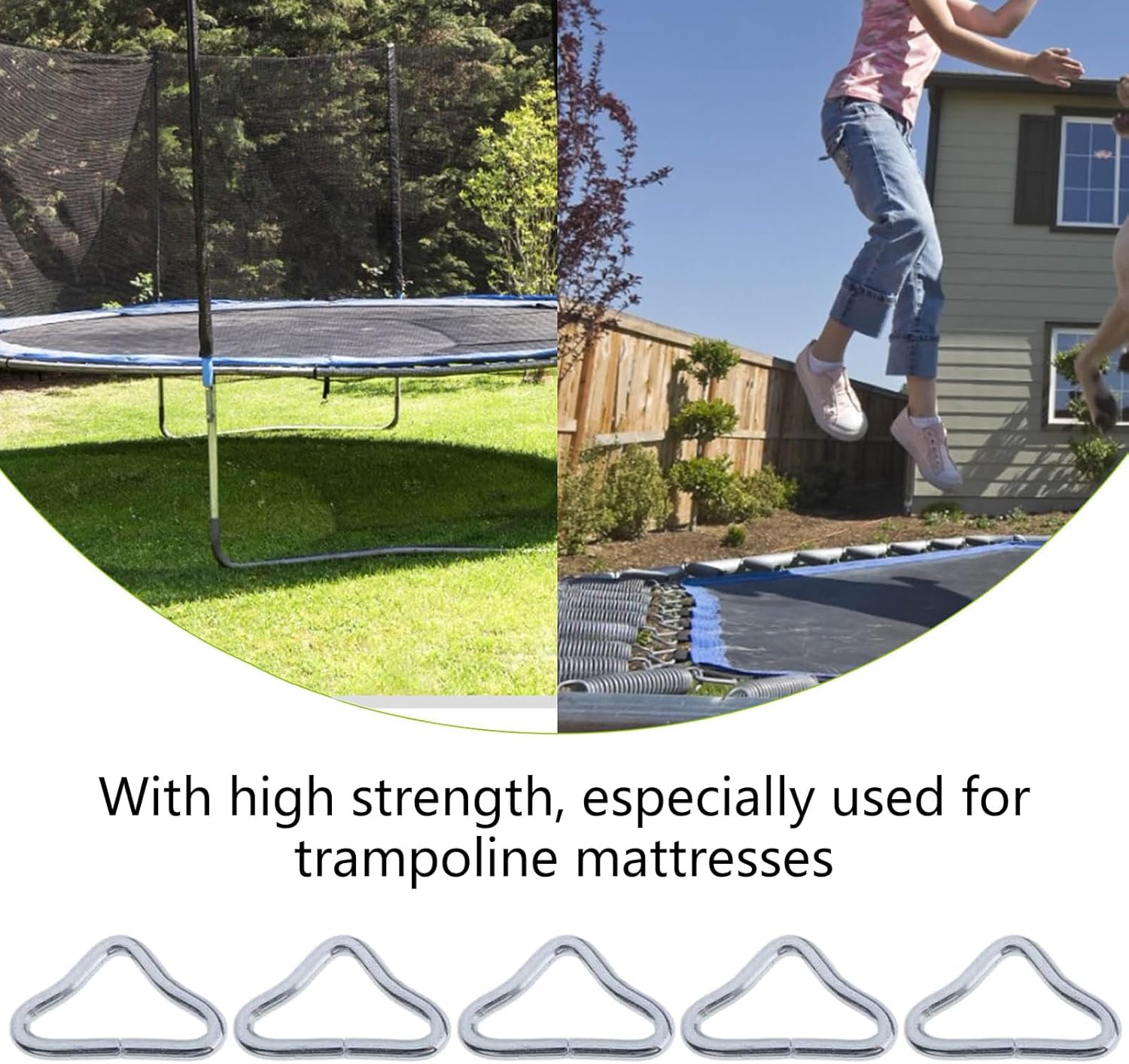 Questi anelli a V sono adatti per l'installazione e la manutenzione di attrezzature per trampolino sia indoor che outdoor e sono perfetti per aggiornare o sostituire le parti esistenti del trampolino Migliora le prestazioni della configurazione del tuo trampolino con questi robusti anelli a V per trampolino e garantisce sicurezza ad ogni salto Garantisce una connessione sicura e stabile del tuo trampolino con questi anelli triangolari con fibbie Anelli a V progettati per maggiore sicurezza e durata Ideale per le famiglie, soprattutto con bambini, così come gli operatori professionisti di trampolino nei giardini pubblici e nelle palestre che cercano un pezzo di ricambio sicuro. Realizzati in ABS ad alta resistenza, questi anelli a V hanno una finitura resistente alla ruggine, che li rende perfetti per un uso a lungo termine in varie condizioni atmosferiche