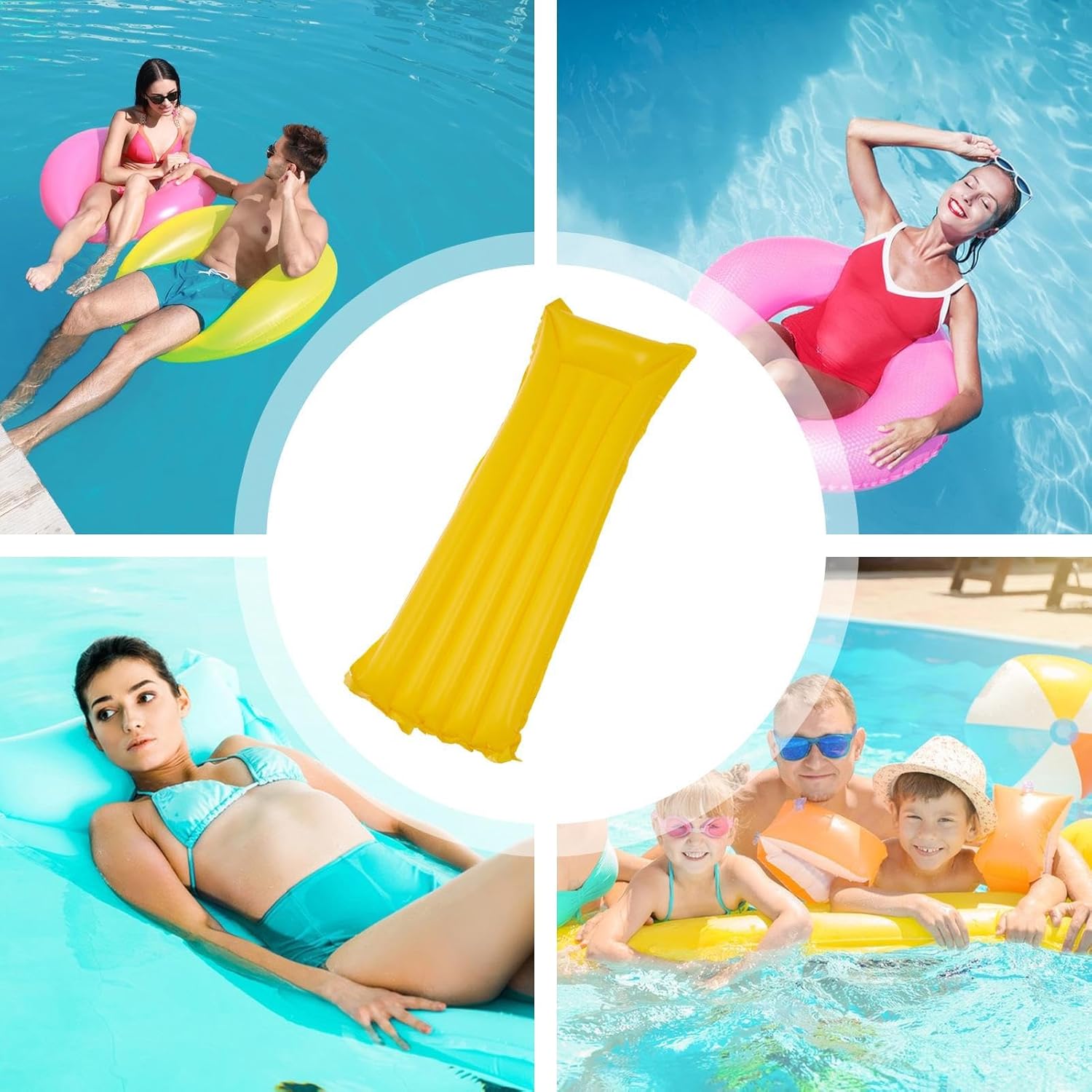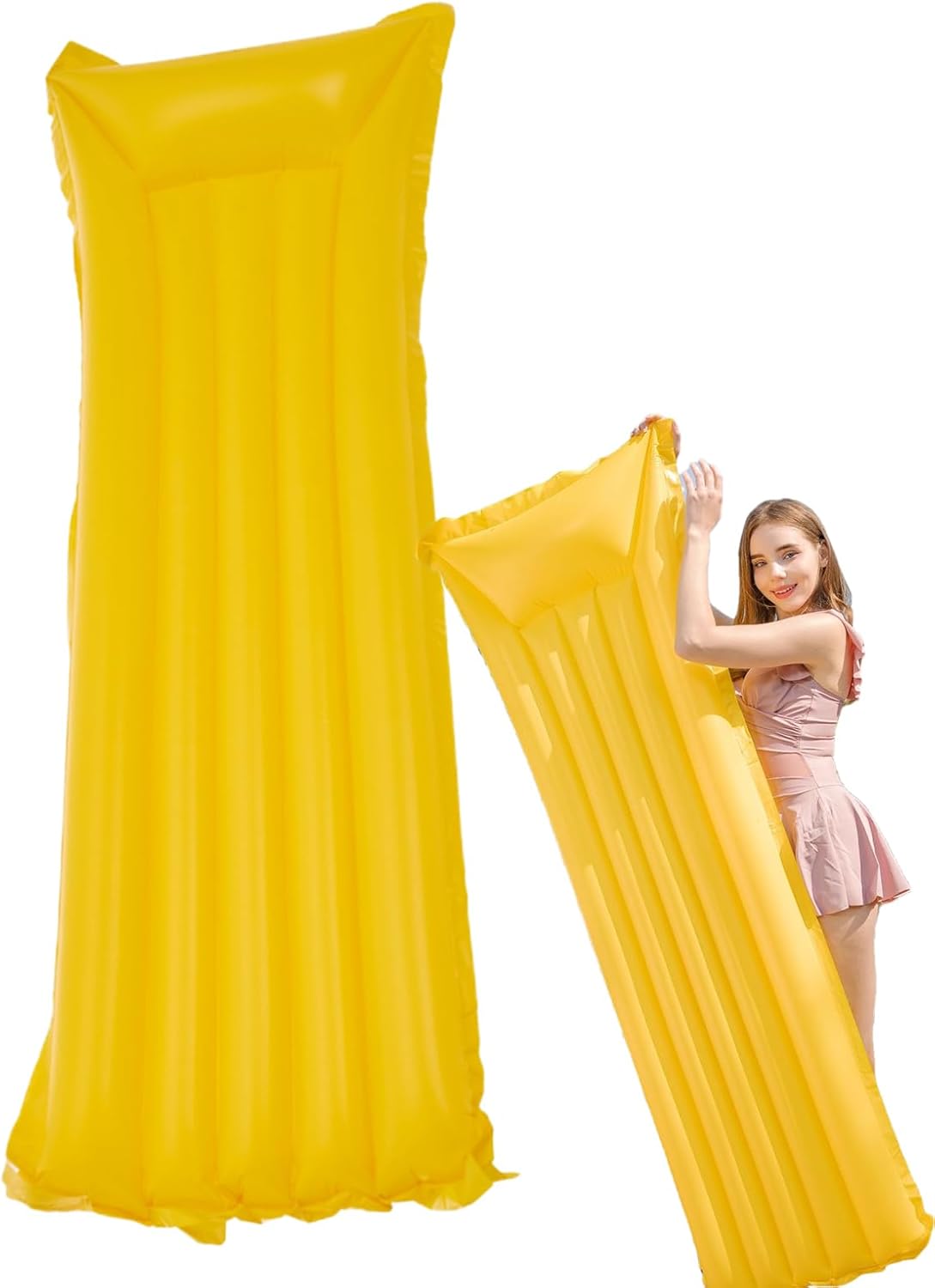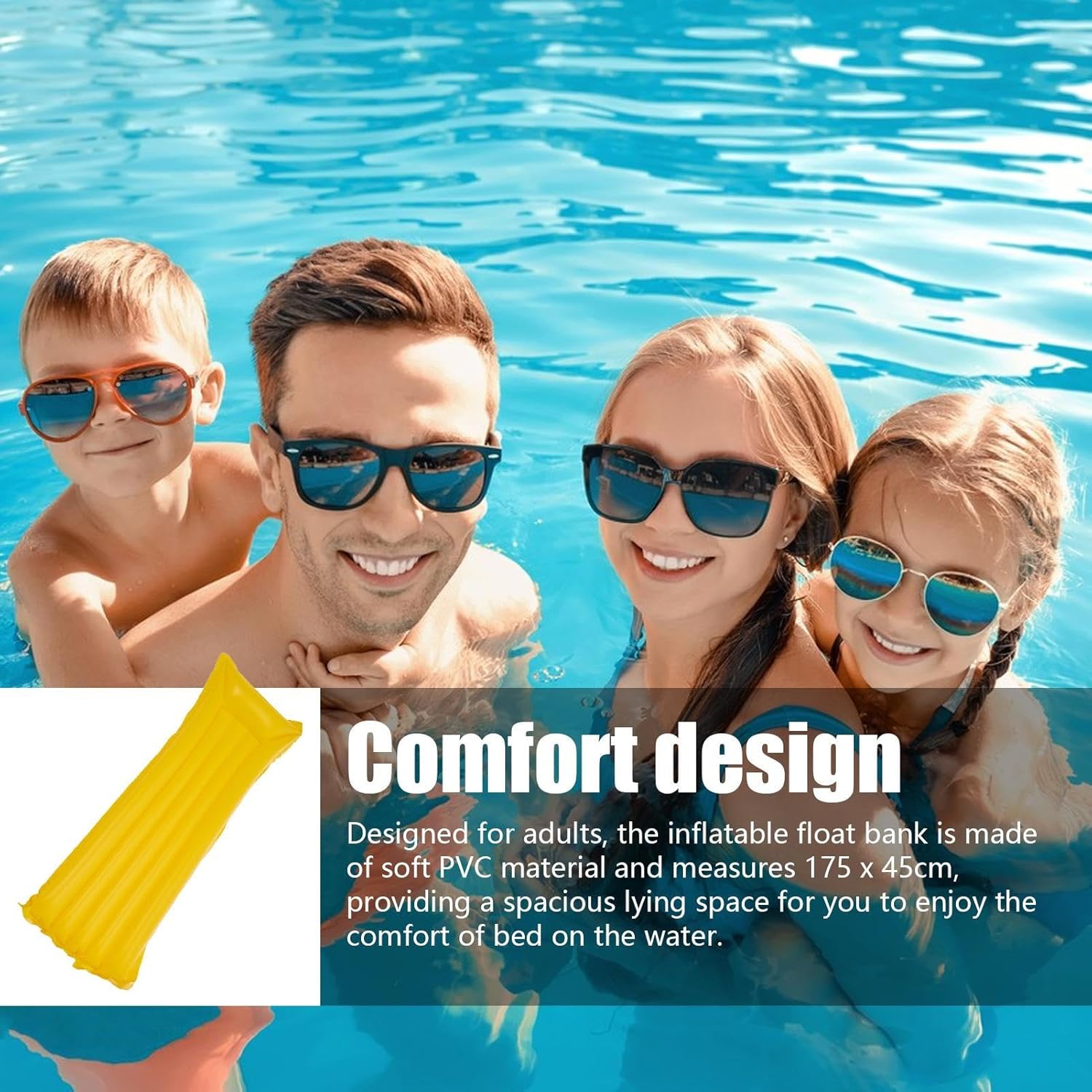 Durabilità assicurata: realizzata in PVC di alta qualità, le nostre zattere di piscina per adulti sono costruite per resistere all'usura, garantendo un'esperienza acquatica sicura e stabile. Portatile e pieghevole: sperimentare comfort come mai prima con la nostra zattera della piscina. Retrattile senza sforzo con un design gonfiabile, facilmente piegato dopo l'uso. È leggero e facile da trasportare, rendendo comodo da conservare ovunque. Uso ampio: fai una dichiarazione con le nostre lussuose zattere di piscina per adulti, perfette per tutti i tipi di acque tra cui piscine, laghi e spiagge. Un must per il massimo rilassamento durante le vacanze estive e le feste in acqua. Aura colorata: la tua esperienza in piscina con le nostre zattere di piscina per lo splendido uso degli adulti di colori vivaci, garantendo una facile visibilità sull'acqua aggiungendo bellezza e divertimento alla tua esperienza. Rilassamento senza eguali: senti la massima tranquillità mentre ti sdraiate comodamente sulla nostra zattera di piscina, dotato di un ampio letto galleggiante da 175x45 cm. Progettato per il comfort, puoi goderti un'esperienza lussuosa sull'acqua.