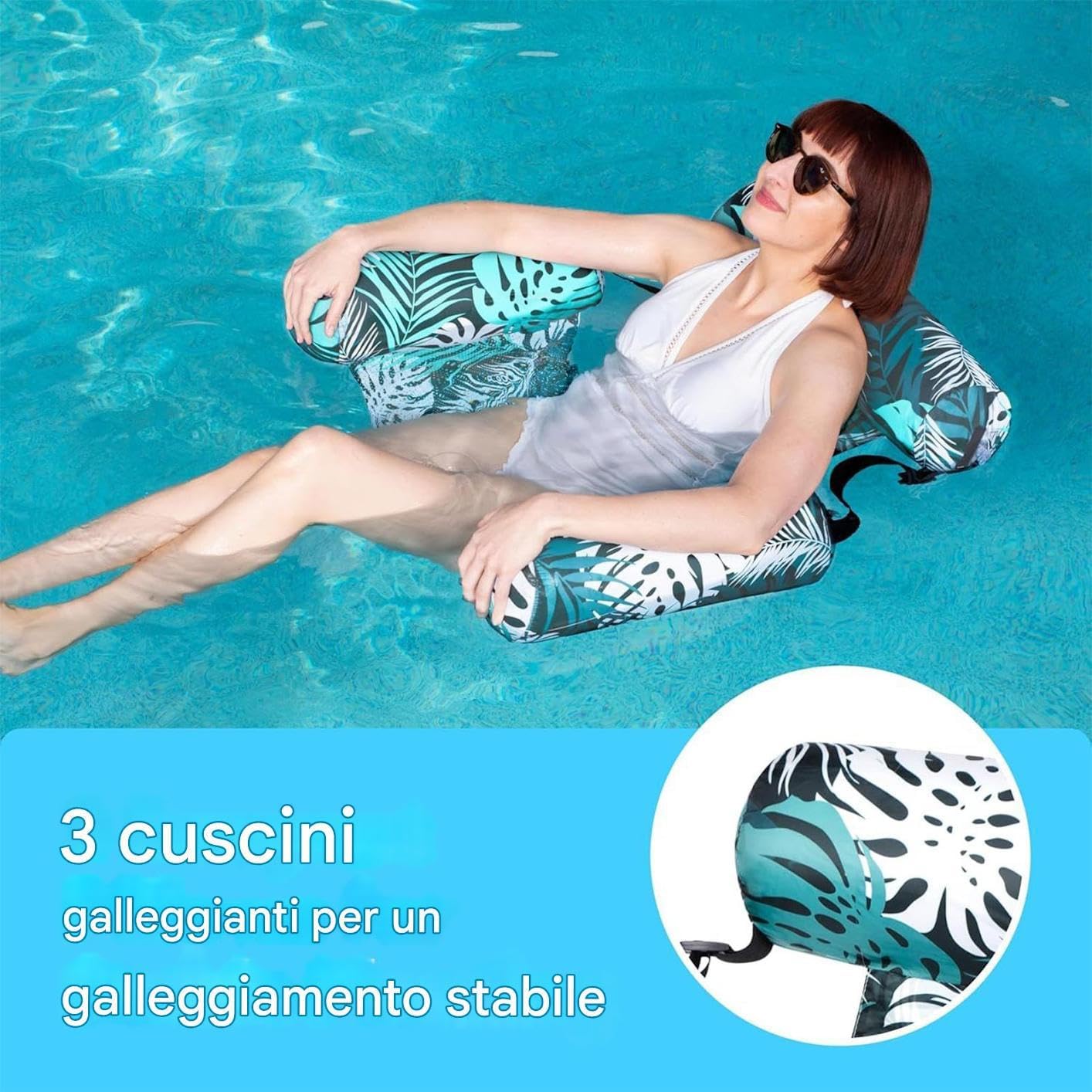 Versatile piscina float: goditi più intrattenimento con un galleggiante ricreativo ideale per i giorni estivi in piscina, offrendo comfort portatile per il sole e funzionamento perfettamente come un lettino gonfiabile in più ambientazioni d'acqua Esperienza galleggiante migliorata: progettata con eccellente materiale in PVC e una concentrazione sulla capacità di 250 libbre, con strato di mesh di raffreddamento e una struttura resistente alle perdite, per un comfort costante e stabilità Soluzione di trasporto senza sforzo: con una concentrazione su facile trasporto e piegatura compatta, il galleggiante della piscina è progettato per un'inflazione rapida e lo stoccaggio portatile, rendendolo ideale per gli appassionati di viaggio Fun di amaca galleggiante: questa amaca galleggiante arricchisce il rilassamento del cortile, supporta i giochi d'acqua vivaci per bambini e lo rende un accessorio per le feste indispensabili per le indimenticabili giornate estive estive Design esterno compatto: combinando i ruoli di un galleggiante da spiaggia e una sedia leggera, questo lettino a bordo piscina si piega facilmente per lo stoccaggio, fornendo comodità all'aperto mantenendo comfort e stile