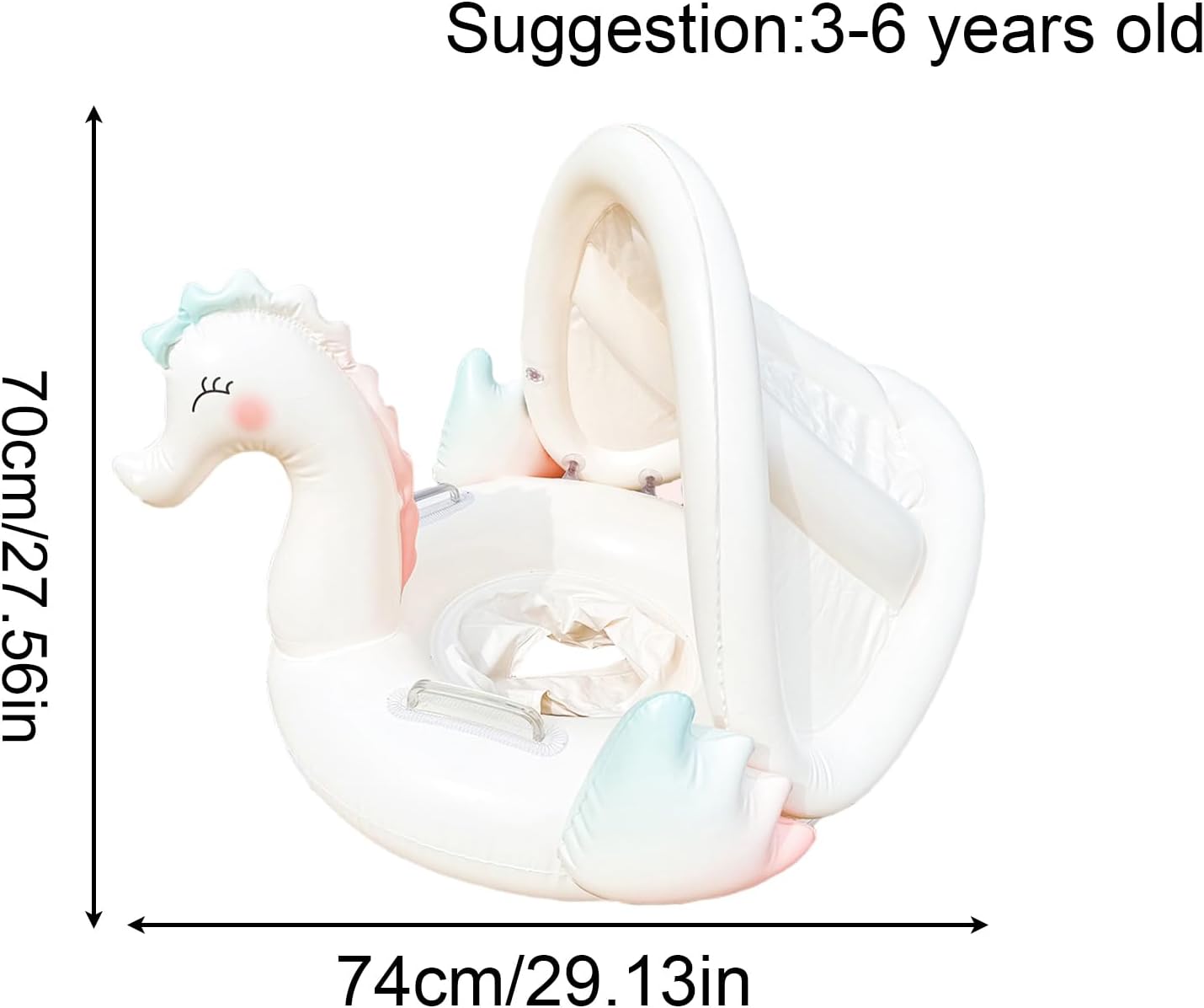 Design a galleggiante piscina portatile: progettato con un anello pieghevole, borsa portatile e riferimento al sole rimovibile, questa piscina per bambini si estende di spazio facile e portabilità senza sforzo per le attività all'aperto Smart Sun Defense: presenta un'efficace configurazione di ombrellone con capacità bloccanti UV, un baldacchino allargato e mesh traspirante che scende il posizionamento regolabile per il flusso d'aria Design robusto e sicuro: superfici lisce senza berretto e materiale PP robusti garantiscono sicurezza, mentre le cuciture rinforzate forniscono eccellenti lacrime resistenti, mantengono il galleggiante intatto e sagomato dopo immersioni Progettazione di sicurezza avanzata: l'innovativa struttura di supporto alle ascelle distribuisce uniformemente la pressione 'acqua, per un'esperienza galleggiante sicura e confortevole, garantendo una galleggiabilità stabile e riducendo il rischio di scivolare durante l'uso Ampia applicazione: migliorare il della famiglia con un galleggiante per piscine per bambini adatto a spiagge, laghi, cortili e feste, offrendo divertimento costante tra scenari VV