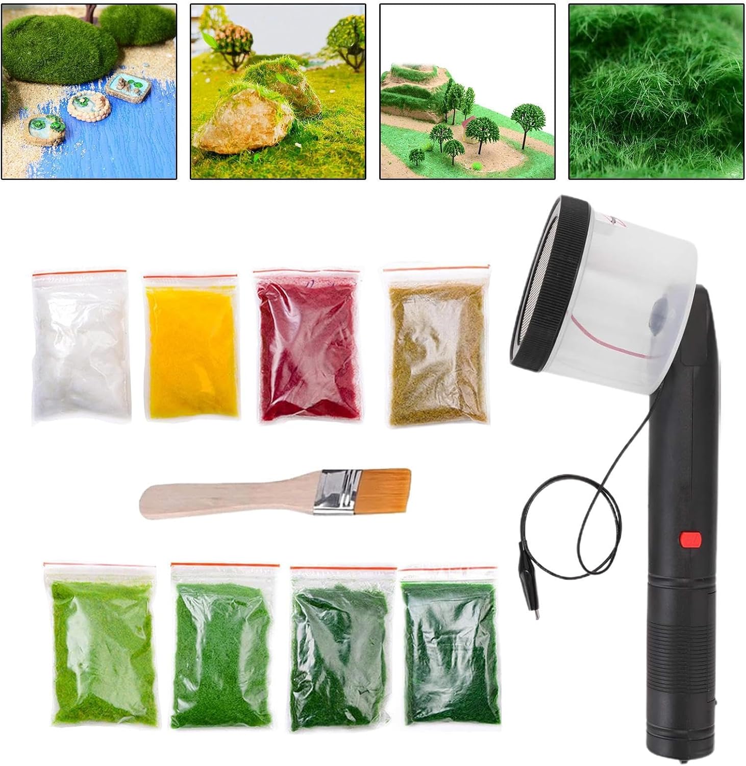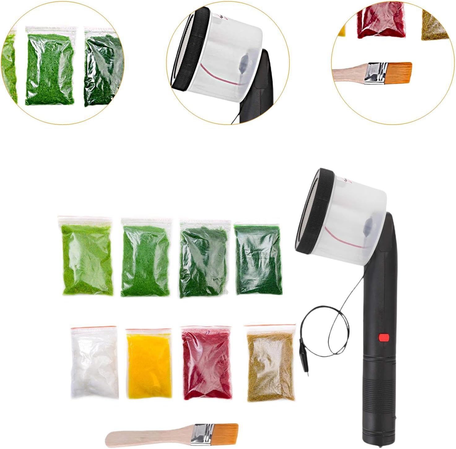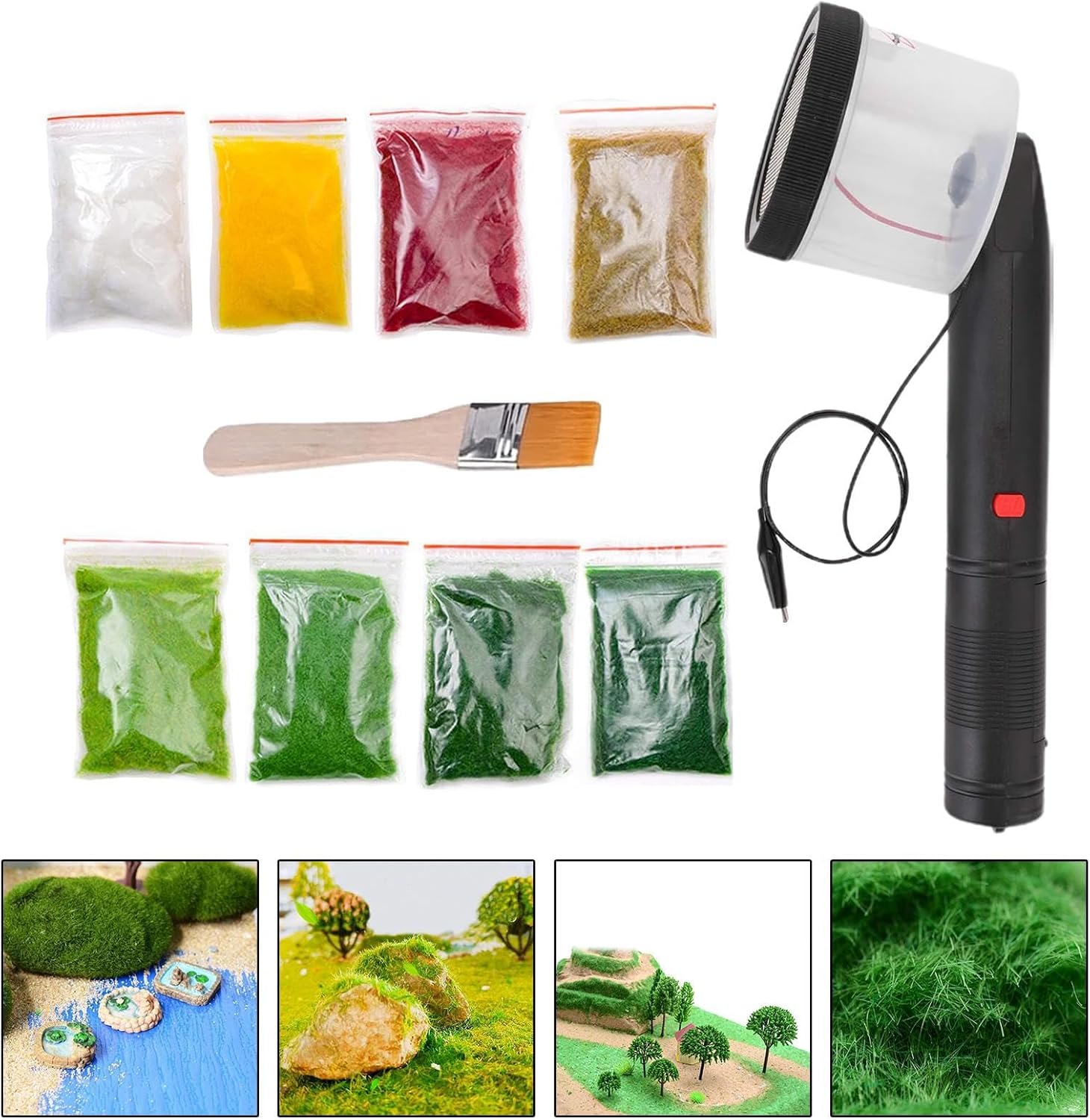 Paesaggio modello realistico: la macchina floccatrice elettrostatica crea trame di erba dall'aspetto naturale per un maggiore impatto visivo nelle esposizioni dei modelli. Robusta struttura in PP: realizzata in materiale di polipropilene per prestazioni affidabili e uso duraturo in applicazioni hobbistiche. 【Applicazione versatile】 Adatto per modellini di treni, esposizioni architettoniche, diorami, tavoli di sabbia e vari progetti paesaggistici fai-da-te. Maneggevolezza: con impugnatura antiscivolo e dimensioni moderate per una presa comoda durante l'uso a lungo termine. Kit iniziale completo: include una macchina per erba statica, una spazzola per l'applicazione e diversi sacchetti di polvere per erba per un utilizzo immediato nei progetti.