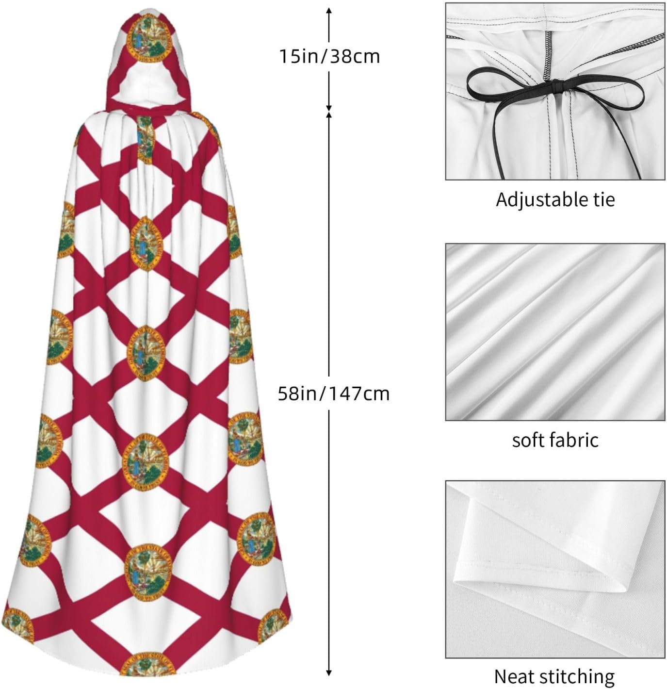 Questo versatile mantello con cappuccio è l'accessorio ideale per feste, Halloween, cosplay e altro ancora. Realizzato in fibra di poliestere di alta qualità, il mantello è comodo e non prurito. Caratterizzato da una stampa a tutta larghezza, aggiunge un tocco unico e intrigante al tuo costume. \r Il mantello è progettato per uso adulto, con un grande cappuccio, un nodo al colletto e senza cerniera, che lo rende comodo e facile da indossare. La sua versatilità lo rende perfetto per una varietà di occasioni, tra cui Halloween, costumi da gioco di ruolo, costumi da palcoscenico, feste in maschera, feste a tema, balli, esposizione di fumetti e altro ancora. Pulire questo mantello è un gioco da ragazzi, grazie al suo tessuto lavabile in lavatrice. Aggiungi questo versatile mantello con cappuccio alla tua collezione di costumi e distinguiti alla tua prossima festa o evento!