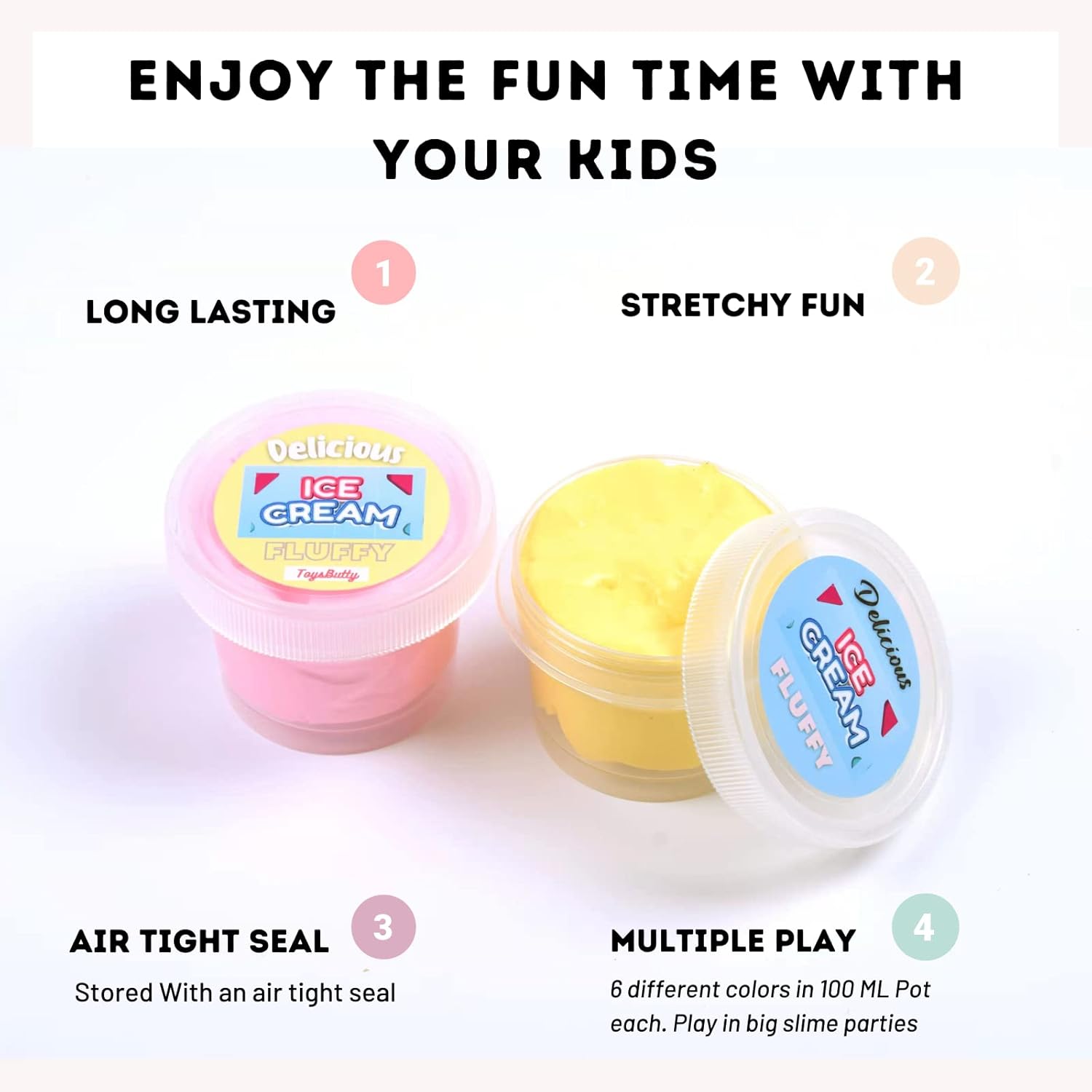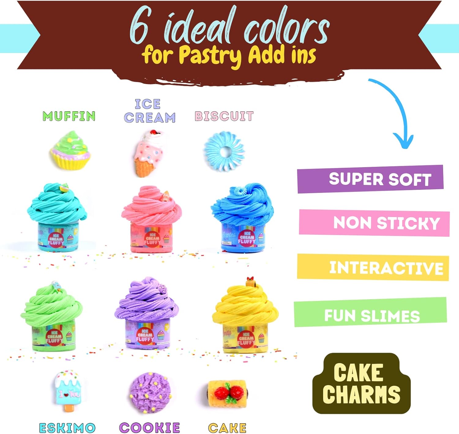6 FLUFFY CON FASCINI PER TORTA - Sviluppa l'immaginazione dei bambini. Questo kit viene fornito con un sacco di divertente melma premade in 6 colori per piccole sessioni di gioco o riunioni di feste per bambini più grandi. Disimballare la melma a tema torta dalle pentole, scopri i ciondoli per torte inclusi all'interno, i bambini si divertiranno a trovarli! Profumi di torta di gelato: ottieni 6 melme soffici di colore, ognuno di essi ha un profumo di torta che immerge adulti e bambini in una piacevole atmosfera per le tue feste preferite, compleanni, feste in melma per genitori e bambini, attività scolastiche. Grandi vasi in scatola regalo: conservati in una bella scatola, il soffice può essere offerto come giocattolo regalo. kit di gioco educativi migliorano la creatività, l'interazione genitore-figlio, il ragionamento spaziale. Una guarnizione ermetica è inclusa all'interno per il primo unboxing. Vuoi giocare di nuovo? Riponili nei contenitori, facili peasy. Aperto per scoprire il divertimento in pochissimo tempo. PER PARTI SLIME - Iscriviti a ore di divertimento con look like a slime kit. Perfetto per una festa di compleanno o regali di vacanza per bambini. Sorprendi i bambini e rendi la loro celebrazione indimenticabile. I nostri kit sono certificati ASTM. SQUISY TOY SURPRISE - Troverai 1 statuetta squishy in un barattolo con il tuo kit. trova il coniglio in questo kit morbido per feste unico.