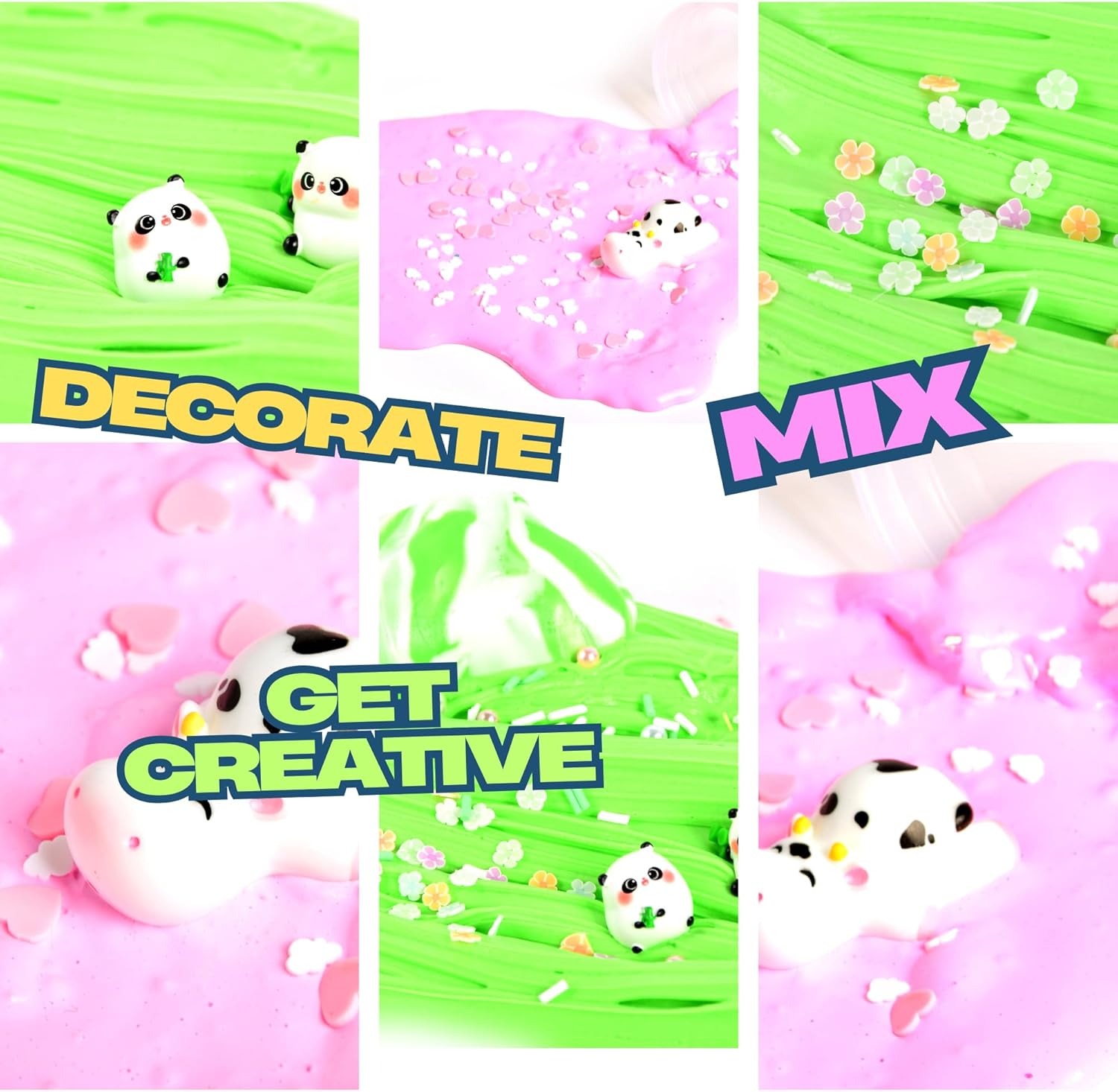 Vivace e soffice Slime Kit: immergiti in un mondo di colori a 2 temi con la nostra adorabile melma soffice a doppio colore, che si sente anche come una melma Kutty incredibilmente divertente! Ogni contenitore Slime Pack da 160 ml offre un totale di 320 ml, kit perfetto per miscelare, personalizzare e creare il proprio slime al burro non stratificato con una texture incantevole. Accessori lime per mucca e panda – Lasciate che la vostra creatività con il nostro kit Finoclay Butter Slime La nostra creatività aumenta con il nostro kit Finoclay Butter Slime Questa collezione magica contiene un fascino stravagante che si ispira a mucche e panda, fette di personaggi e scene di panda luminosi distribuiti casualmente che ispirano l'immaginazione del tuo bambino e renderanno divertente qualsiasi creazione! Gioco sensoriale e sviluppo delle competenze: il nostro slime favorisce il gioco sensoriale e fornisce sollievo dallo stress e migliora le capacità motorie. Il nostro kit Slime è educativo e creativo e combina due temi di melma che assicurano ai bambini un'esperienza di gioco affascinante e coinvolgente per bambini e adulti Giocattolo per bambini di alta qualità e slime non appiccicoso: i nostri slime sono realizzati con materiali sicuri e atossici per garantire un'esperienza tattile divertente di cui i genitori possono fidarsi. Con una varietà di affascinanti penne e decorazioni per mucose, questo accattivante kit Slime per ragazze e ragazzi offre divertenti possibilità di creatività nel simpatico entusiasmo tematico adatto a bambini di tutte le età. Informazioni su Microworld Slime & Series – Questa serie creativa – Parte del nostro Slime & Collection è il nostro divertimento creativo, con voi Mini Party – favori in simpatici mondi sigillati che rappresentano diversi temi, con il tocco fantasioso per il piacere sensoriale fornito con i mondi di colori, accessori Slime e Sensory Toy ASMR.