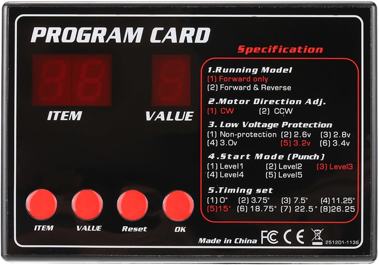 [Nuovo di zecca] 100% nuovo di zecca, garantendo un prodotto fresco e affidabile per le tue esigenze RC. [Materiale premium] realizzato con un buon materiale, garantendo un'alta qualità e una durata delle prestazioni. [Compatibilità versatile] Compatibile con vari modelli e marchi, offrendo flessibilità e comodità per gli appassionati di RC. [Easy Operation] Facile e conveniente da usare, rendendo la programmazione delle barche RC ESC un gioco da ragazzi. [Ad alte prestazioni] offre prestazioni elevate, adatte alle esigenze specifiche della programmazione RC Boat ESC.
