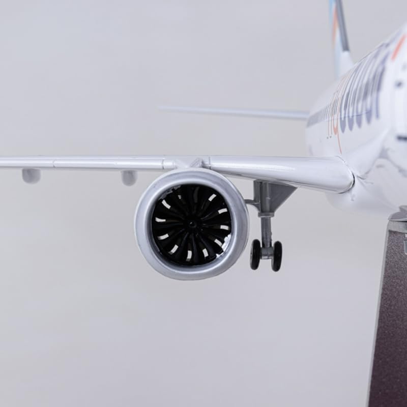 Carrello di atterraggio staccabile e rotante: dispone di carrello di atterraggio rotante in gomma, che può essere facilmente staccato/attaccato per diverse opzioni di visualizzazione a seconda delle tue preferenze Espositore premium: include un robusto supporto in metallo con una base in plastica in legno di mogano per un display elevato in qualsiasi ambiente Realizzato in resina di alta qualità e plastica ABS resistente, offre resistenza e longevità eccezionali con una sensazione solida, pesante e premium. Modello altamente collezionabile, che è anche un regalo fantastico per tutti gli appassionati di aviazione, equipaggio di cabina, piloti, lavoratori aerei e molti altri!