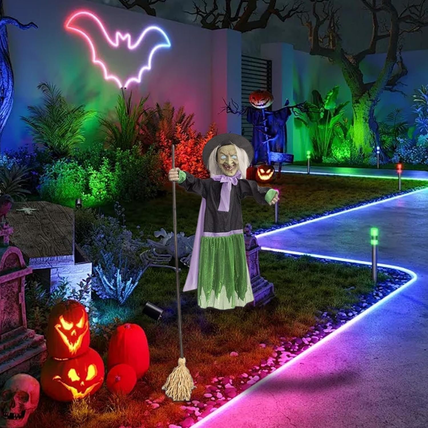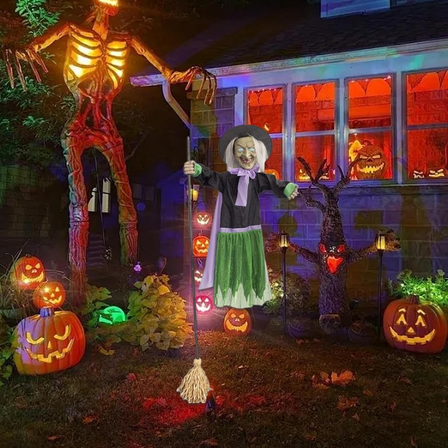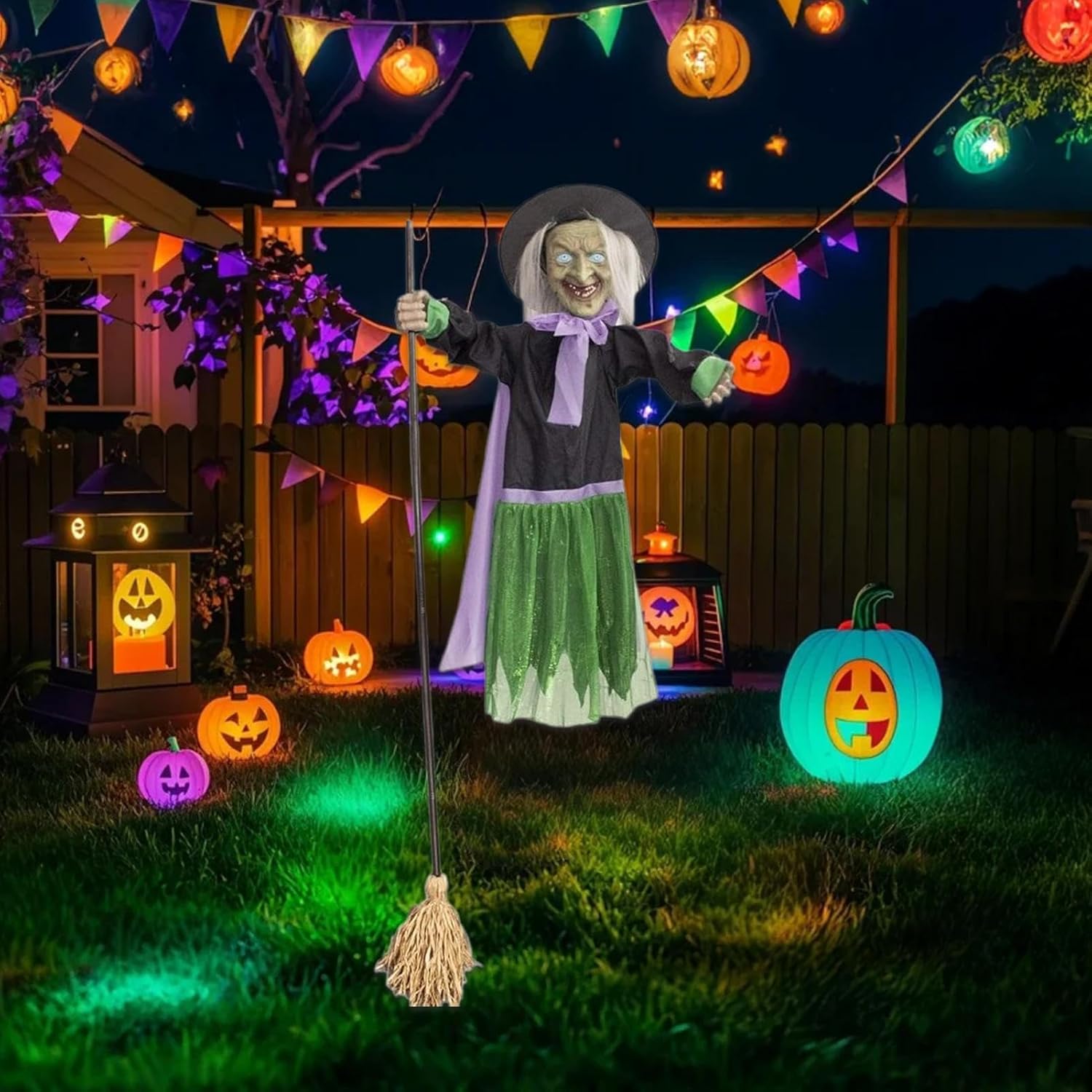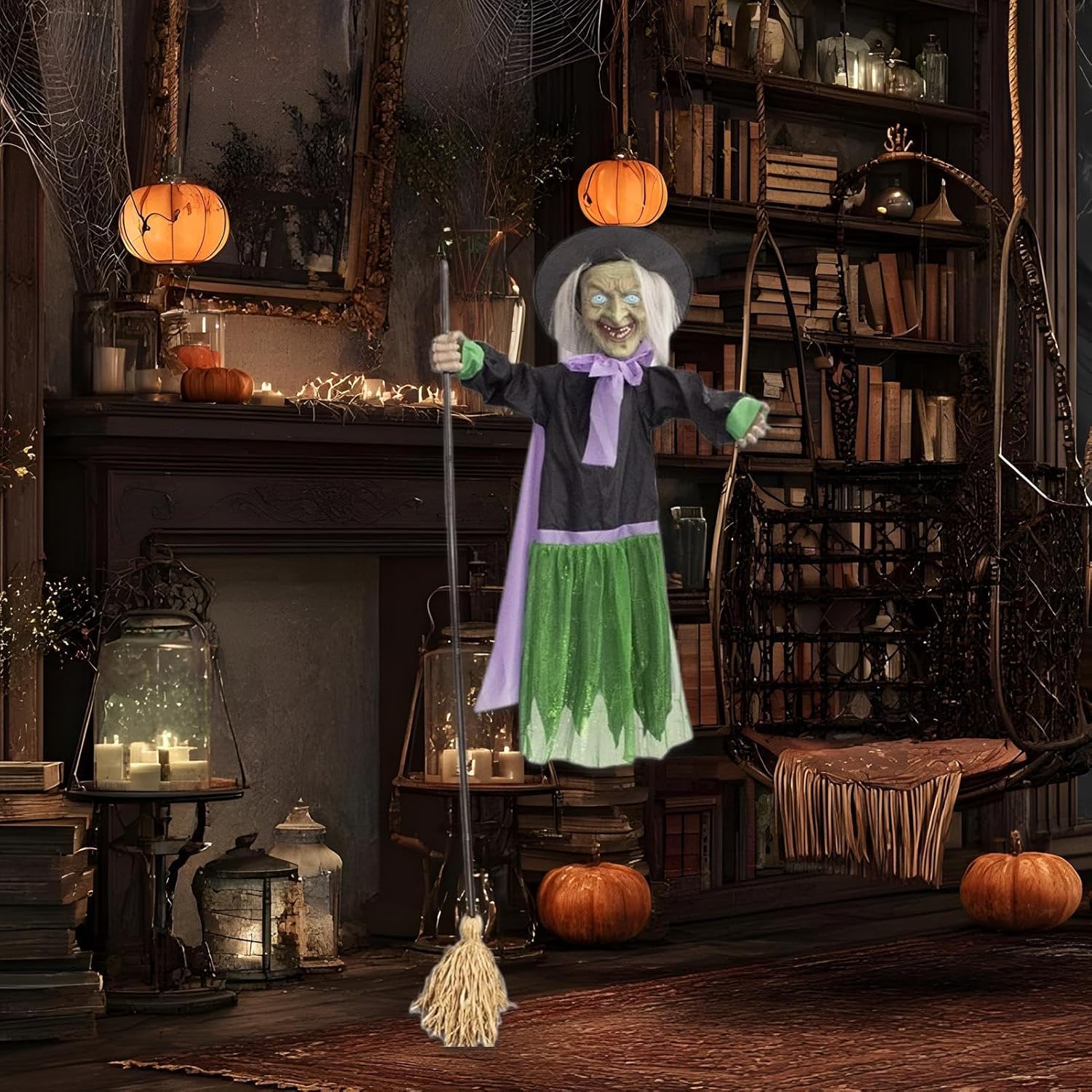 Eleganza Cappello a punta: Definito da un viso rugoso e un cappello appuntito, questa strega galleggiante offre un realismo spaventoso e un mantello fluido rendendo un pezzo di accento ideale per le modalità eteree. Estetica visiva sorprendente: Questa strega galleggiante presenta linee assertive e dettagli complessi, creando un impressionante pezzo espositivo che attira lo sguardo dagli angoli esterni Uso universale: Sintesi luce, movimento e suono per un'integrazione scenica immersiva. Produce un'atmosfera misteriosa e accattivante, perfetta per giardini, corridoi e feste, esaltando qualsiasi arredamento con grazia. Installazione semplificata: il sistema wireless e alimentato a batteria facilita il processo di assemblaggio, grazie al design modulare e alle istruzioni dettagliate illustrate per una configurazione perfetta Effetti sonori affascinanti: il rilevamento del movimento intelligente innesca effetti sonori sincronizzati con occhi verdi e bocca animata, offrendo un'esperienza dinamica e coinvolgente ideale per decorazioni tematiche