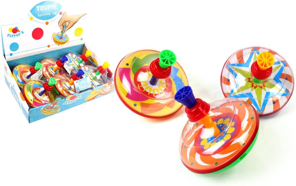 IL TUO GIOCATTOLO: Questo gioco ha ispirato intere generazioni. Aiuterà i bambini a sviluppare la loro coordinazione. Possono essere usati in molti modi per inventare giochi. Scopo: farle girare il più a lungo possibile. CONTENUTO: 6 trottole. Questo prodotto è realizzato in plastica per garantire tutta la solidità necessaria per durare nel tempo. È leggero e facilmente trasportabile. Misura 13 cm UN REGALO MERAVIGLIOSO: Questo giocattolo divertente è ideale per compleanni, feste, vacanze o qualsiasi altra occasione. Offri un'esperienza divertente fin dalla più tenera età. GIOCATTOLI SENZA TEMPO: Intemporanei e imprescindibili, le trottole sono al centro del divertimento, permettendo ai tuoi bambini di divertirsi anche in tua assenza. E ANCORA PIÙ DIVERTIMENTO! : Il marchio Flypop's offre giocattoli che portano gioia senza svuotare il portafoglio. Giochi da cortile, macchinine, accessori da cucina per momenti di gioco e felicità
