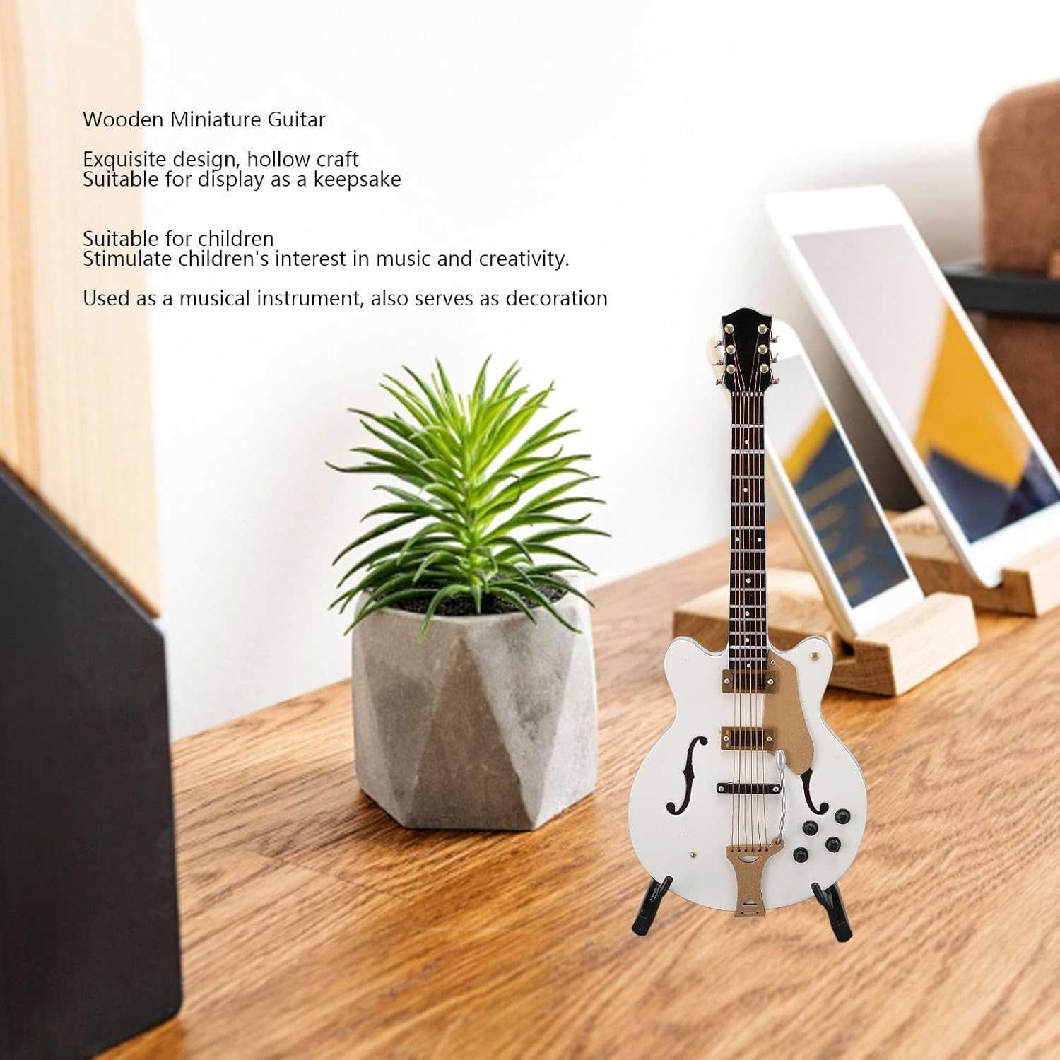 [Protegge il materiale naturale] Questo modello di chitarra in miniatura realizzato in legno di prima qualità con finitura atossica garantisce che [Strumento di apprendimento interattivo] ispira la curiosità musicale attraverso il gioco pratico e combina valore educativo con espressione creativa per promuovere lo sviluppo artistico di [Elegante decorazione per la casa] unisce fascino musicale e versatilità decorativa - funge da ornamento accattivante per scaffali, scrivanie o espositori per case delle bambole e onora il patrimonio musicale [Costruzione di lunga durata] La struttura in legno motorizzata di precisione ha resistito a ripetute manipolazioni ed esposizioni mantenendo la sua forma e la finitura preservata attraverso anni di uso decorativo [Premium Craftsmanship] presenta dettagli di design intricati e cavi e superfici lucide che mostrano le tecniche professionali di lavorazione del legno in una replica in scala in miniatura
