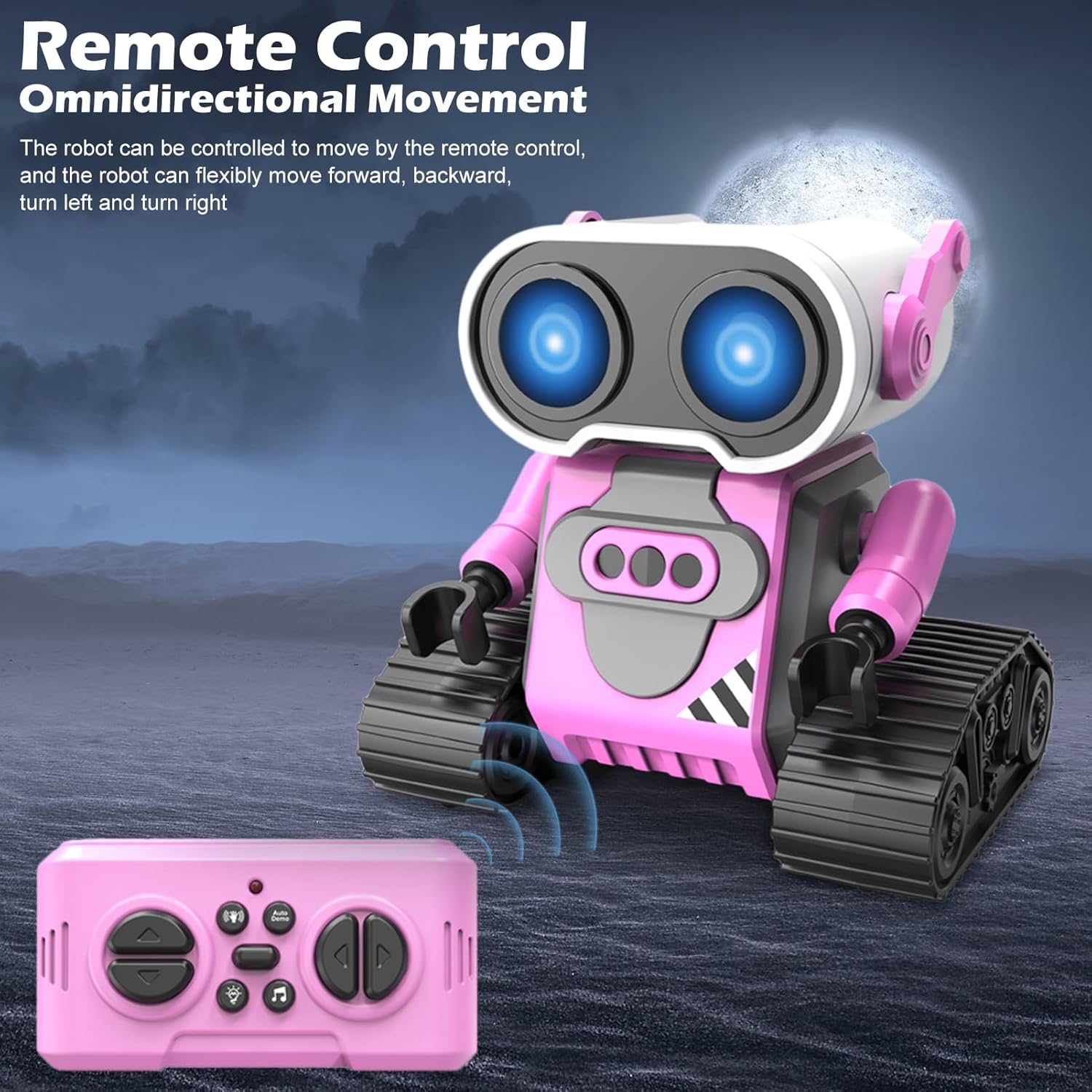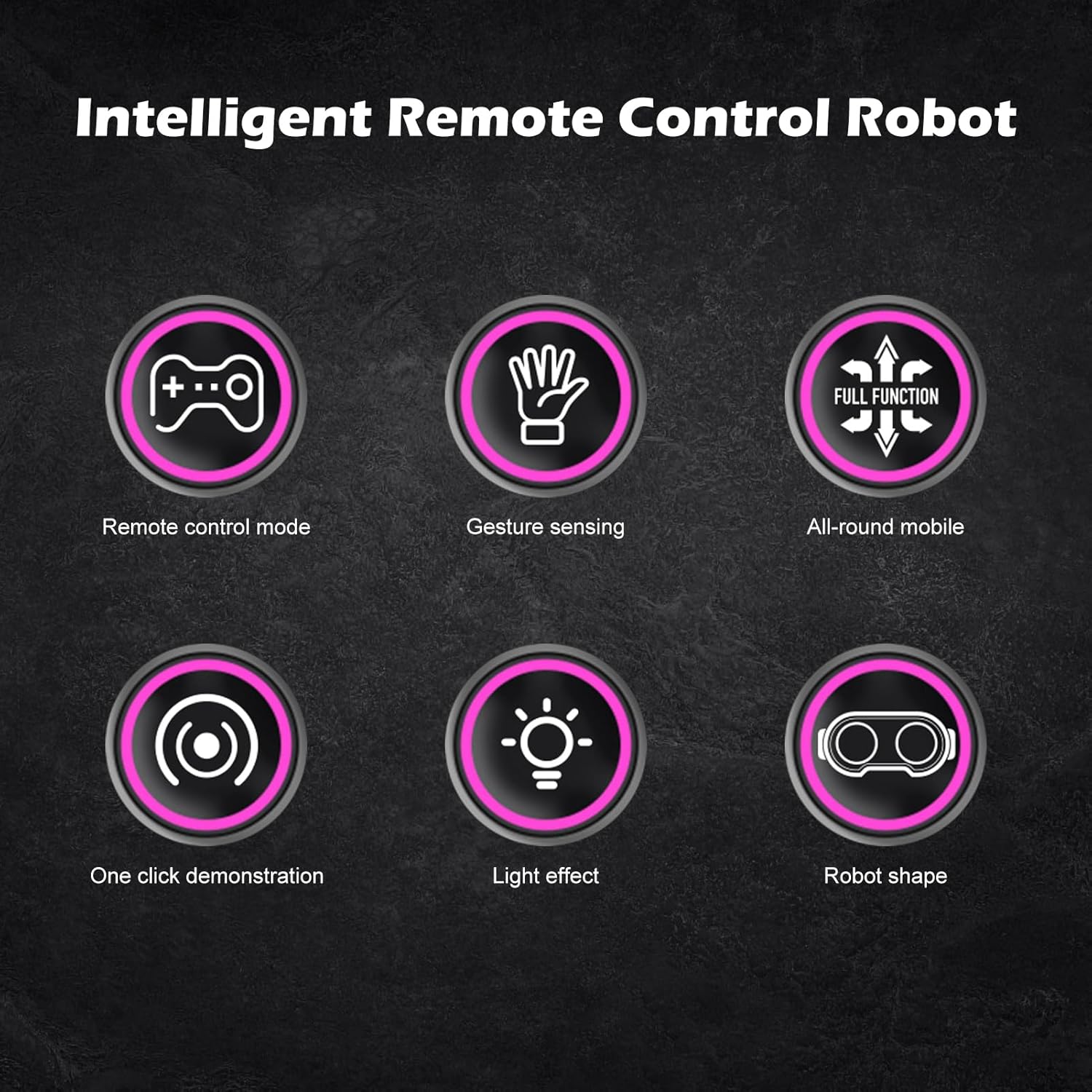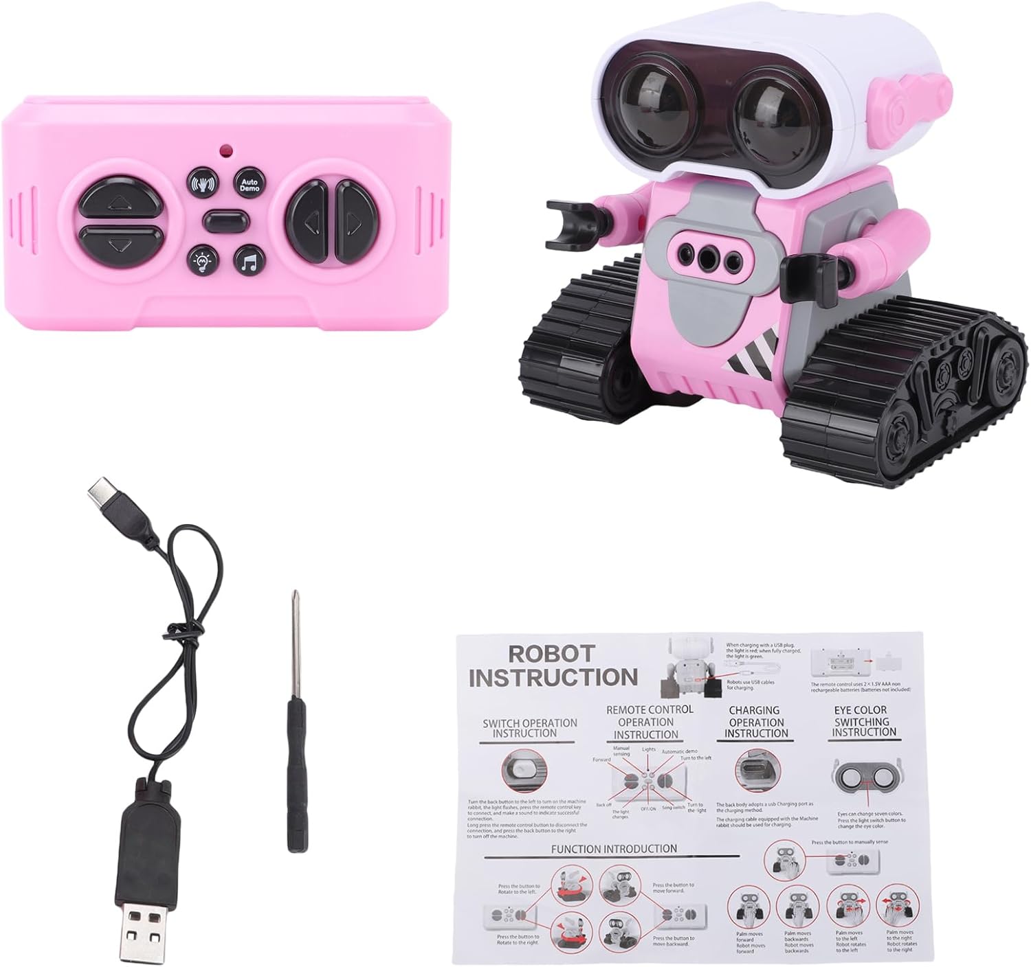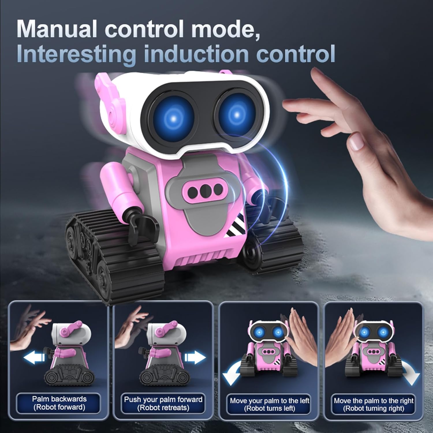 [Educational & Intrattenere] Con il suo design carino e molteplici caratteristiche interattive Questo robot aiuta a sviluppare l'immaginazione della creatività dei bambini e le capacità motorie. È un ideale per le vacanze di compleanni o qualsiasi occasione speciale che offre un valore sia divertente che educativo. La costruzione di ABS durevoli garantisce un tempo di gioco di lunga durata mentre la dimensione compatta lo rende per l'uso interno. [Eyes Dynamic LED e cambiamenti di colore] Il robot presenta occhi ipnotizzanti che possono passare da più colori vibranti con un semplice sul telecomando. Queste vivide trasformazioni di colore catturano immediatamente l'attenzione dei bambini e creano un'esperienza di gioco coinvolgente. Gli effetti di illuminazione dinamica mantengono i bambini impegnati per ore mentre stimolano i loro sensi visivi e l'immaginazione. [Modalità a doppio controllo] Sperimenta il gioco versatile con entrambe le modalità di controllo dei gesti e il telecomando a 2,4 GHz. La tecnologia di riconoscimento dei gesti consente ai bambini di comandare i movimenti del robot con semplici movimenti manuali mentre il telecomando preciso offre un funzionamento più dettagliato. Questa doppia funzionalità si rivolge a diversi stili di gioco e mantiene l'esperienza fresca ed eccitante. [Durata della batteria di lunga durata] dotato di una potente batteria ricaricabile da 500 mAh, questo robot fornisce 30-40 minuti di tempo di gioco continuo dopo 60 minuti di ricarica. La durata della batteria estesa significa meno attesa e più giocando per consentire ai bambini di godersi appieno le loro sessioni interattive senza frequenti interruzioni per la ricarica. [Music & Sound Effects] Questo robot interattivo viene fornito con canzoni integrate e melodie allegre che i bambini possono facilmente selezionare usando il telecomando. Le caratteristiche musicali non forniscono un intrattenimento infinito, ma aiutano anche a sviluppare le capacità uditive di un bambino e l'apprezzamento per la musica. I bambini possono ballare insieme al robot o godersi le melodie durante il gioco.