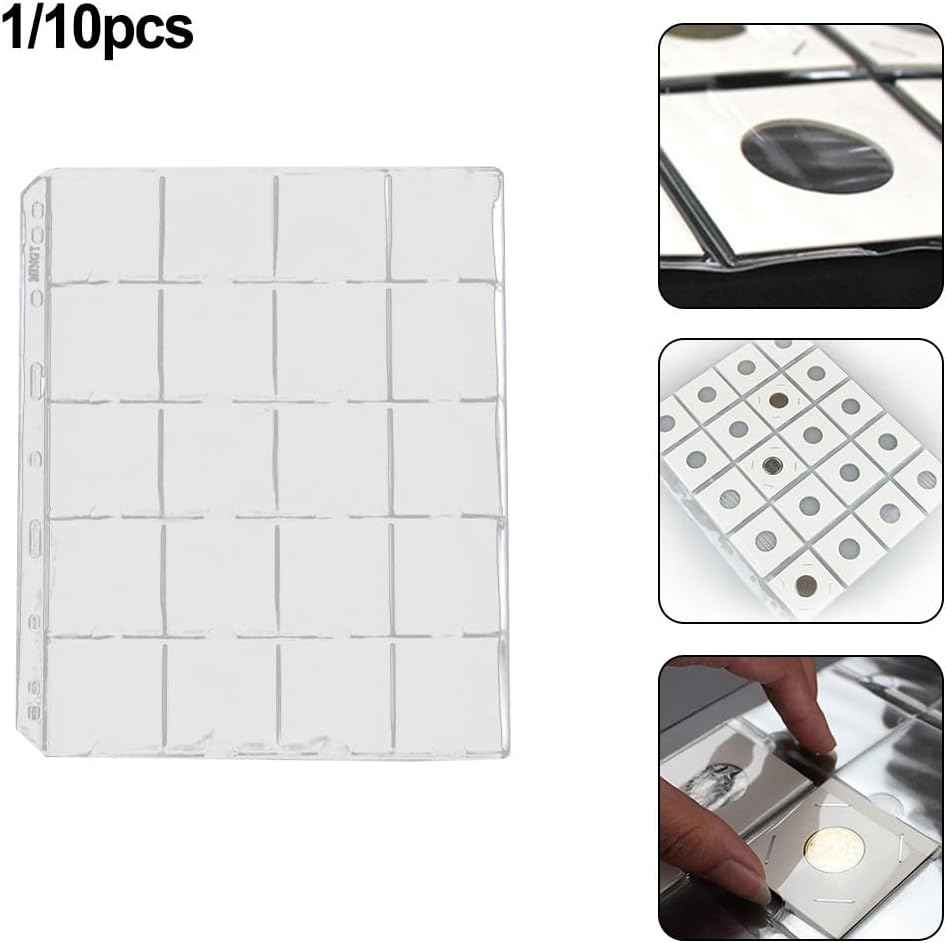 Fogli di ricarica per monete trasparenti, 20 tasche, in PVC, sfusi per foglia, design a 9 fori, per collezione di monete, pagine di album, raccolta valuta e numismatica (1 pz)