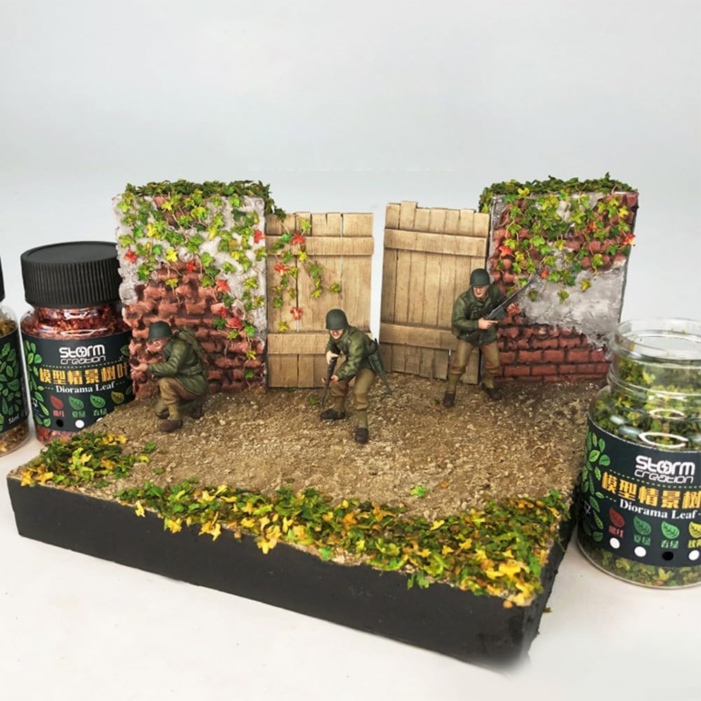 Design realistico: la serie di scene in miniatura presenta foglie altamente realistiche e vivaci che ricordano da vicino i colori e la saturazione del fogliame reale. Sia che vengano utilizzate per costruire tavoli di sabbia, scacchi da guerra, modelli, soldati o modelli di treni, queste foglie sono adatte per varie scale come 1:35, 1:48, 1:72 e 1:87, fornendo eccezionali effetti di abbellimento. Uso: queste foglie modello sono perfette per decorare modelli di edifici, tavoli di sabbia, strade e paesaggi architettonici. Possono anche essere utilizzati per migliorare l'aspetto di parchi da giardino, feste e display domestici, creando un ambiente naturale vivido e vibrante. Migliora il paesaggio del modello: aggiungi un tocco di verde al paesaggio del tuo modello e rendilo visivamente più attraente. Queste foglie sono progettate per migliorare l'aspetto generale del paesaggio del modello, dandogli un aspetto realistico e pittoresco. I colori vivaci e belli delle foglie contribuiscono ulteriormente a una straordinaria visualizzazione visiva. Facili da usare: le foglie sono disponibili in un sacchetto da 33 ml (circa 7 x 7,5 cm) e variano in dimensioni da 0,5 a 2 mm. Sono foglie ad alta imitazione che possono essere utilizzate direttamente senza alcuna colorazione aggiuntiva. Inoltre, possono essere facilmente combinati con alberi di plastica o utilizzati in progetti fai da te per rimodellare le forme dell'albero desiderate utilizzando il filo.