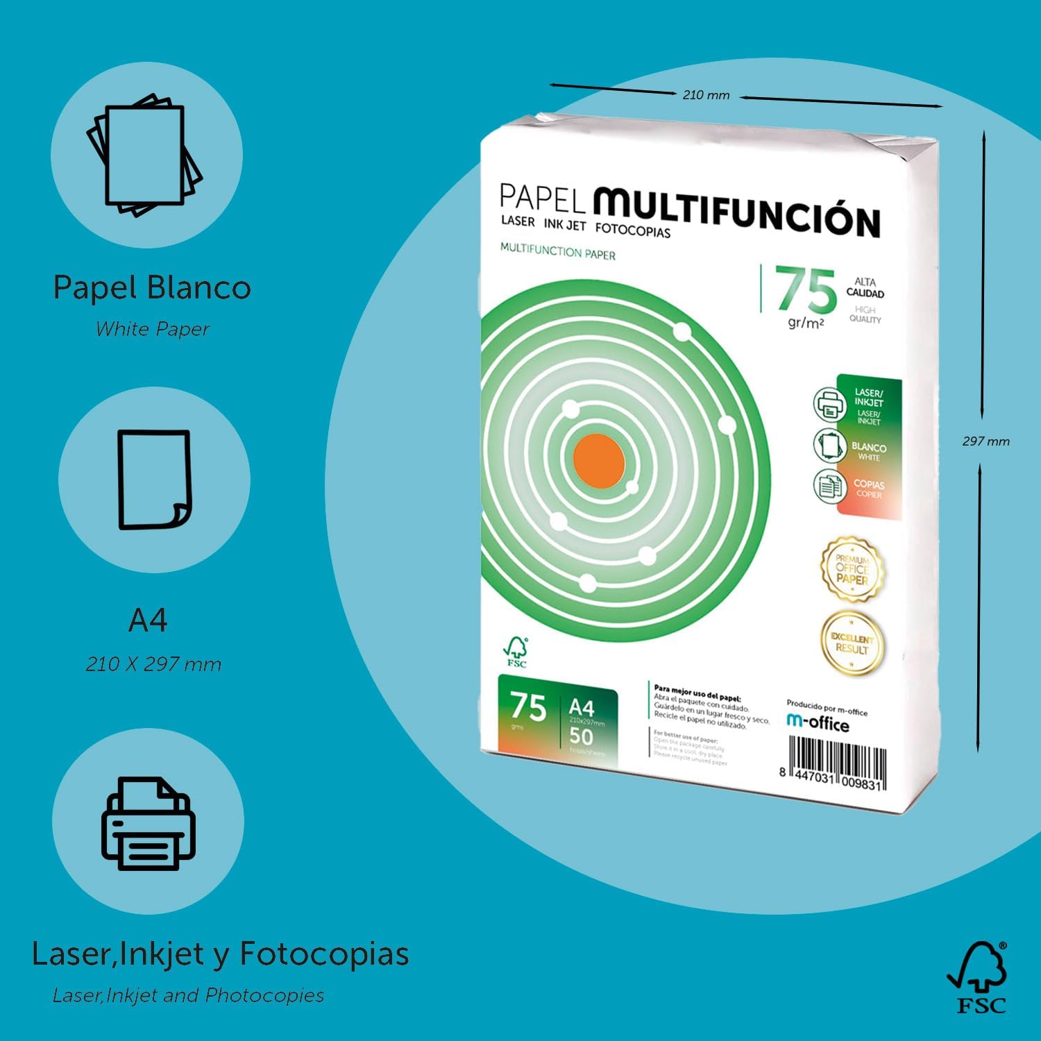 ✅ Risparmiate con i nostri fogli A4 75g 50 fogli: ideali per casa e ufficio. Qualità e quantità senza compromettere il budget, goditi i nostri fogli per l'uso scolastico e ambienti di lavoro. ✅Carta A4 per stampante: garantisce stampe chiare e durature. Ottieni risultati professionali su ogni pagina. Garantiamo resistenza e durata con la sua grammatura di 75 g. ✅ Ampia gamma di usi: avrai versatilità garantita con i nostri fogli multiuso. Compatibile con stampanti laser e iniezione, fotocopiatrici e fax. ✅Prestazioni in ogni utilizzo. Evita inceppamenti e ottieni buoni risultati con stampanti laser e iniezione. È ideale per le tue stampe quotidiane in qualsiasi ambiente. Confezione completa per i tuoi progetti: 50 fogli di carta A4 da 75 g, perfetti per stampare, copiare e inviare fax a casa e in ufficio. Carta multiuso per stampanti bianca.