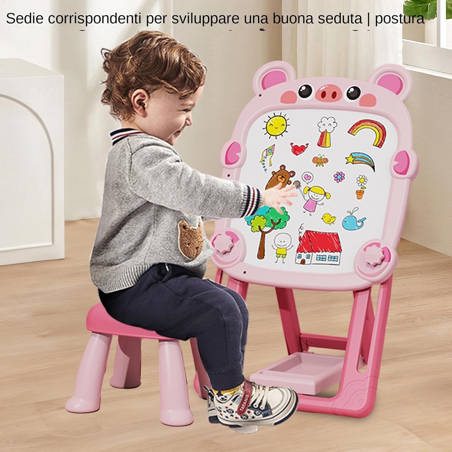 Double-Sided for Versatile Play: This drawing board features two surfaces— side is a magnetic whiteboard, perfect for markers and erasing, while the other side is a chalkboard for a more traditional drawing experience. Kids can switch between the two to explore different creative activities, from writing letters to drawing colorful pictures. Adjustable and Comfortable for Kids: The board comes with an adjustable height feature, allowing it to grow with your child. Whether your little is sitting or standing, the easel can be set to the perfect height, ensuring they can comfortably draw, write, and create for hours. Foldable and Portable Design: The foldable bracket makes this board easy to store and transport. It’s perfect for bringing along to playdates, family trips, or simply stashing away when not in use. Its lightweight design makes it easy for kids to move it around themselves as they in fun activities. Magnetic and Fun Learning Tool: The magnetic whiteboard side allows children to use magnetic letters, numbers, and shapes for learning and play. This feature makes it an excellent tool for teaching basic skills such as spelling, math, and problem-solving, all while engaging in creative play. Sturdy and Safe for : Made with high-quality materials, this drawing board is designed to withstand everyday use. The sturdy construction ensures it can handle active , while the and edges make it safe for children to use without the risk of injury.