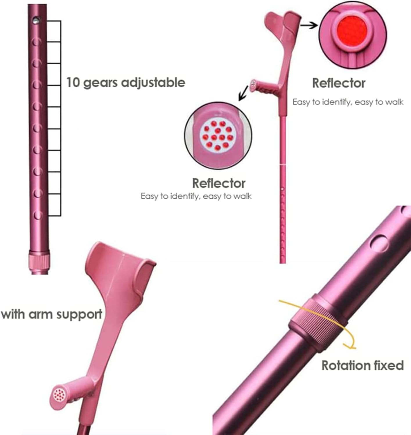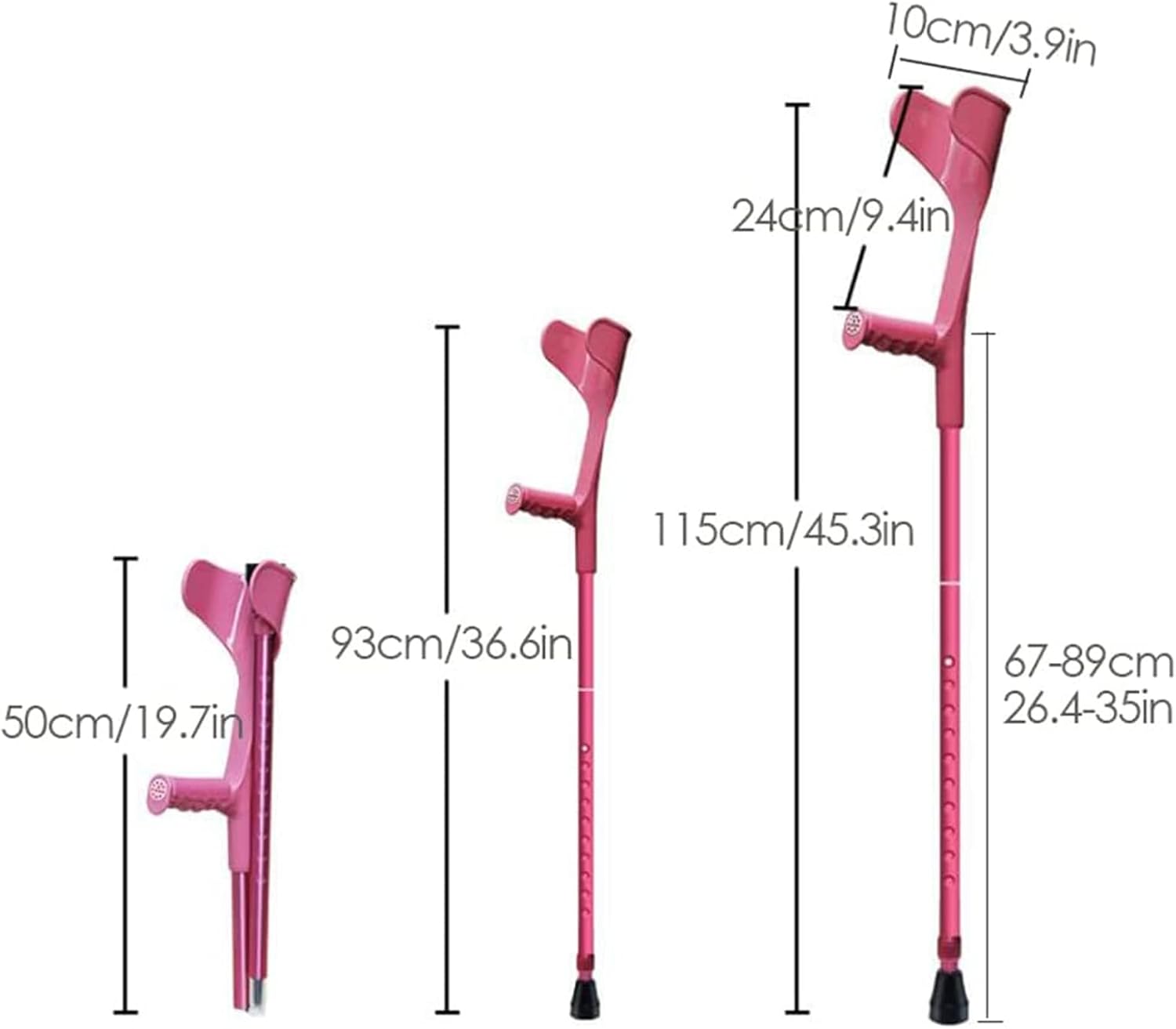 * Lightweight and durable, made of aluminium, forearm crutches provide extra support and balance when walking, 1 count weight 0.5 kg * Adjustable firearm crutches, 10-level adjustment function, 67-89 cm from end to handle, suitable for height 150-196 cm * Folding elbow crutches, very suitable for carrying and storing in any way, size after folding, 50 x 15 x 10 cm * Ergonomic handle with reflector for easy identification and safe walking * Non-slip rubber tip with pattern design, increased friction, stable walking, any terrain
