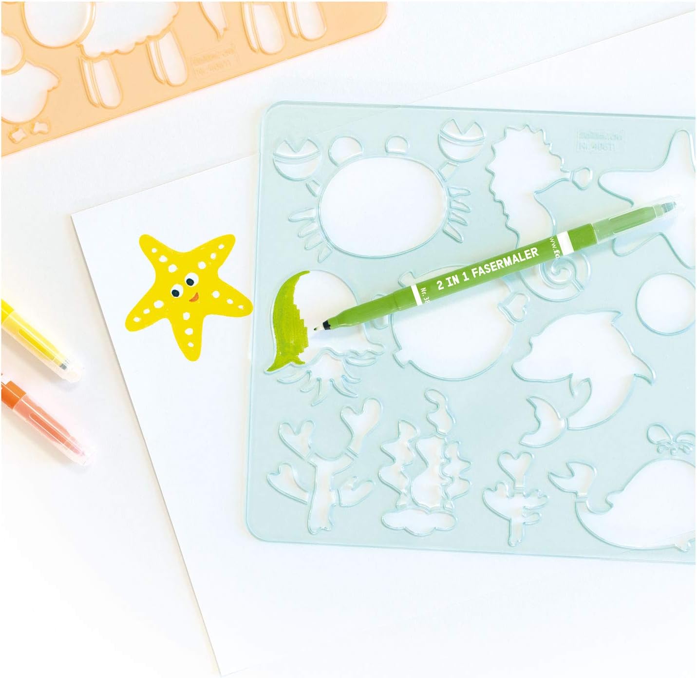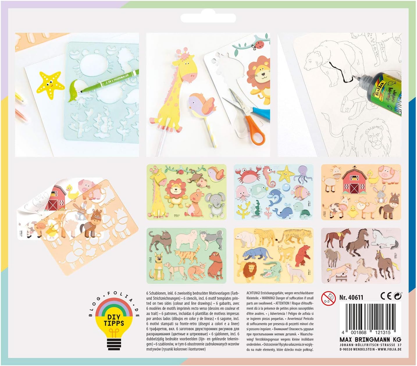 Set di 6 stencil a forma di zoo per colorare vari animali Contiene 6 stencil, con 6 modelli stampati su entrambi i lati. Stencil con motivi intagliati di cane, cavallo, leone, maiale, delfino e molto altro ancora. Aiuto per bambini per colorare e creare immagini creative. Facile da usare con pastelli, pennarelli e pennarelli.