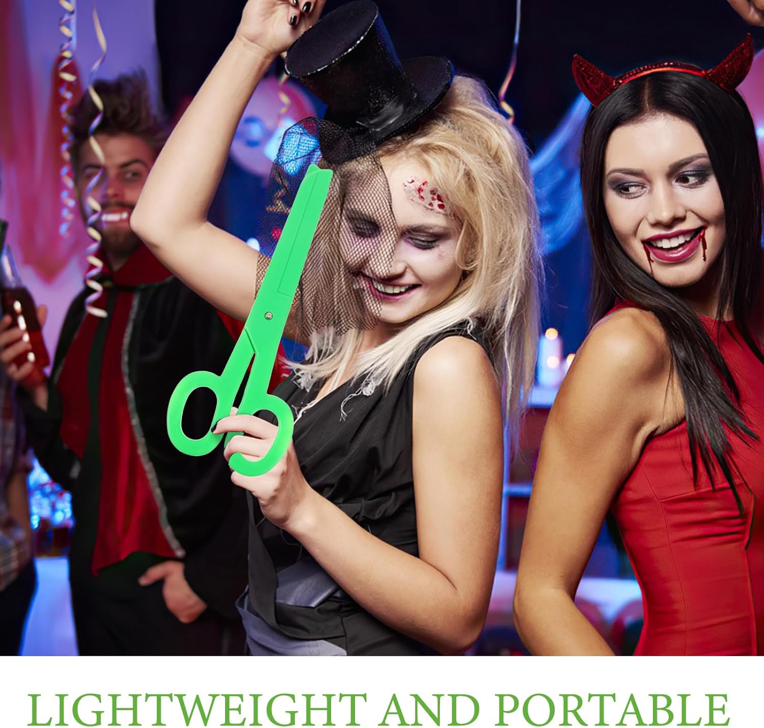 Design oversize: perfette per spettacoli teatrali e cosplay, queste forbici giganti da clown sono realizzate per distinguersi e creare un impatto visivo audace Divertenti e versatili: si abbinano perfettamente a costumi oversize da clown, circo o personaggi, aggiungendo un tocco giocoso e realistico al tuo ensemble Robuste e affidabili: realizzate con materiali robusti per garantire un uso duraturo in molteplici eventi o spettacoli Leggere e facili da trasportare: progettate per comodità, queste forbici sono semplici da trasportare e utilizzare in una varietà di ambienti, dalle feste alle produzioni teatrali Luminose e accattivanti: con un design colorato e accattivante guarda, queste forbici ti aiutano a distinguerti e a portare energia in ogni occasione