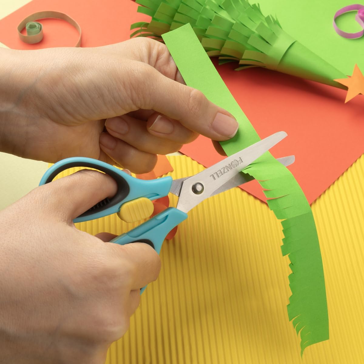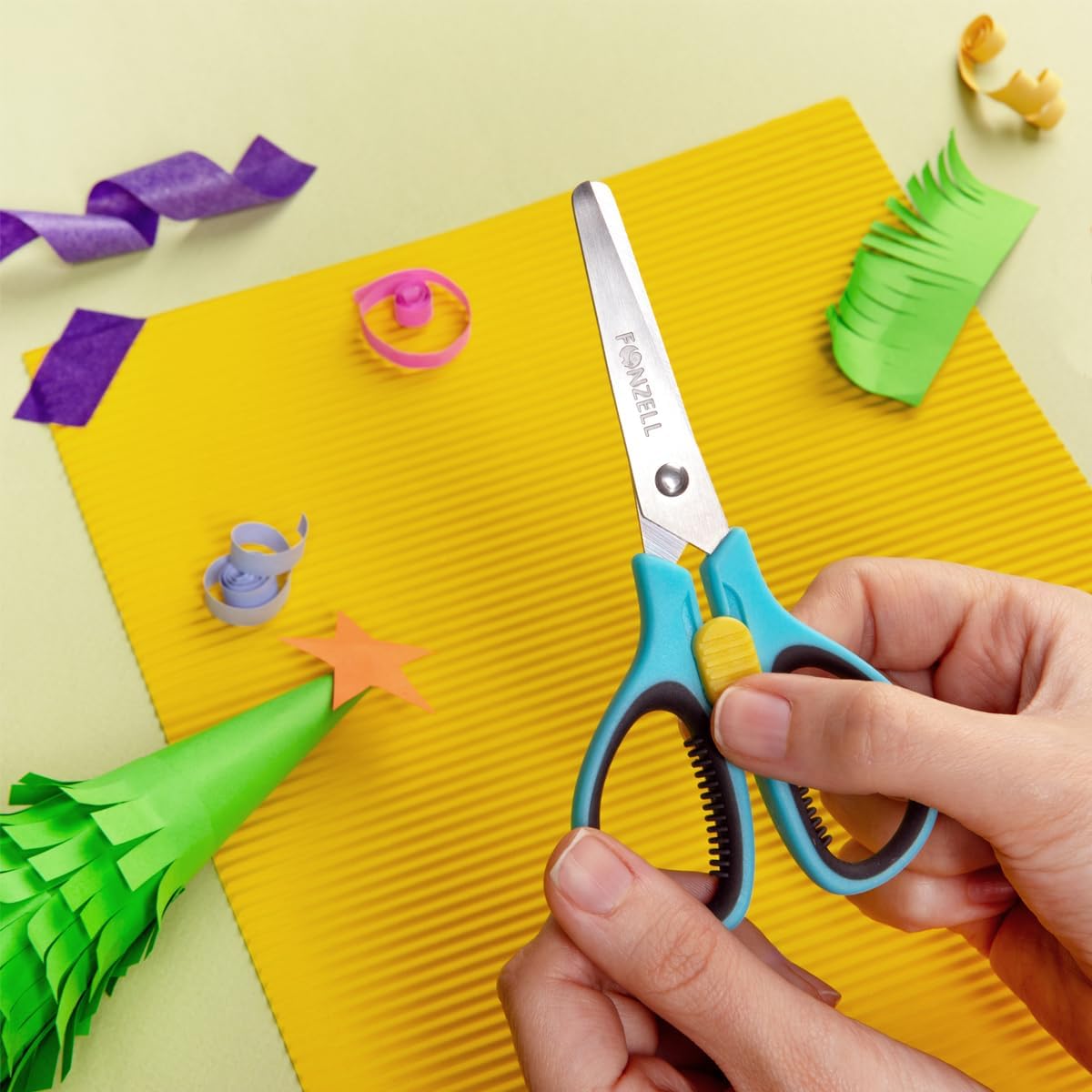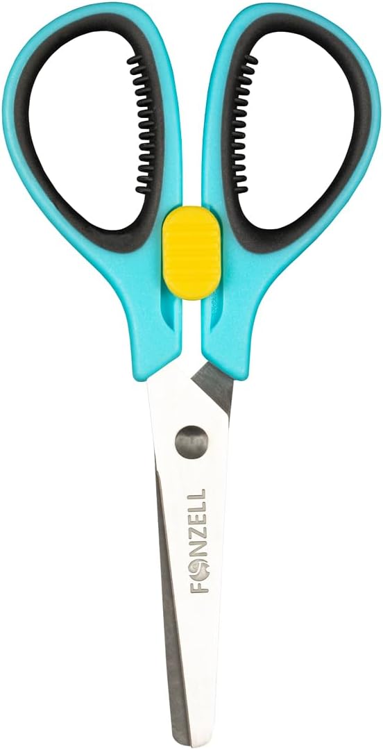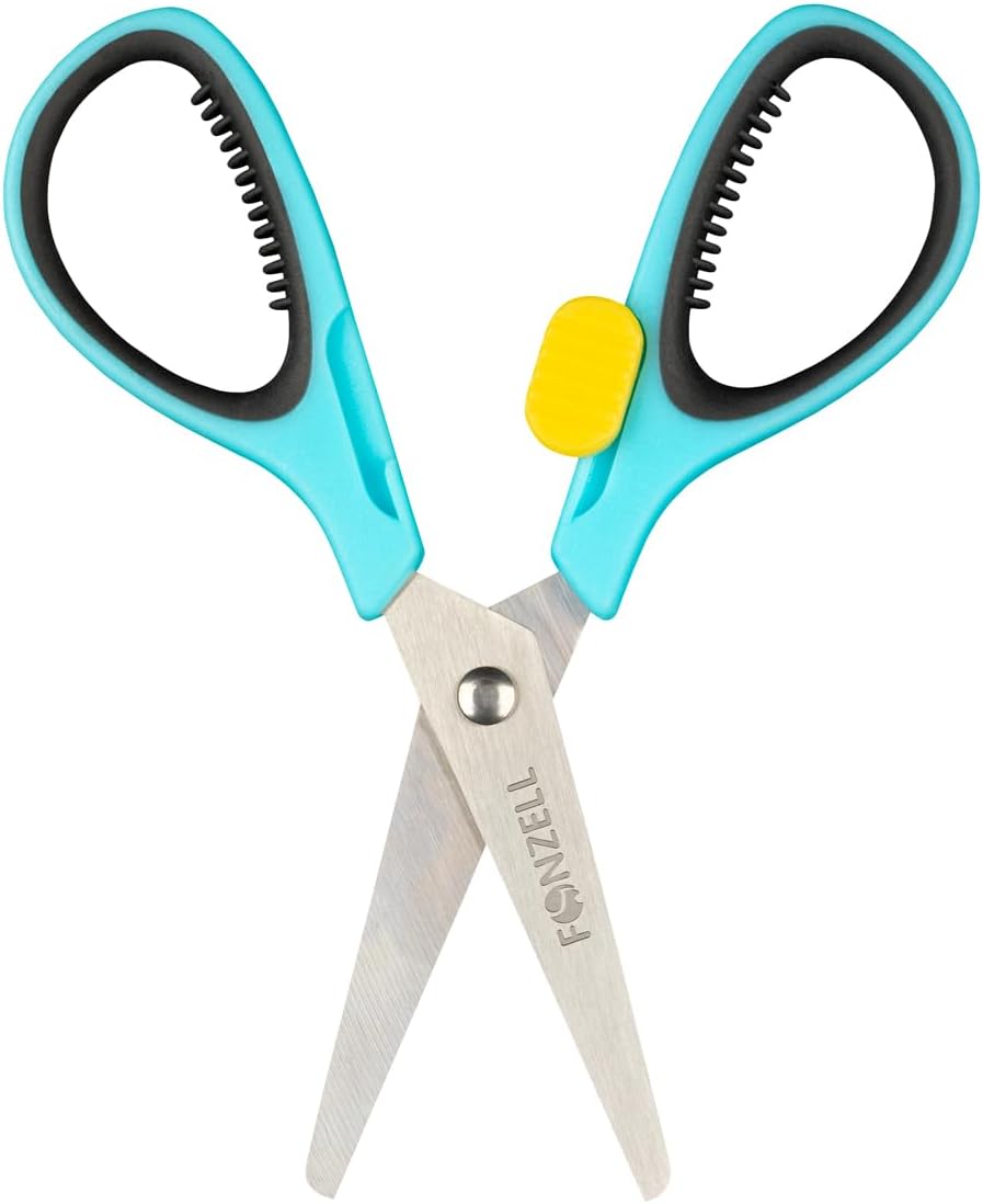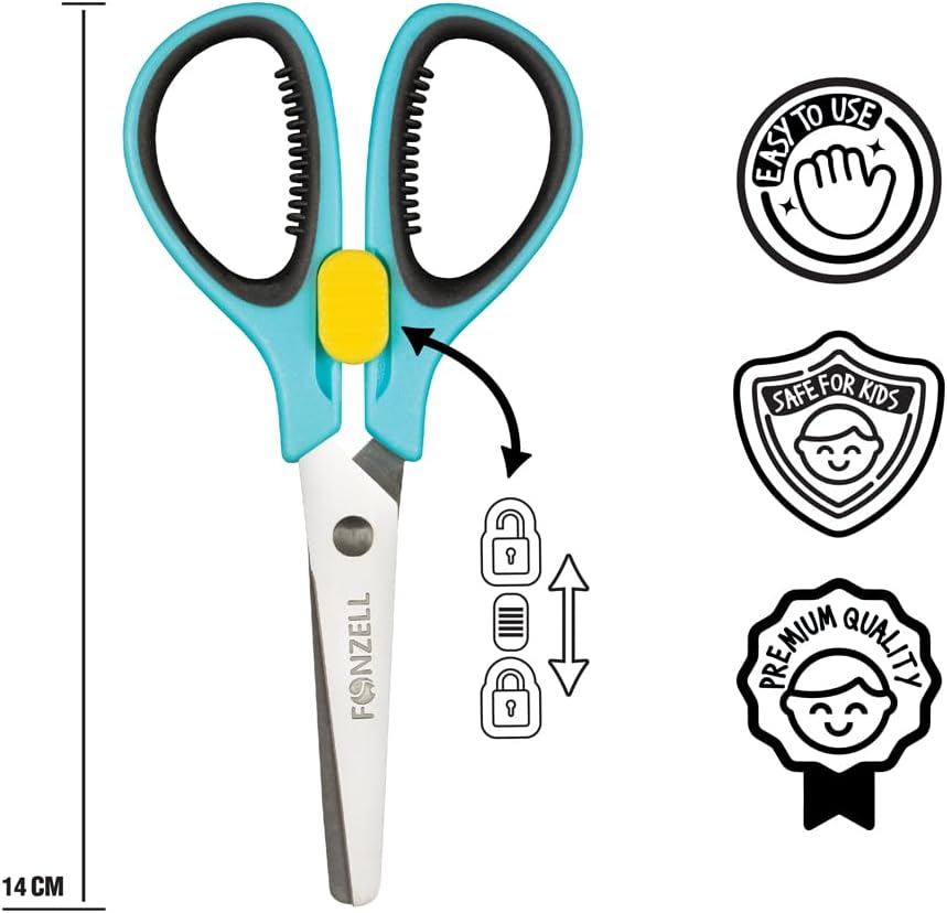 Meccanismo di sicurezza: riduce il rischio di incidenti con blocco di sicurezza integrato. Design: Impugnatura ergonomica con materiale morbido e antiscivolo per una presa sicura. Materiale: lame arrotondate in acciaio inossidabile. Uso ambidestro: adatto per utenti mancini e destrimani. Dimensioni: lunghezza forbice 14 cm, spessore lama 1,5 mm.
